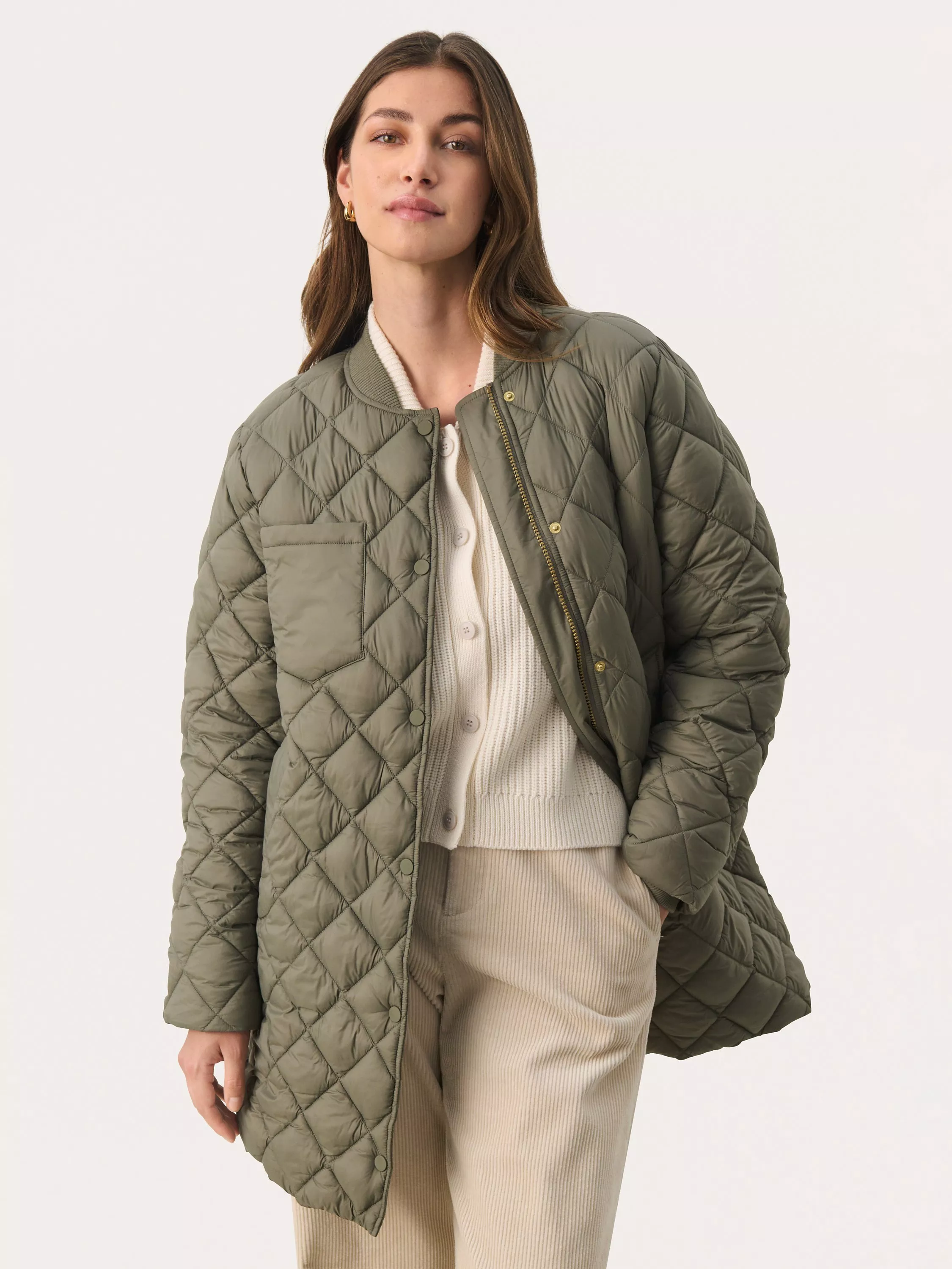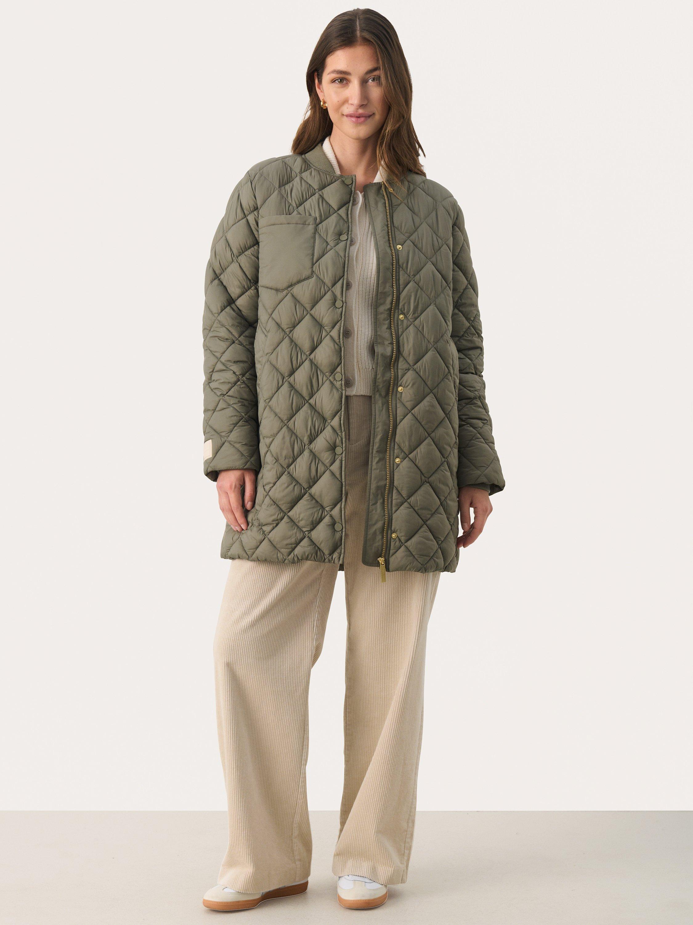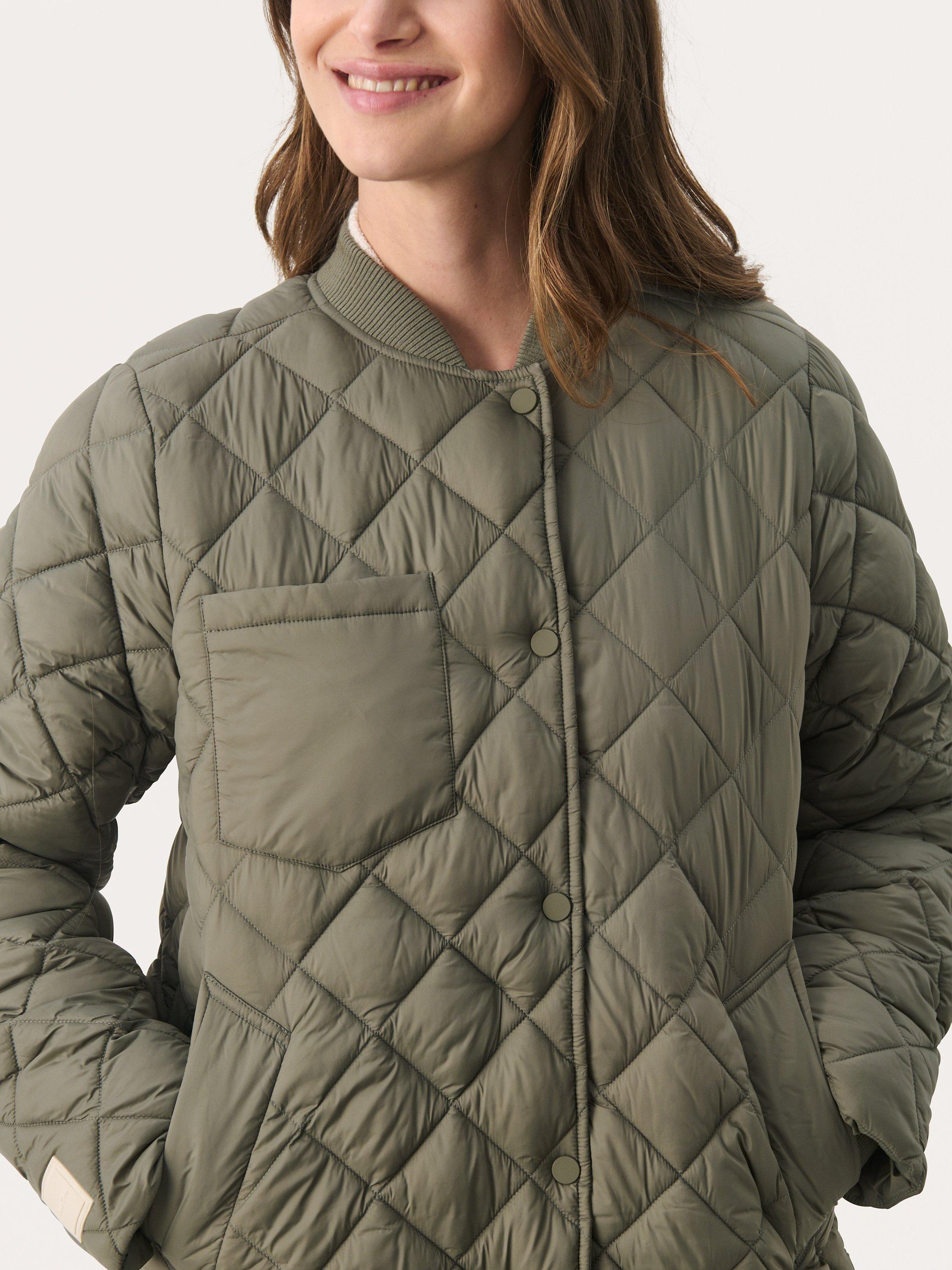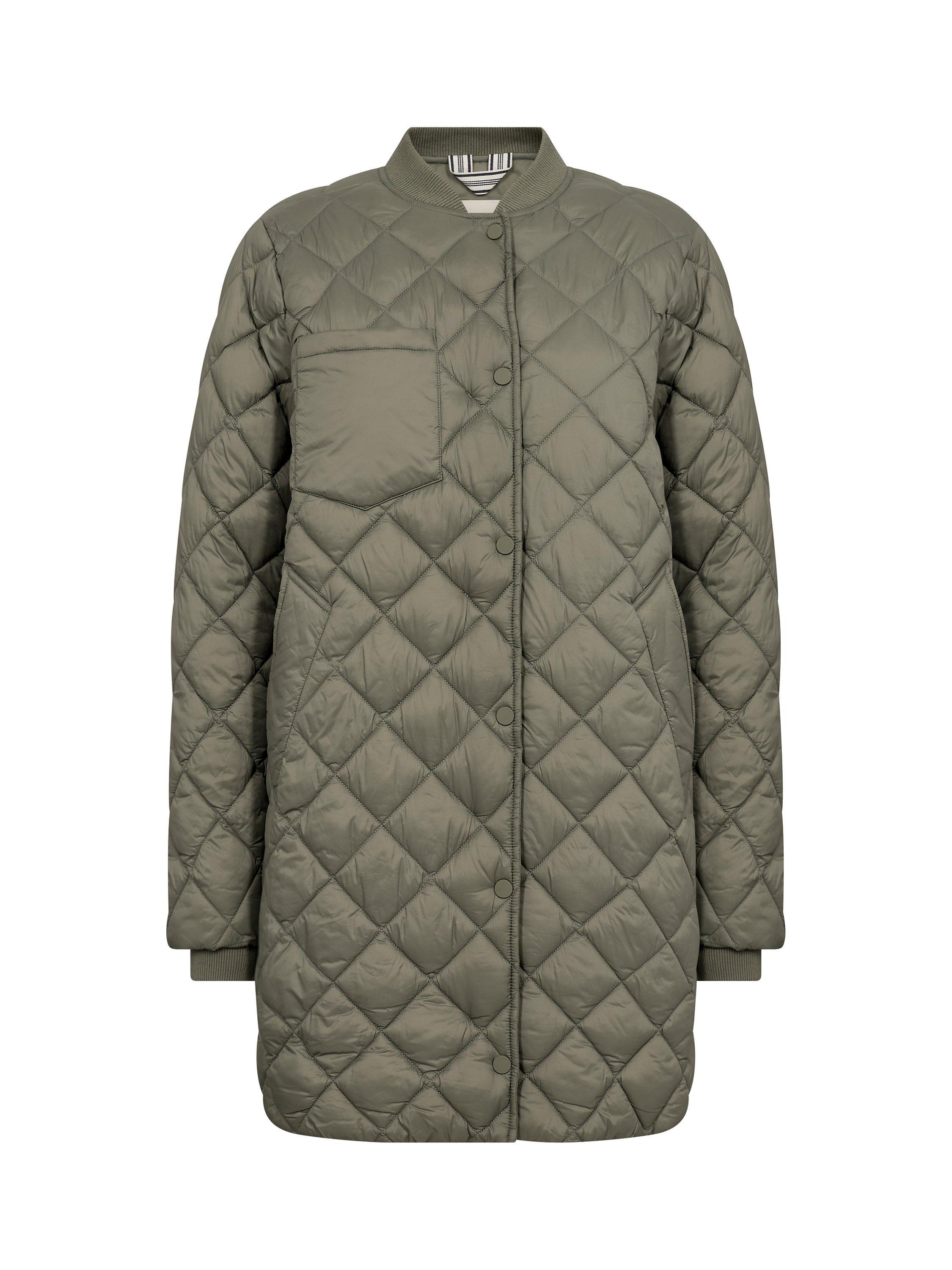 The Lucca jacket is a simple and casual piece of outerwear. It is quilted in a classic, diamond shaped pattern, and it has button fastening. The sleeves are long and gathered in a rib cuff, and the jacket has a rib collar. It is cut below the hips, and it has slanted front pocket and a patch chest pocket.
