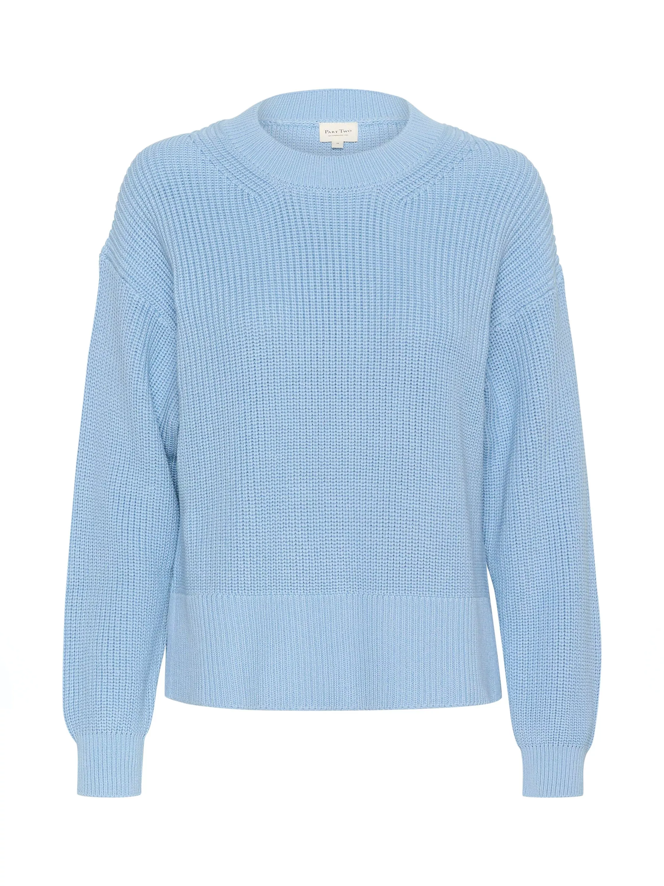 The Luma pullover is the perfect addition to this seasons wardrobe, and it will look great with any outfit. It has a round neck and a casual fit, and it is made in a tight rib knit with a pattern around the neck. The sleeves are long and loose with knit cuffs, and the pullover has a split hem and is cut at the hips.
