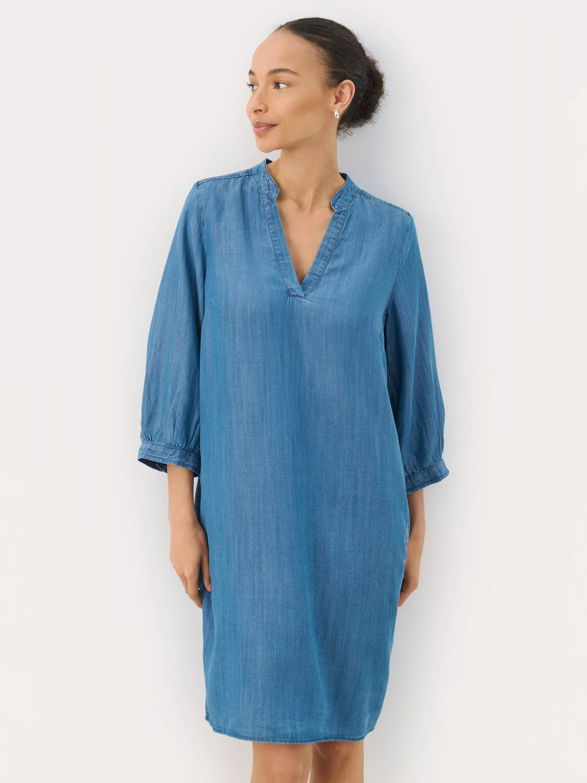 Part TwoMaina V-Neck Denim Dress, Mid Blue