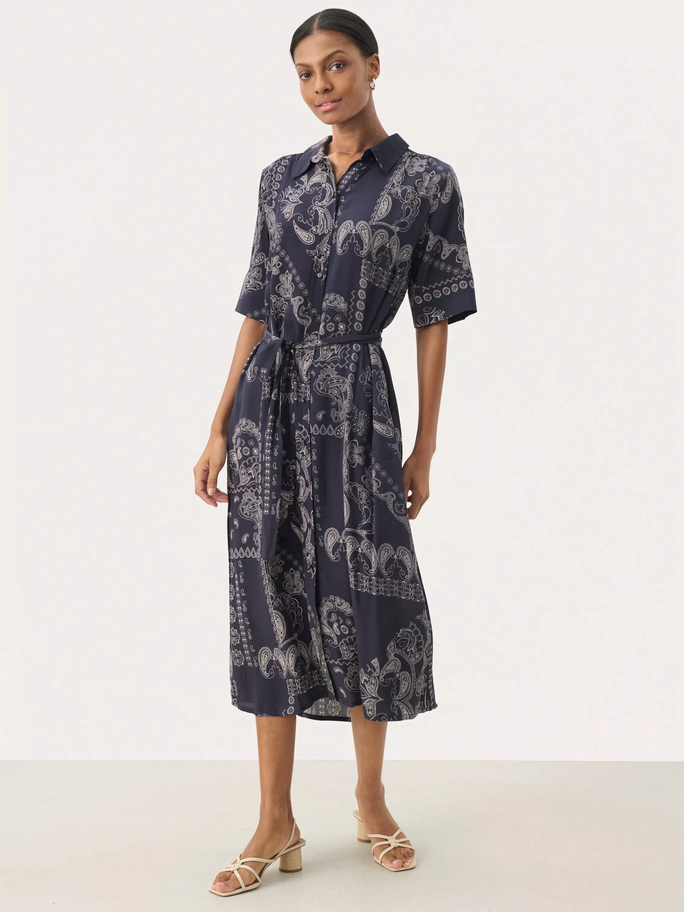 This Melucan dress combines elegance and comfort in a bohemian-inspired design. Featuring short sleeves, a full button-down front, and a waist tie, it creates a flattering silhouette. Perfect for both everyday wear and special occasions - pair with sandals for a relaxed look.