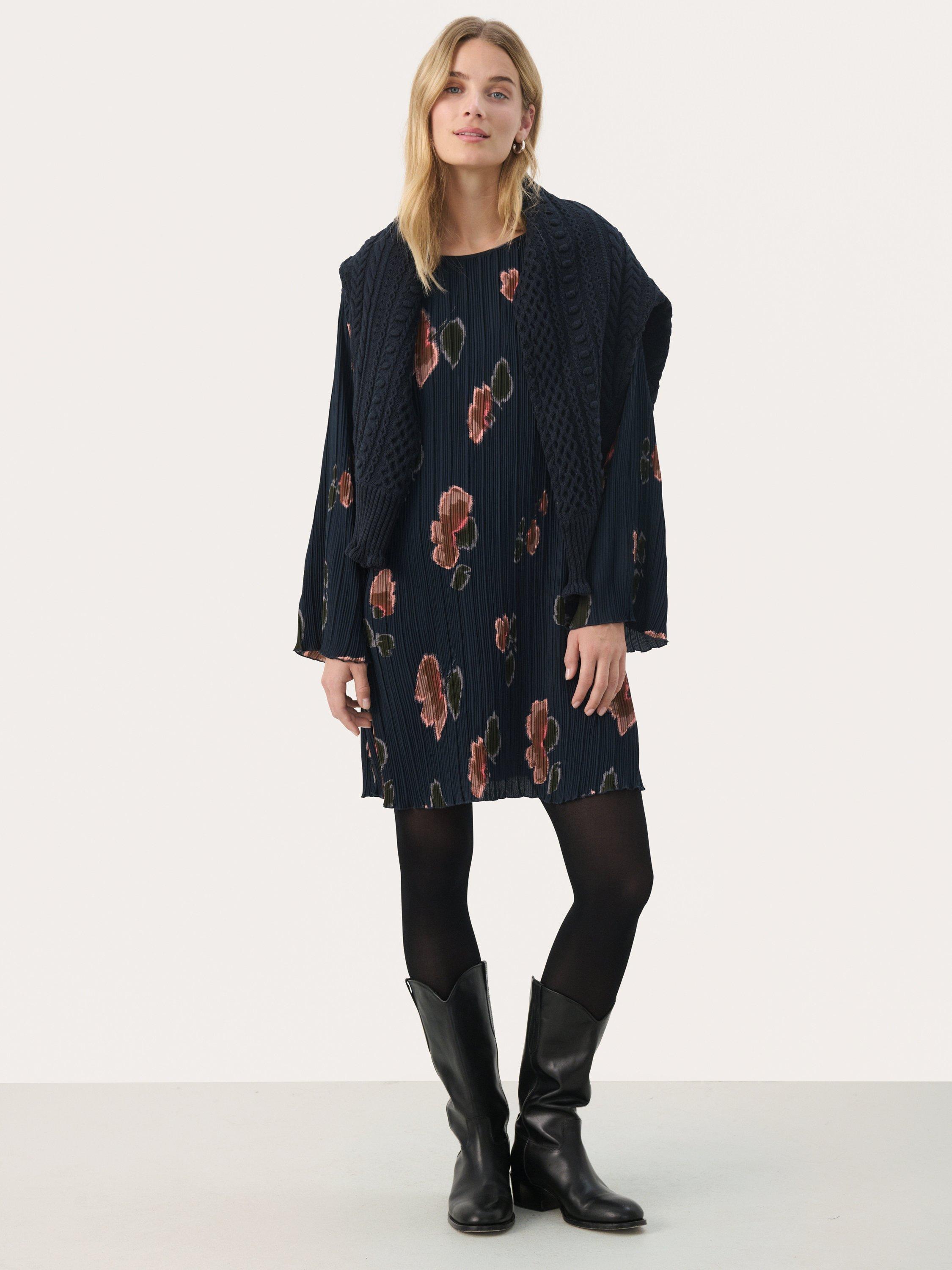 This Milanas dress is a statement piece with its bold print and loose fit. The pleated details at the front add a touch of elegance, while the 3/4 sleeves make it versatile for different occasions. Style with flats for a relaxed day look or heels for an evening event.