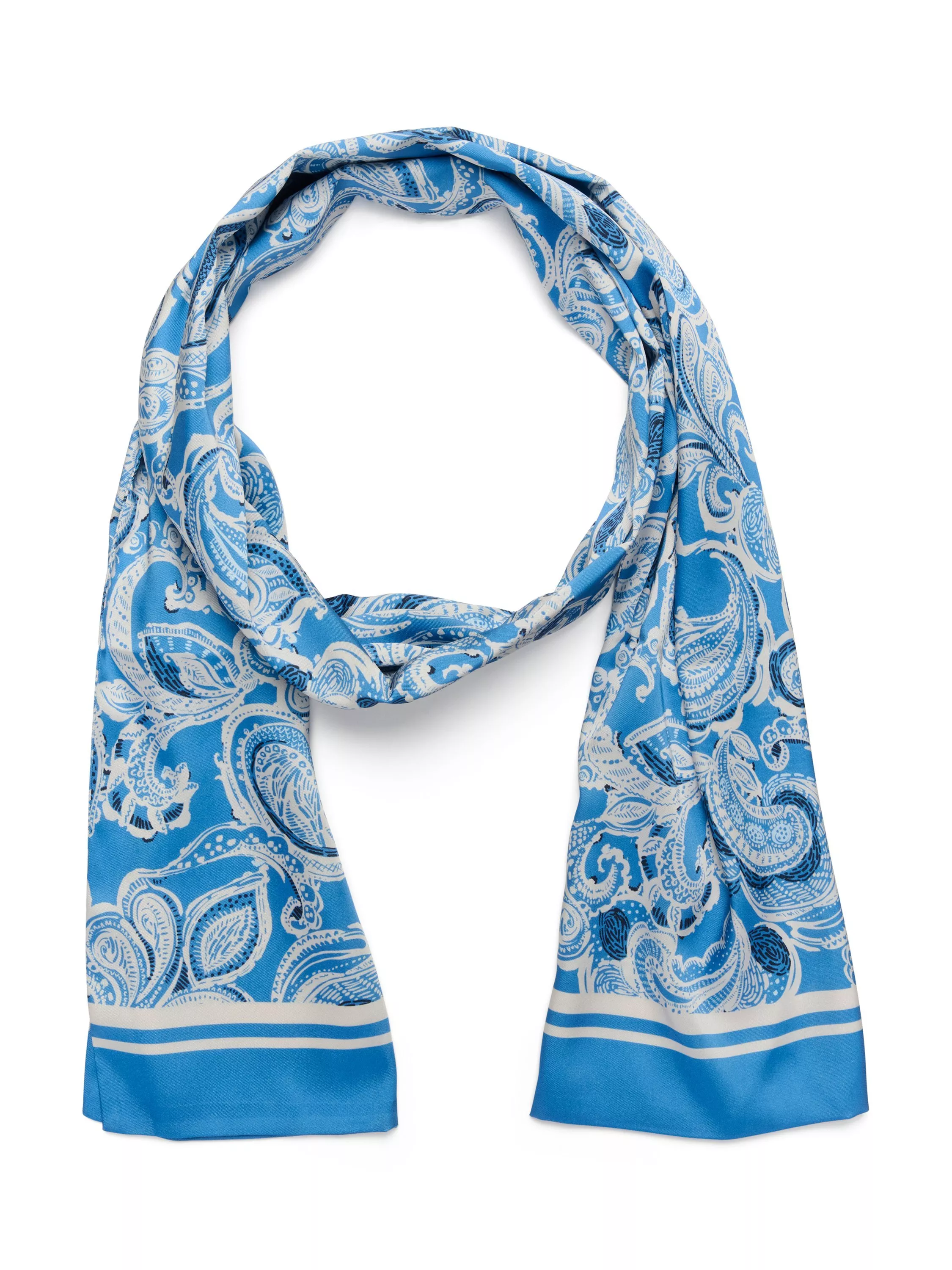 Add a touch of elegance to your outfit with this stylish scarf. Featuring a beautiful pattern and refined contrast borders, it can be worn as a sophisticated neck or hair accessory. Made from a lightweight, smooth fabric that ensures all-day comfort.