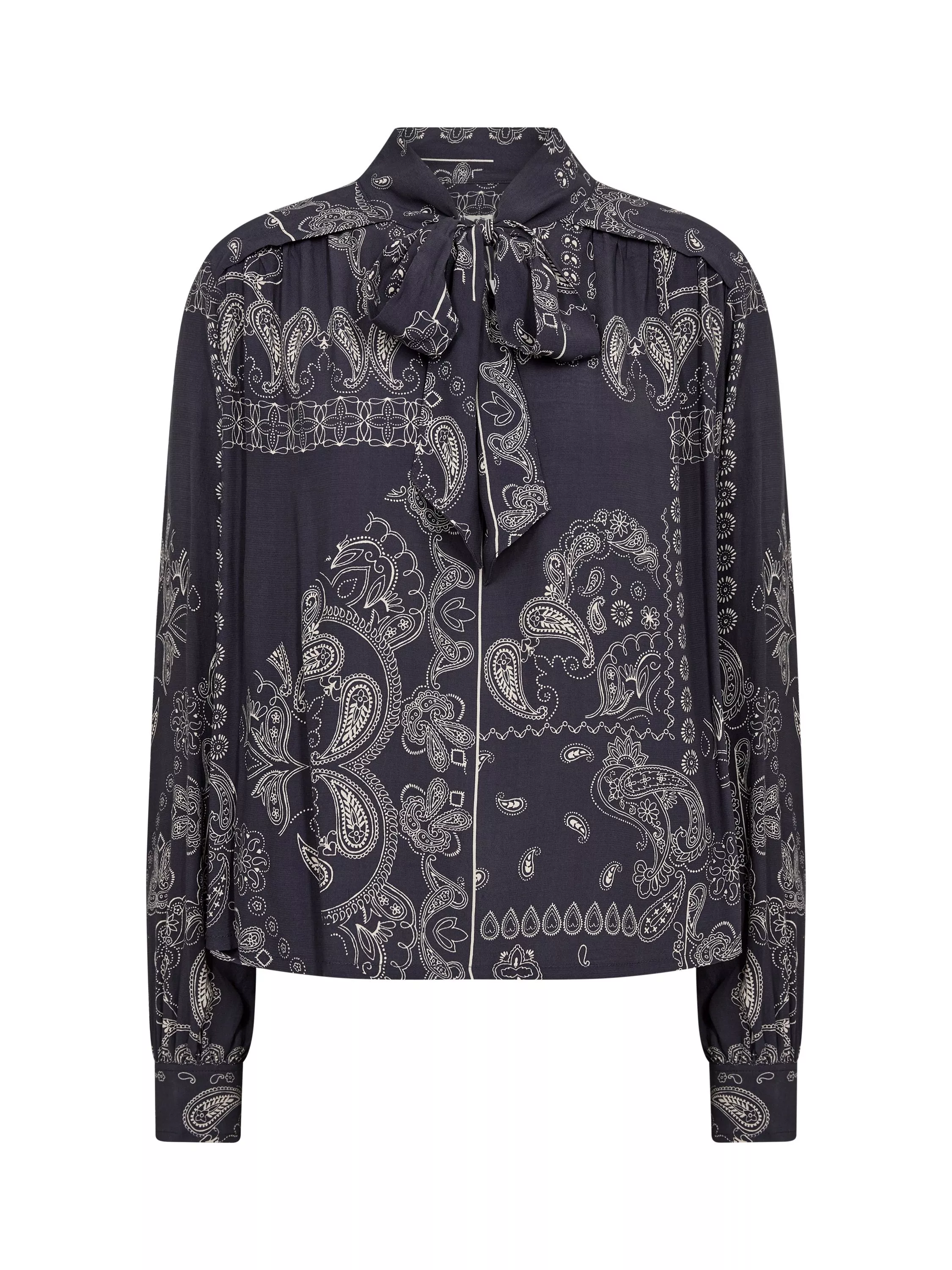 This Najia blouse in soft, lightweight fabric features an elegant paisley print, adding a sophisticated touch. With a tie-neck detail and long sleeves, it's perfect for both everyday wear and special occasions. Style it with jeans for a casual look or a skirt for added elegance.