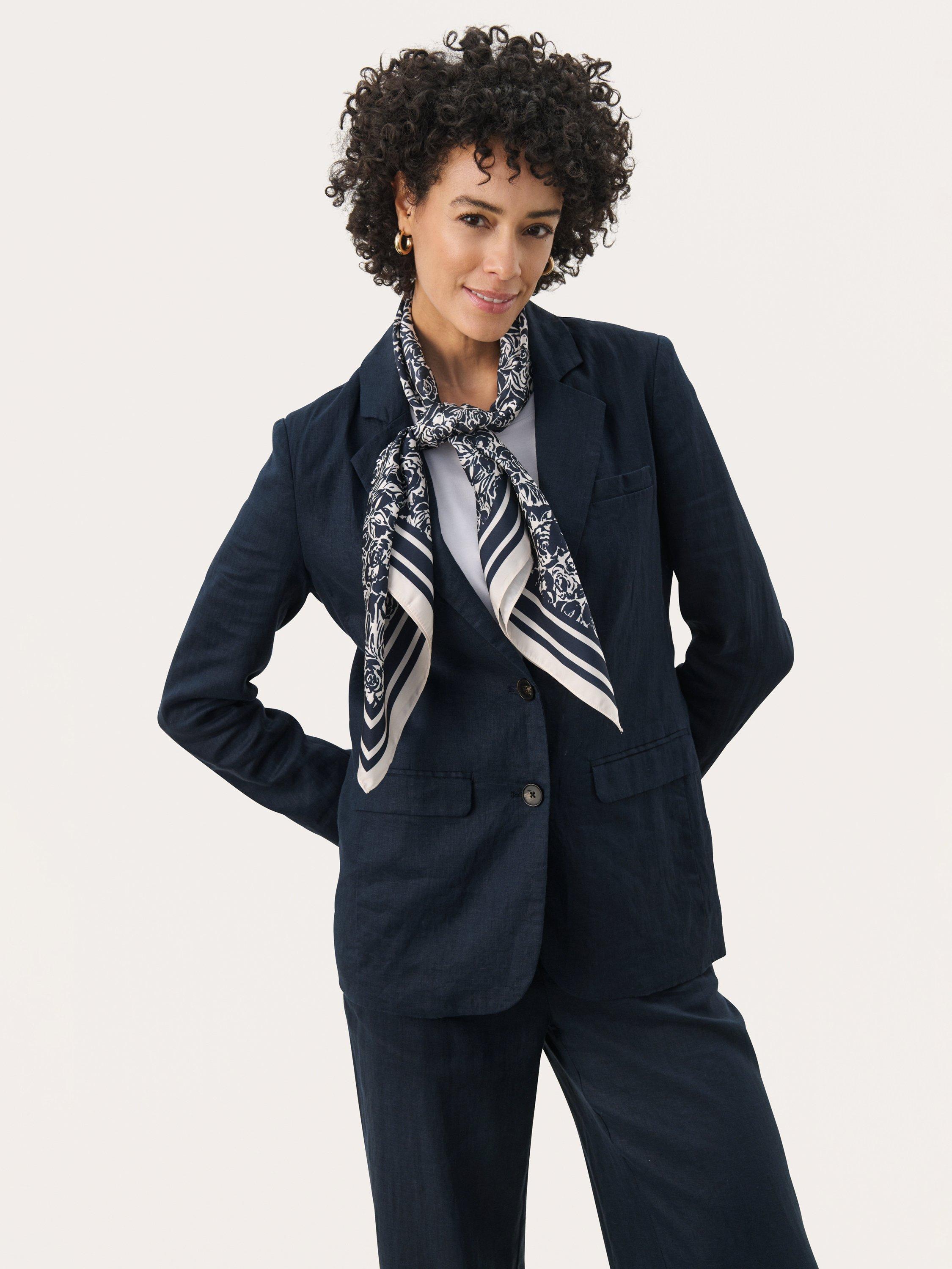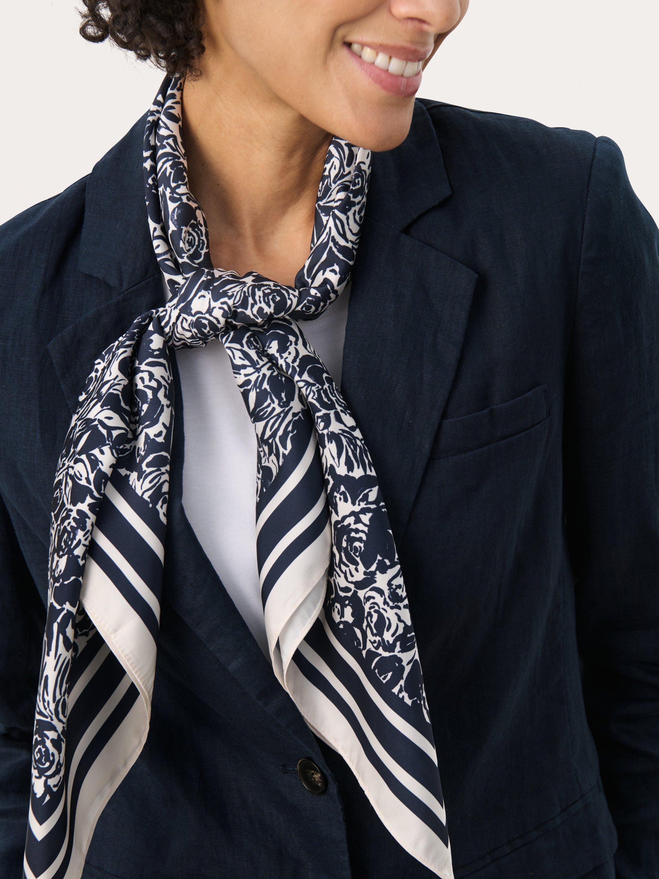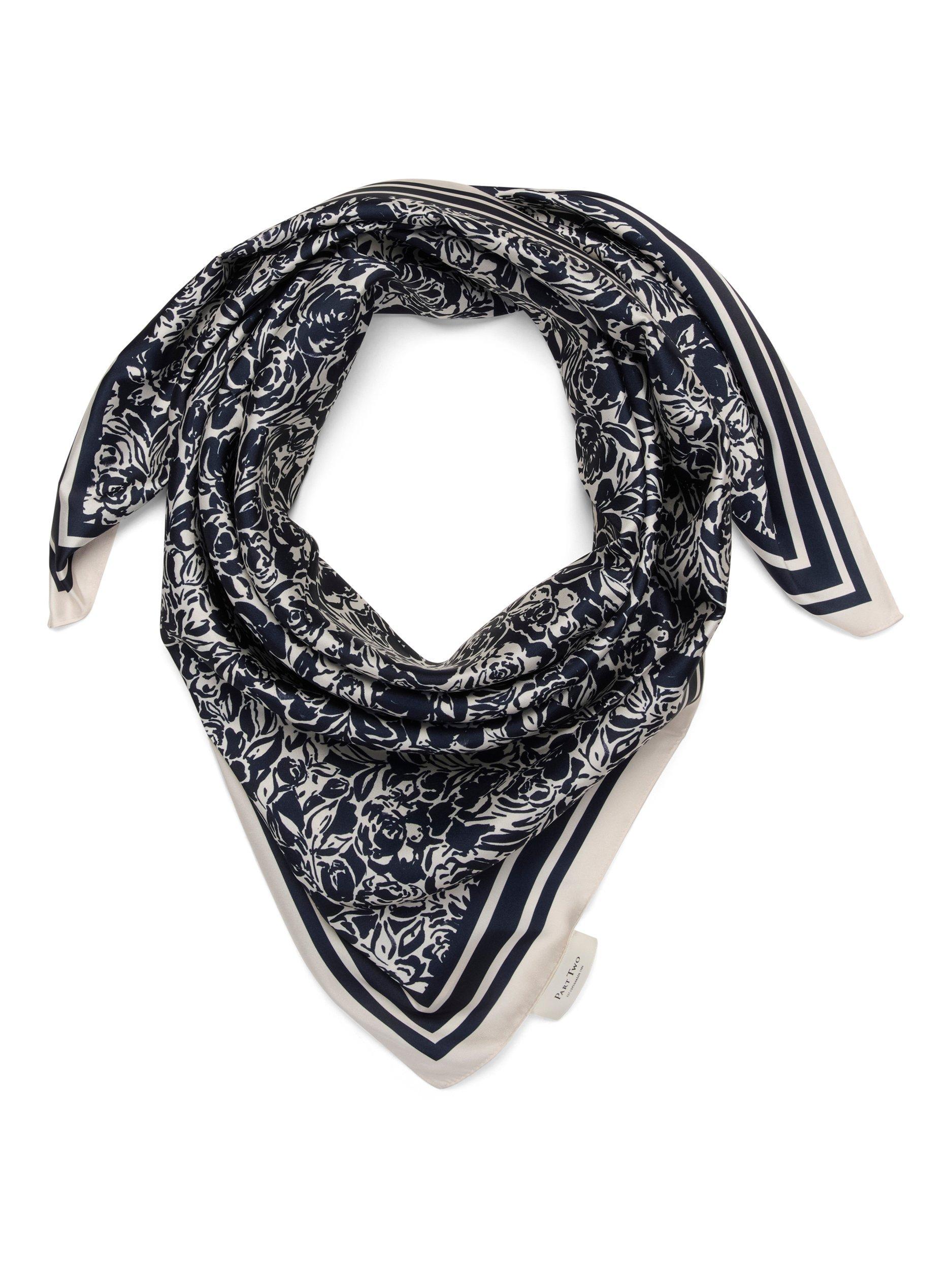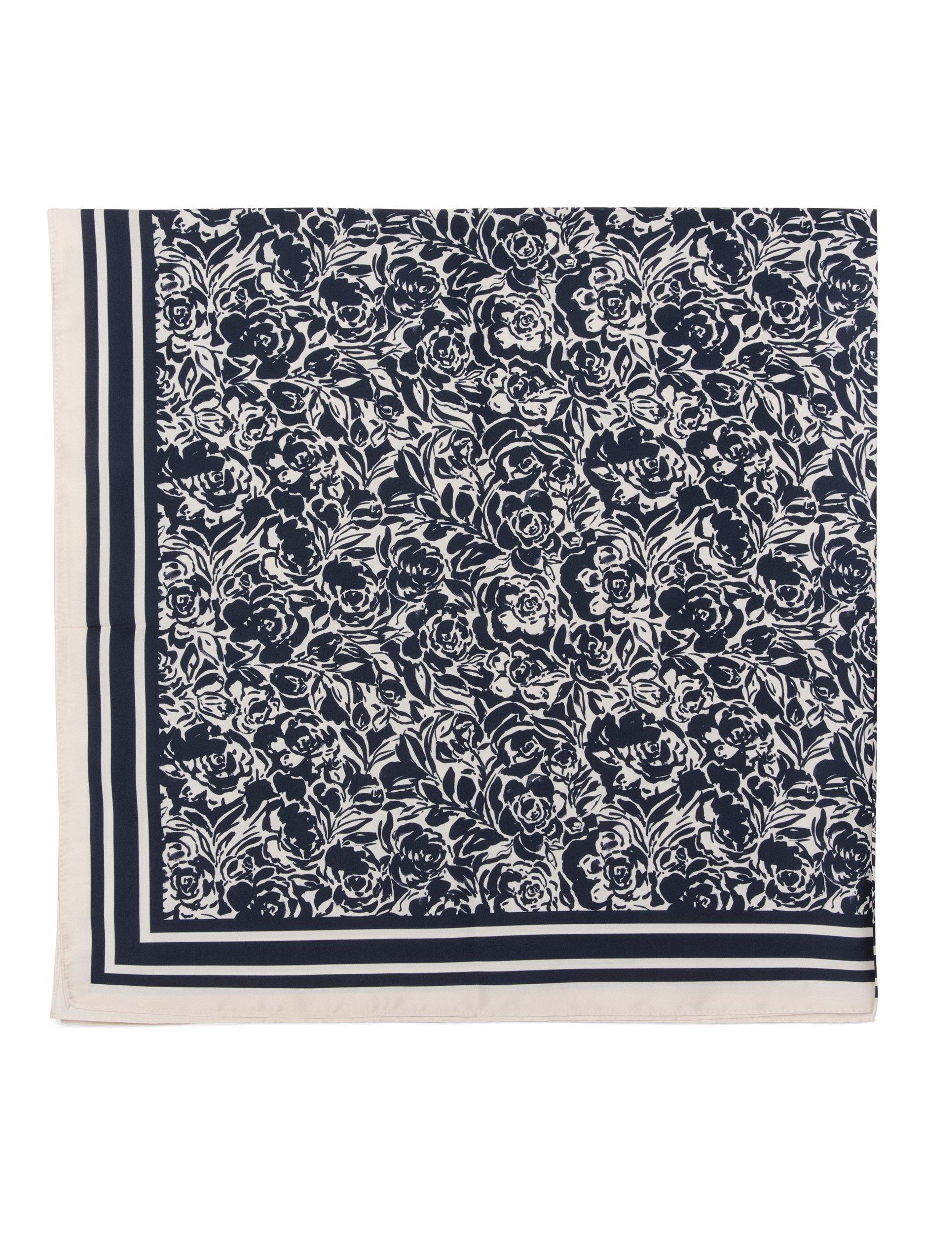 Add a touch of elegance to your outfit with this stylish scarf. Featuring a beautiful pattern and refined contrast borders, it can be worn as a sophisticated neck or hair accessory. Made from a lightweight, smooth fabric that ensures all-day comfort.