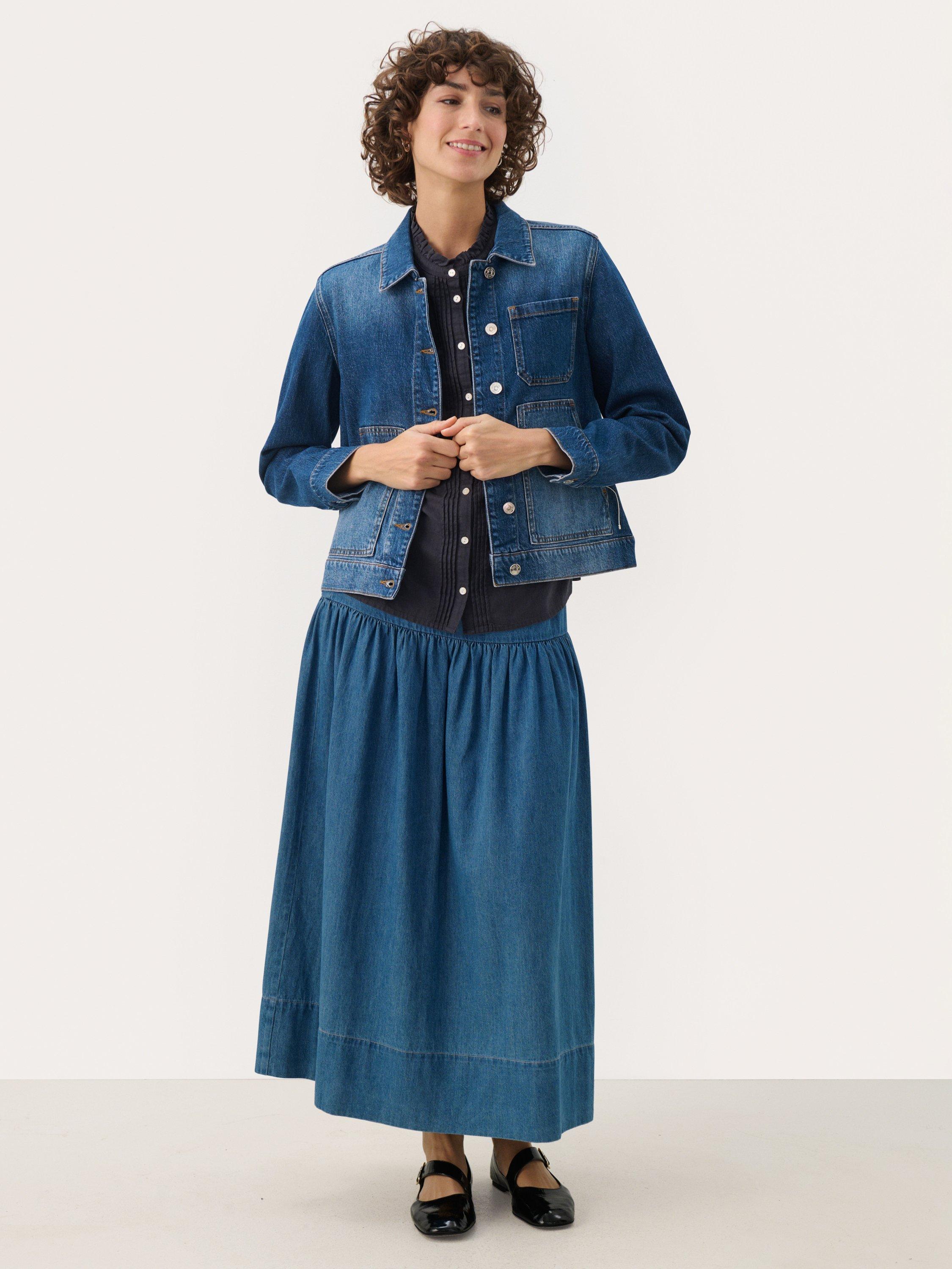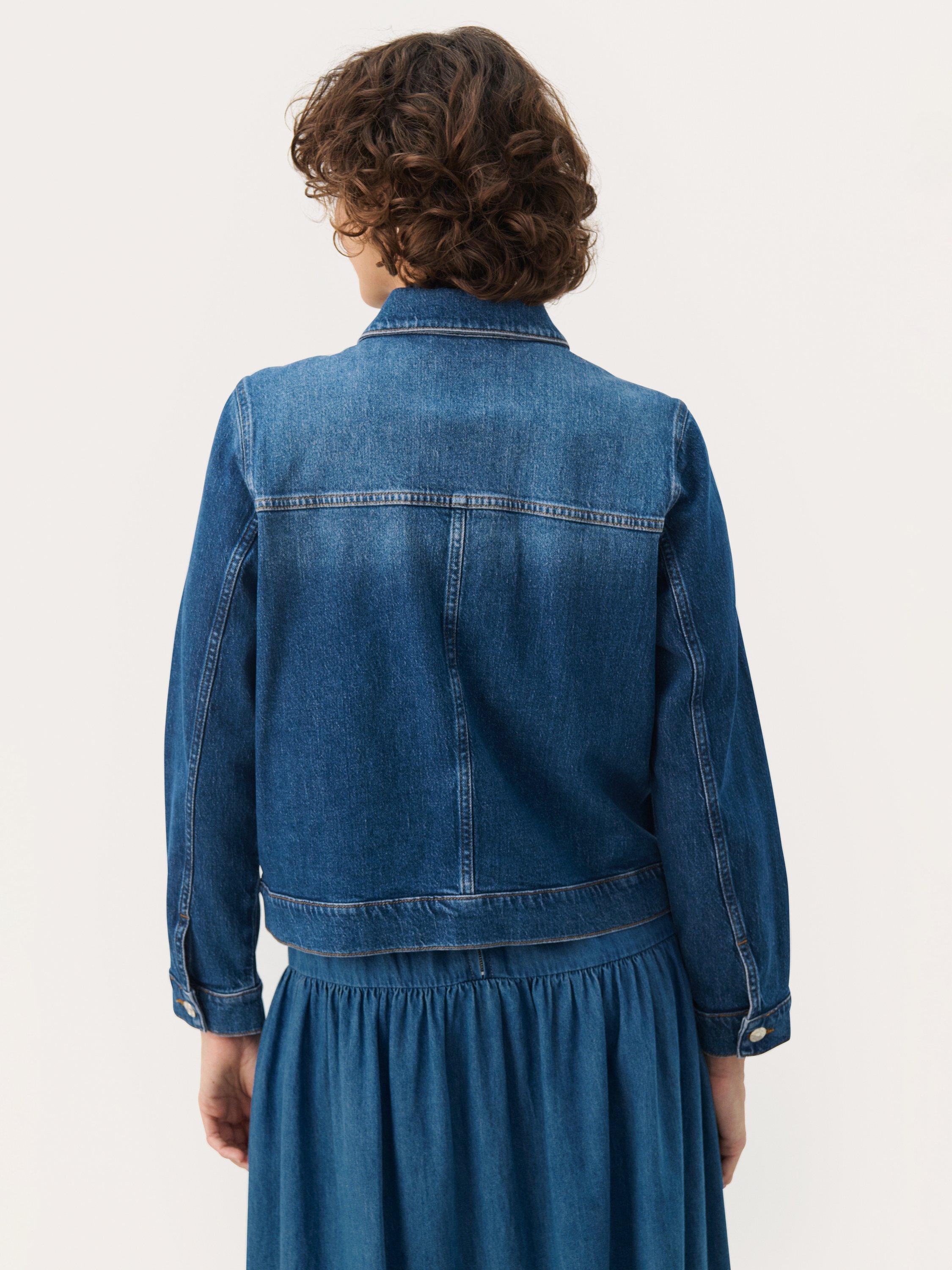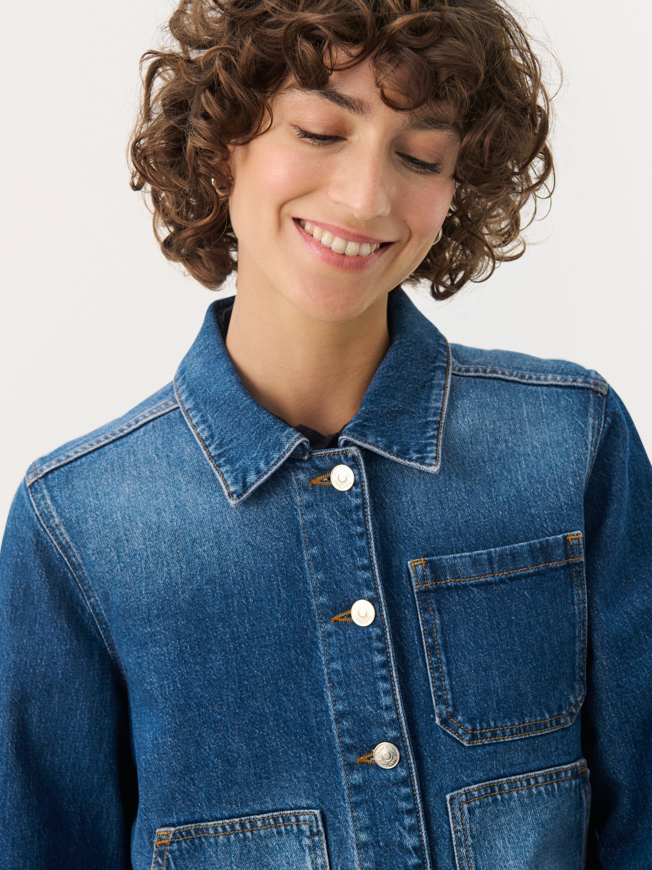 This Nannie denim jacket in a medium wash is a versatile wardrobe essential. With its relaxed fit and practical pockets, it combines functionality with style. Perfect for layering or as a transitional jacket for spring and autumn.