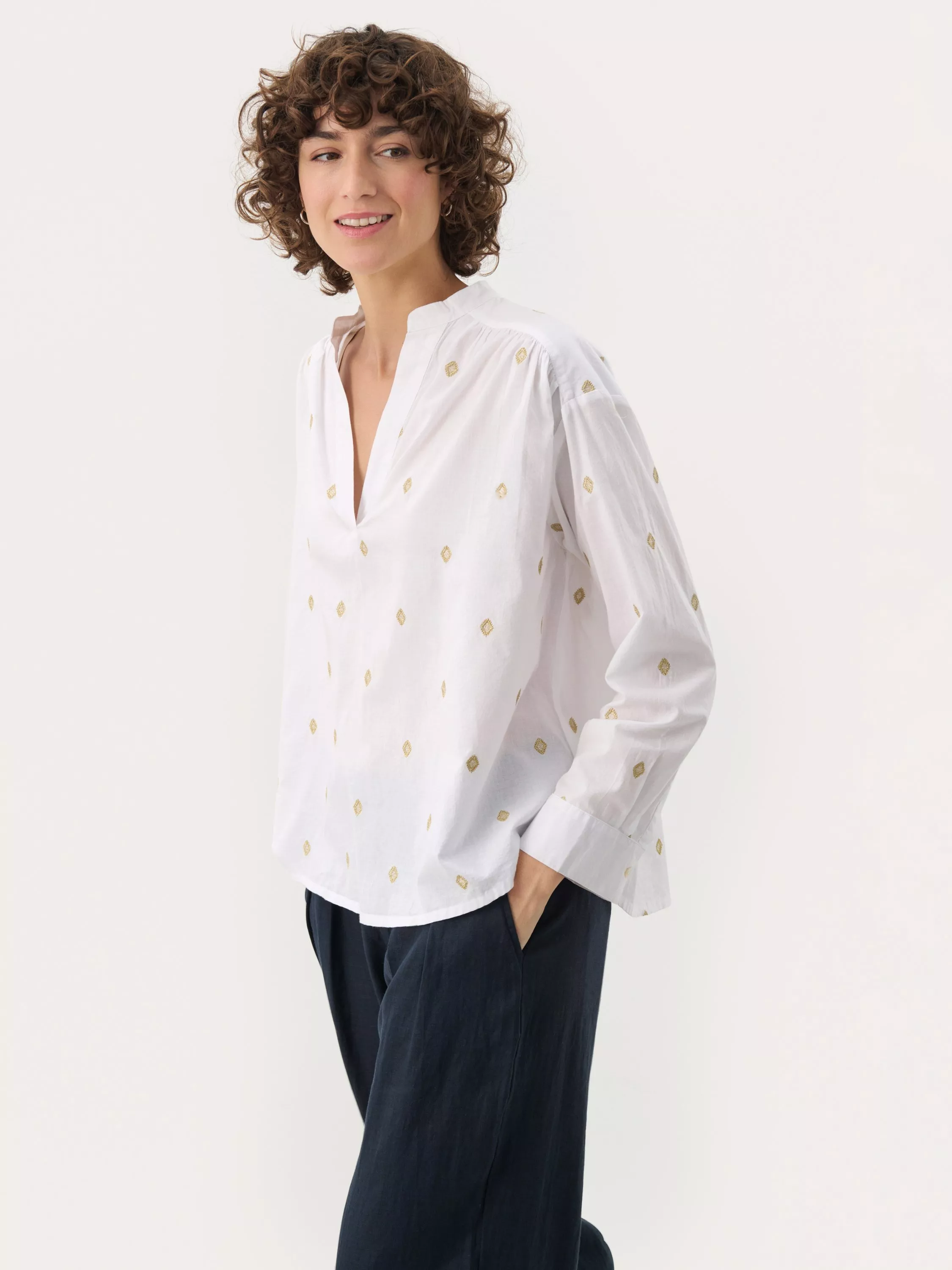 An effortless blouse from Part Two, made from soft and breathable cotton. With a V-neck and long sleeves, it's detailed with geometric embroidery. One for your everyday lineup.