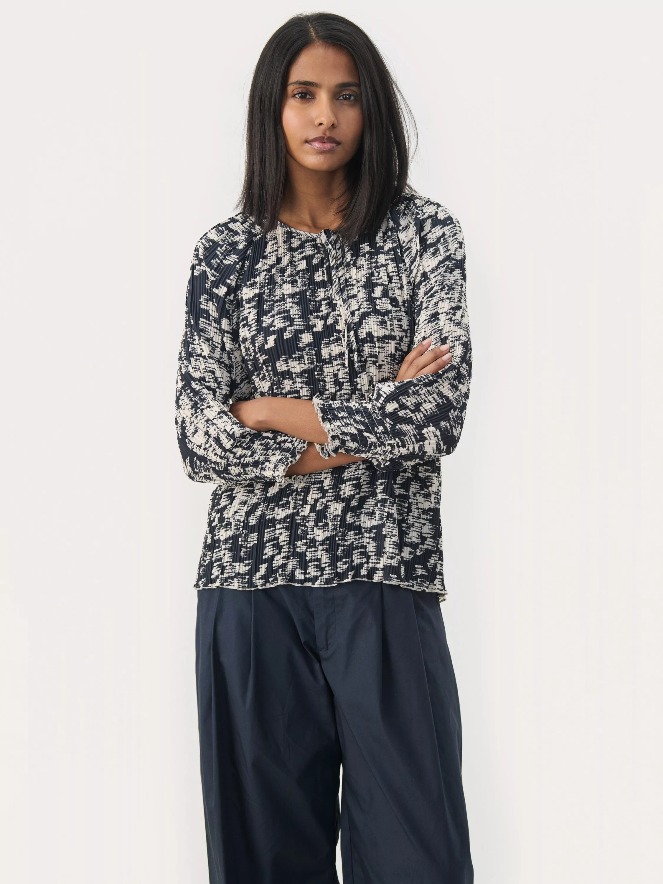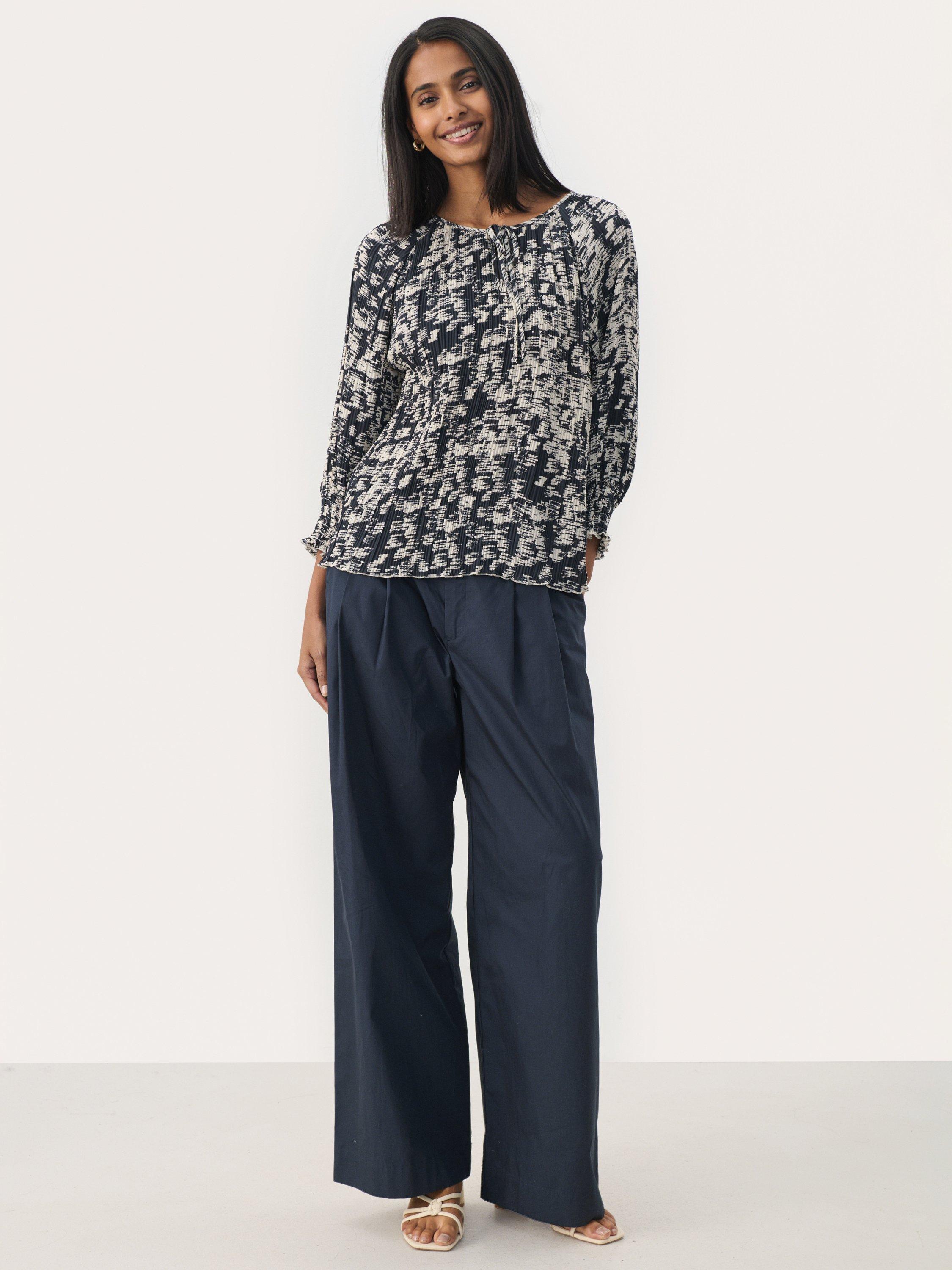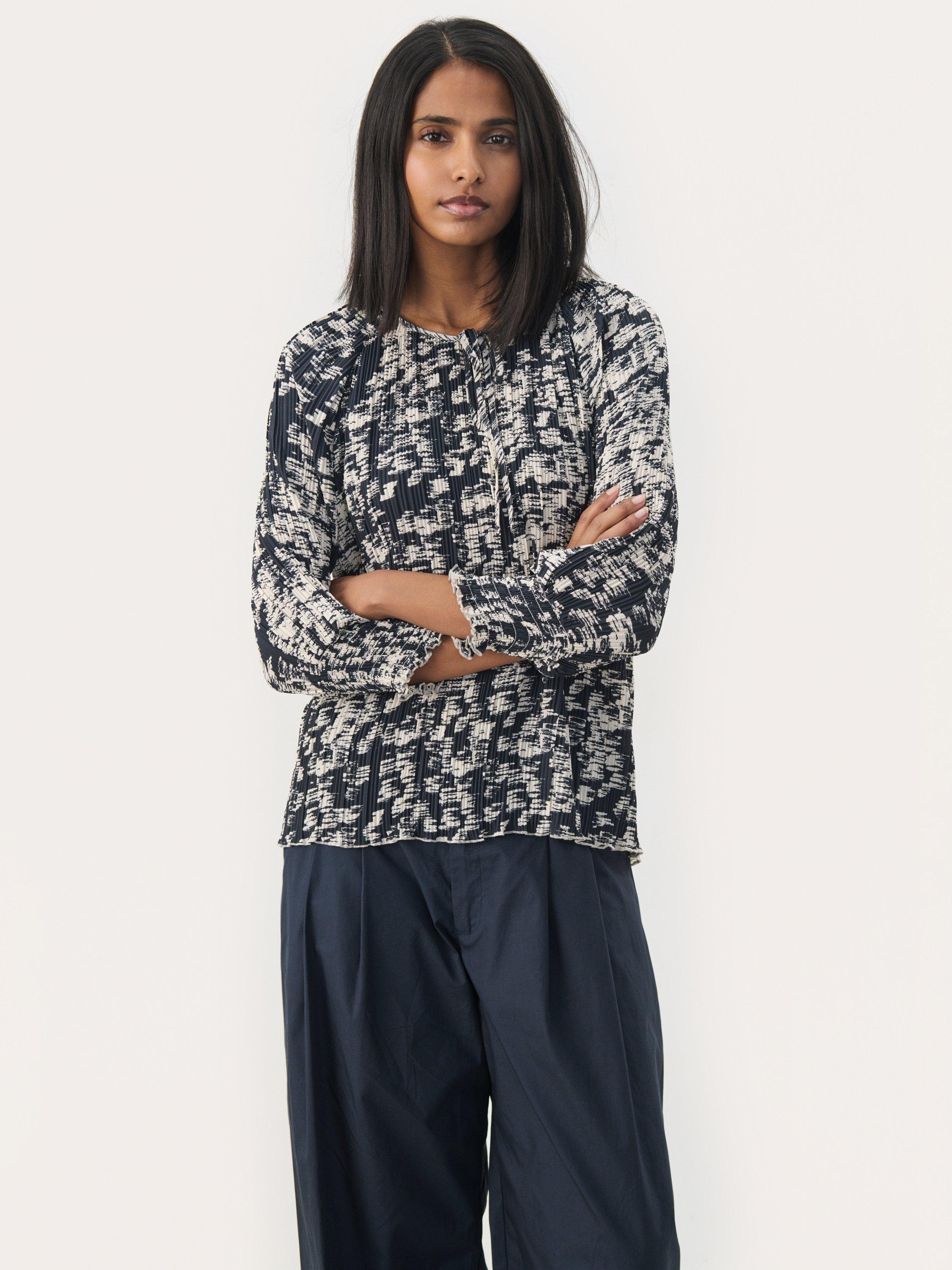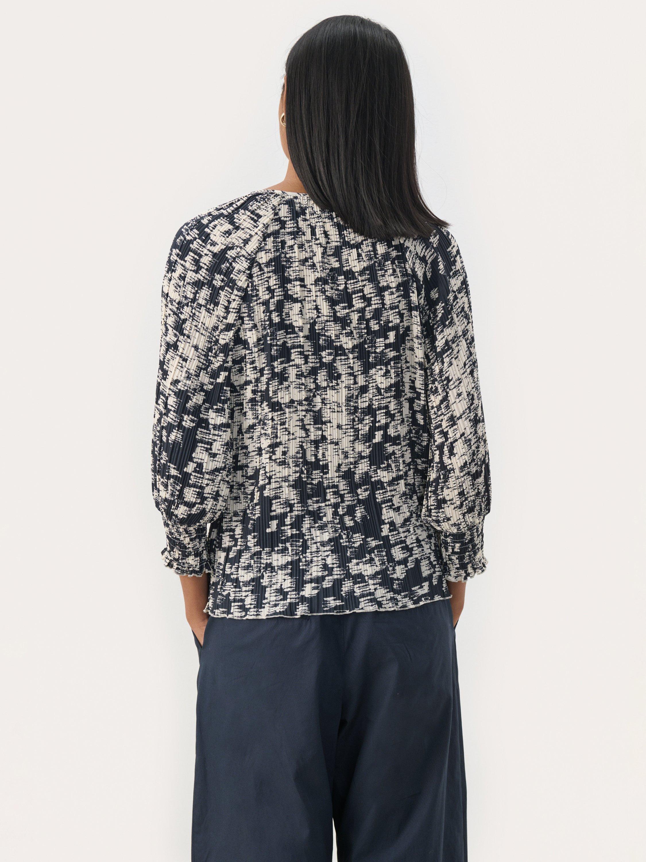 This Nayeli blouse with an abstract print and three-quarter sleeves adds a modern and sophisticated touch to your wardrobe. Designed with a round neckline and a small front opening for a feminine look. Perfect for both everyday wear and evening outings - pair with jeans or trousers.
