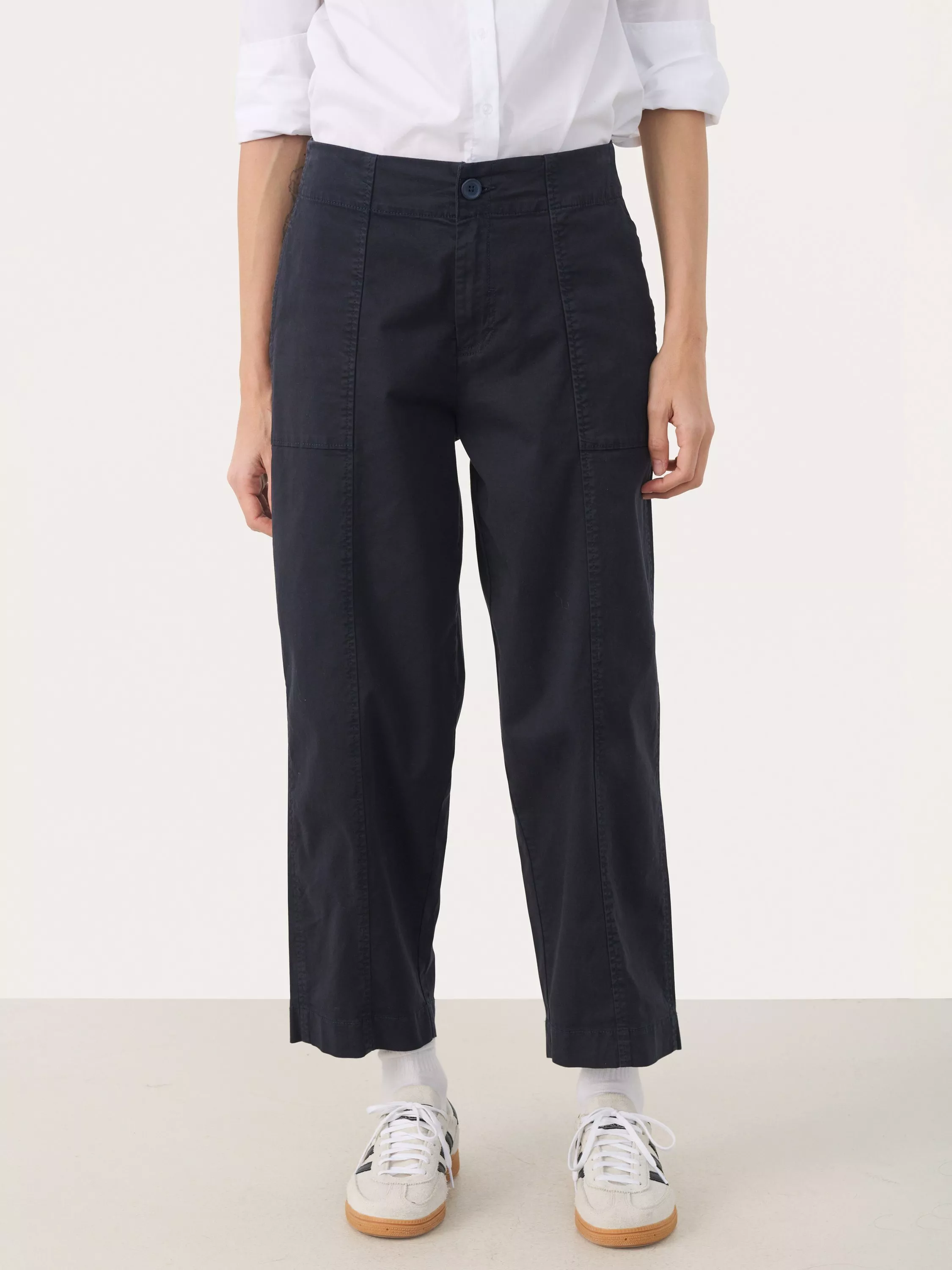 Part Two brings you tailored trousers crafted from a soft cotton blend, offering a comfortable mid-rise fit for everyday wear.