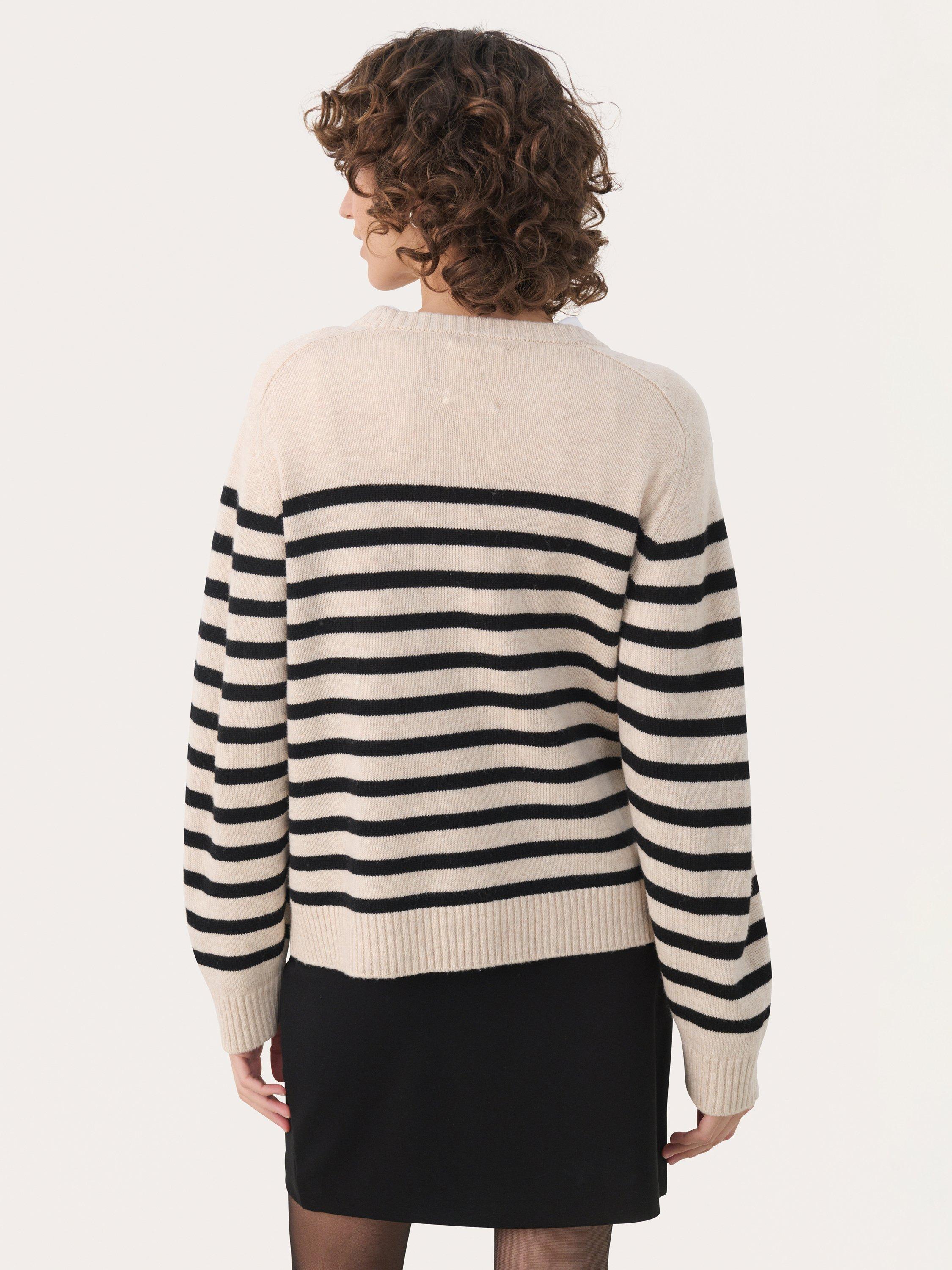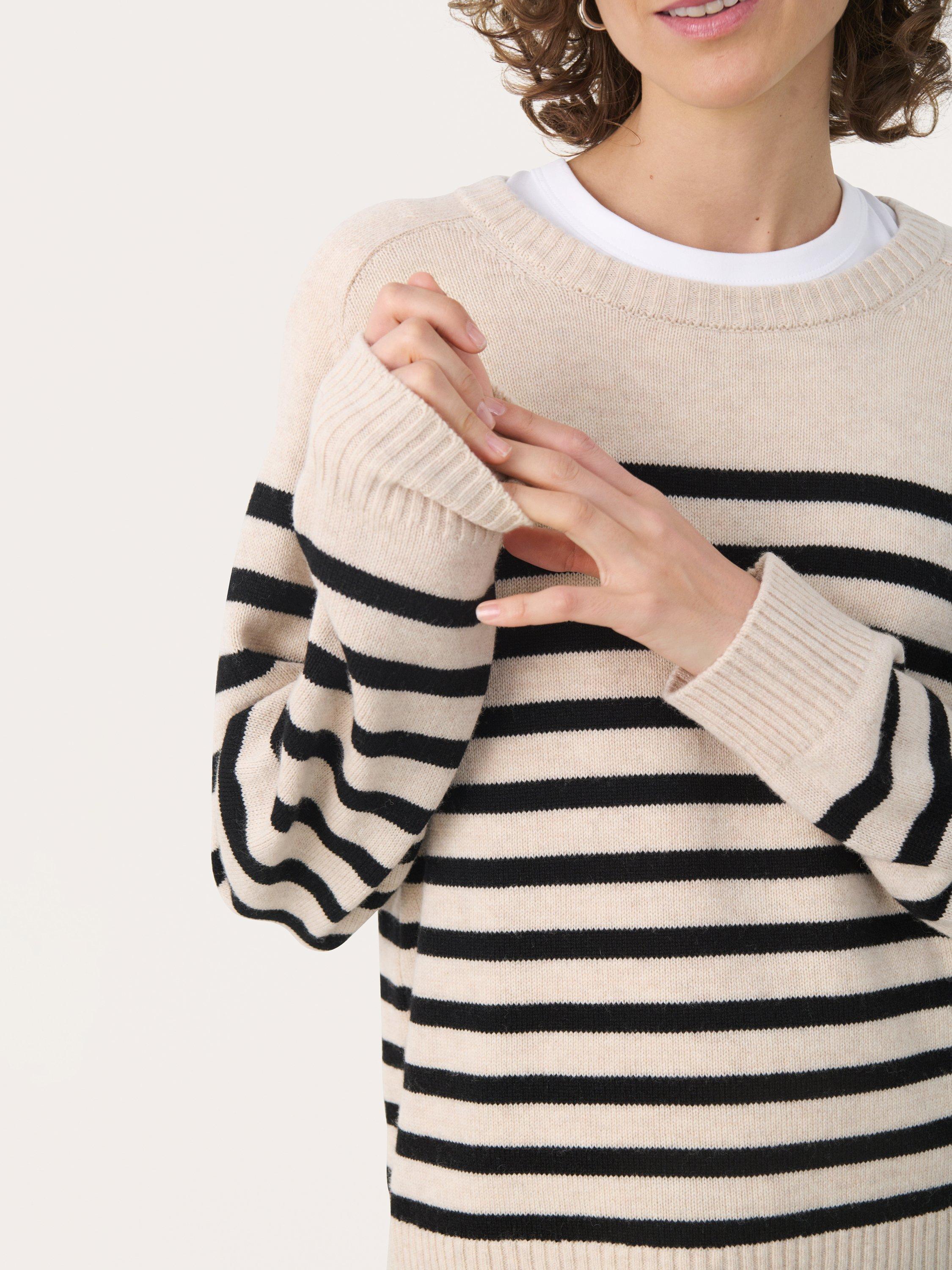 Soft yet striking, this striped crew neck jumper keeps you comfortable all day. Its thoughtful wool blend offers warmth without bulk, while long sleeves make it an easy pick for layering or lounging.