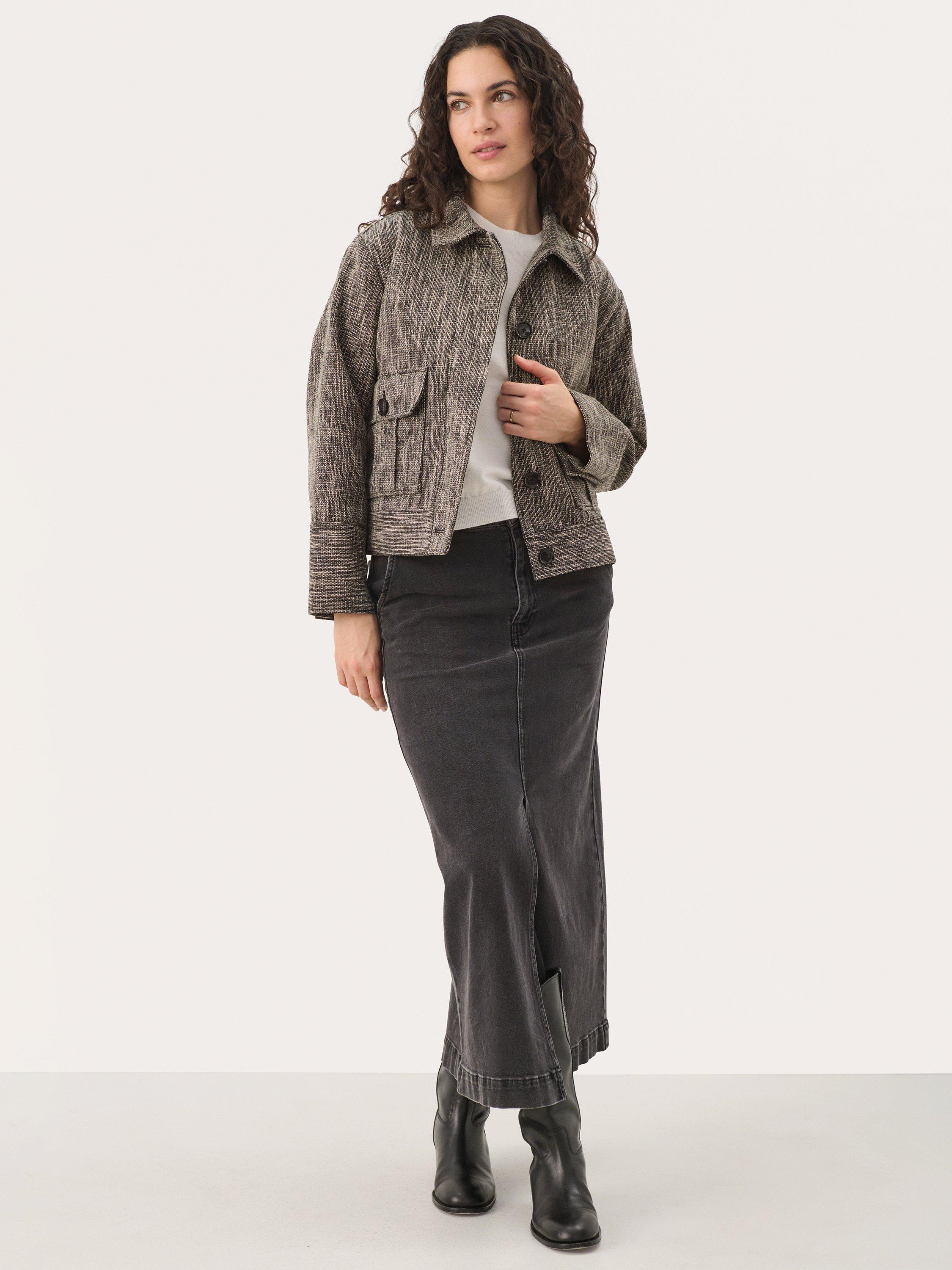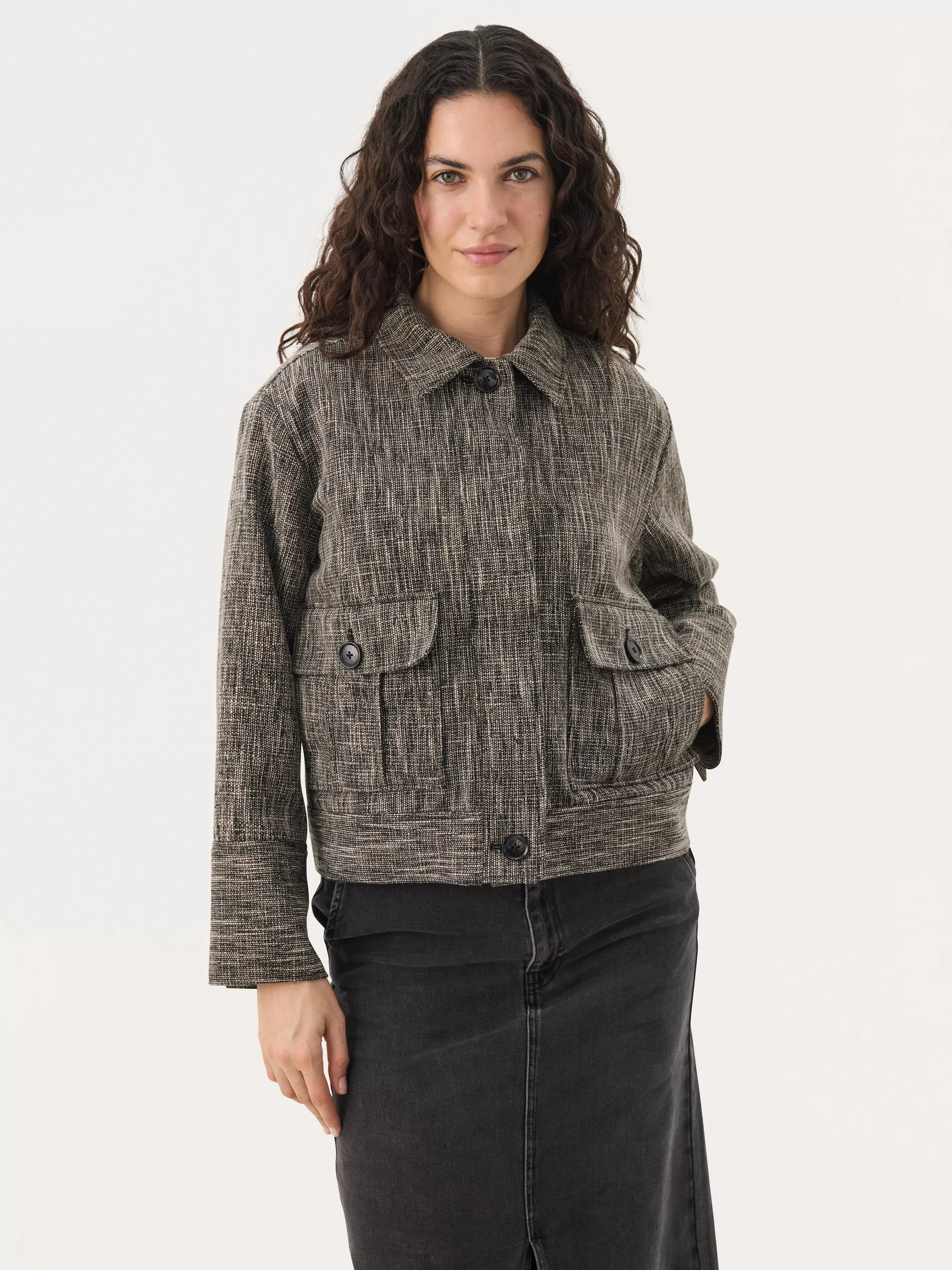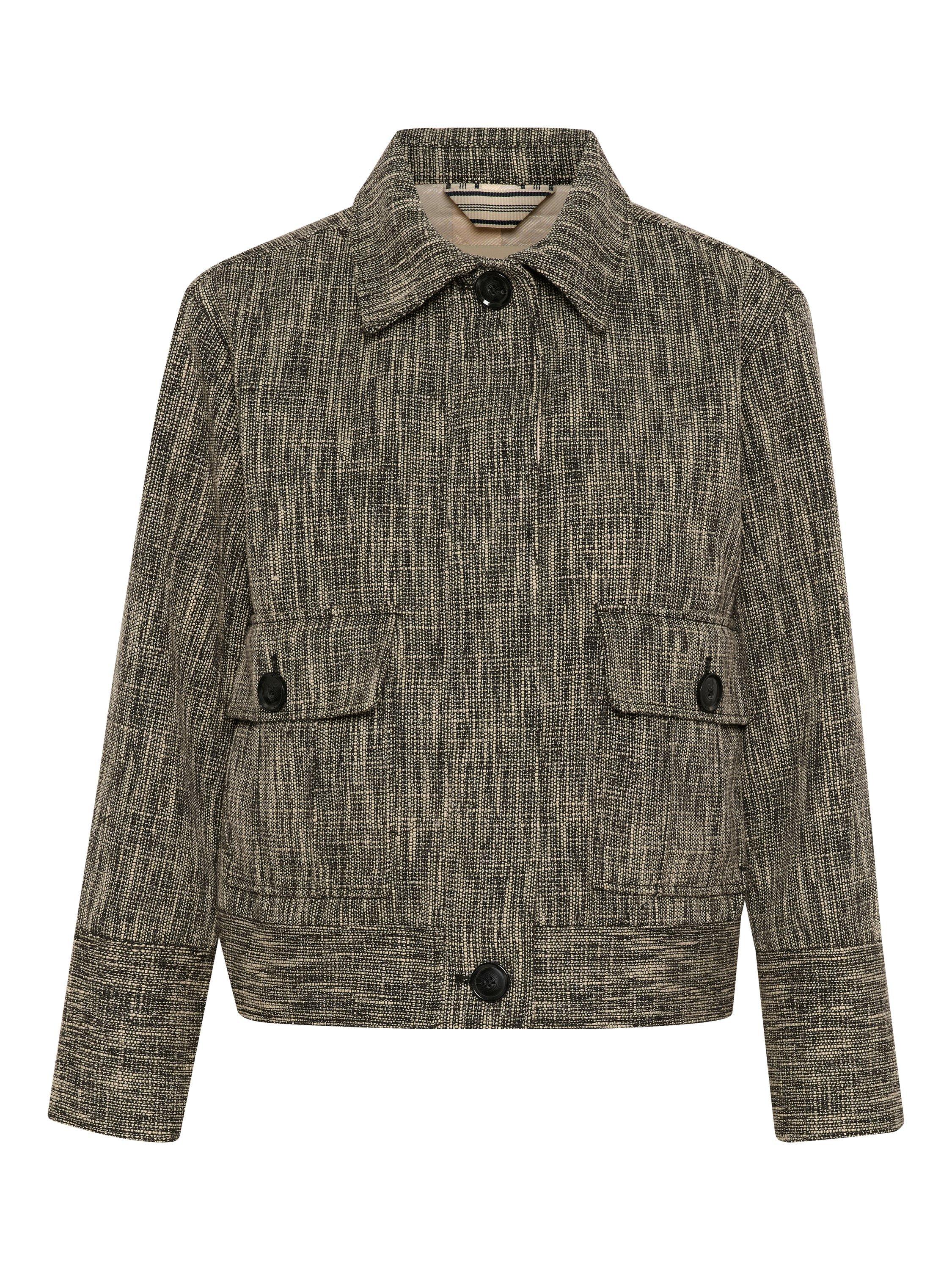 This Nichala jacket in textured fabric combines retro charm with a modern cut. Featuring large buttons and practical pockets, it has a unique look that stands out. Perfect for transitional seasons when you want to add a stylish touch to your outfit.