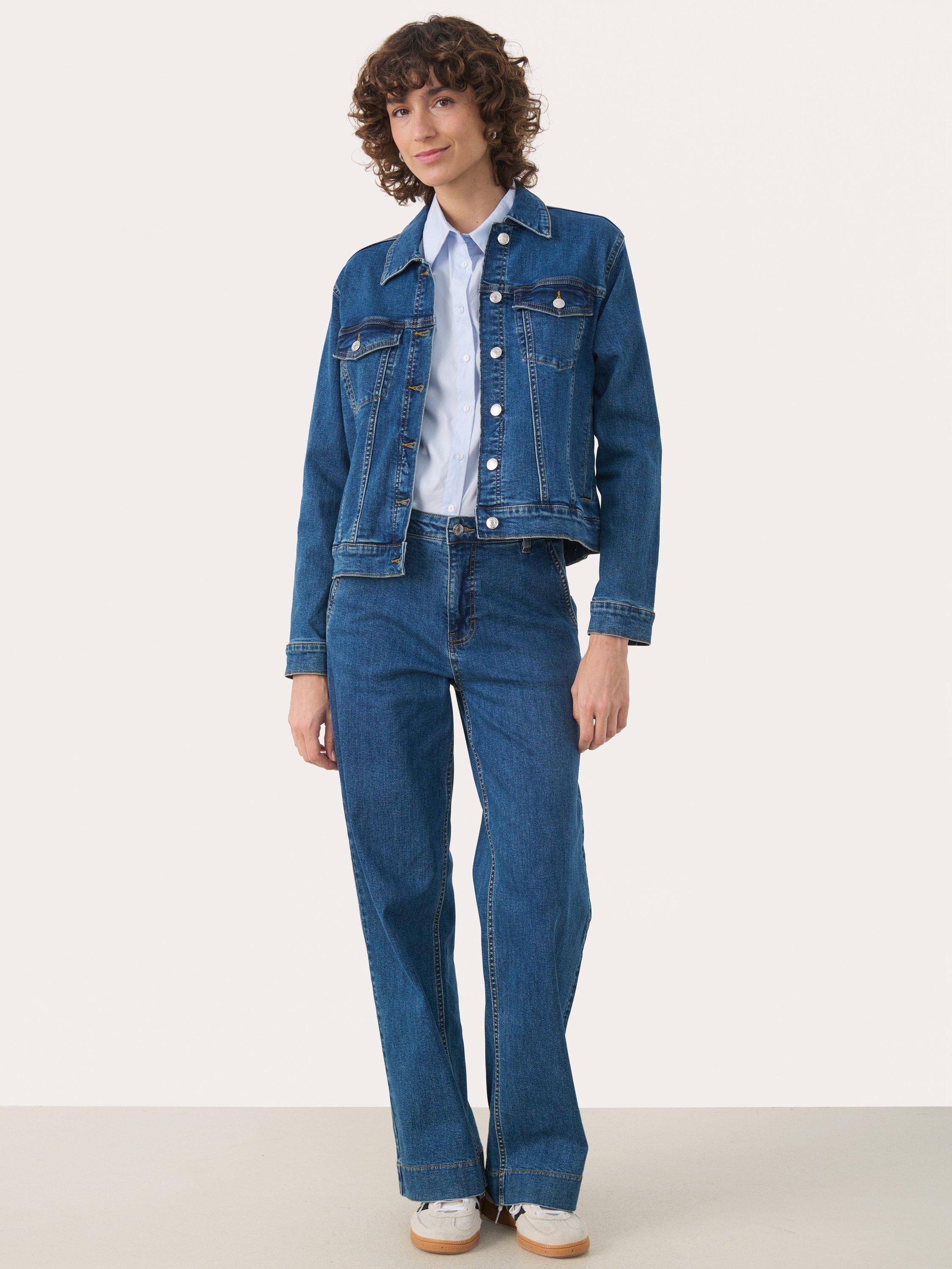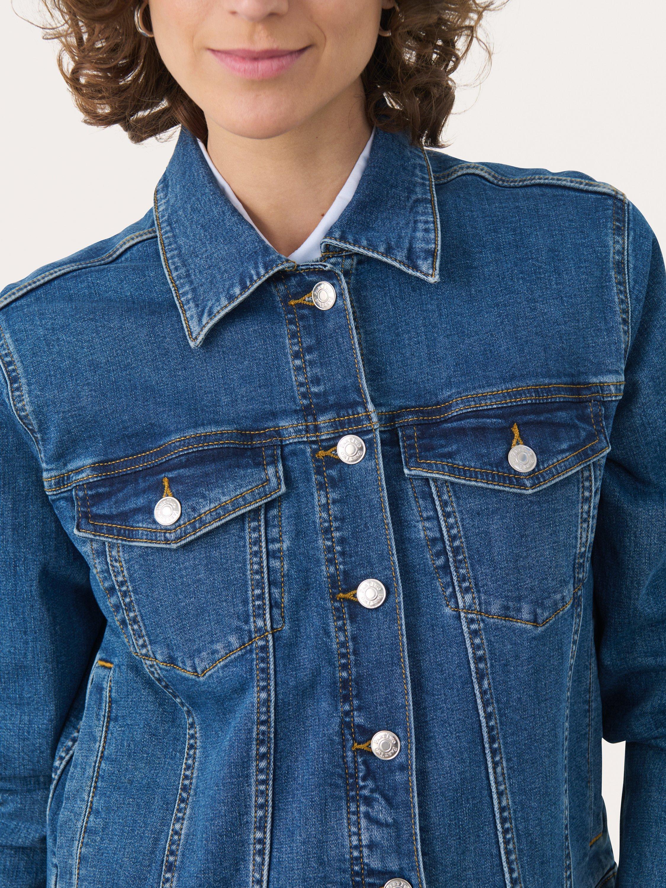 Part Two's denim jacket adds clever versatility to your daytime style with comfortable stretch and thoughtful recycled fibres. A classic collar and easy button fastening make it a trusty go-to for layering and seamless, everyday wear.