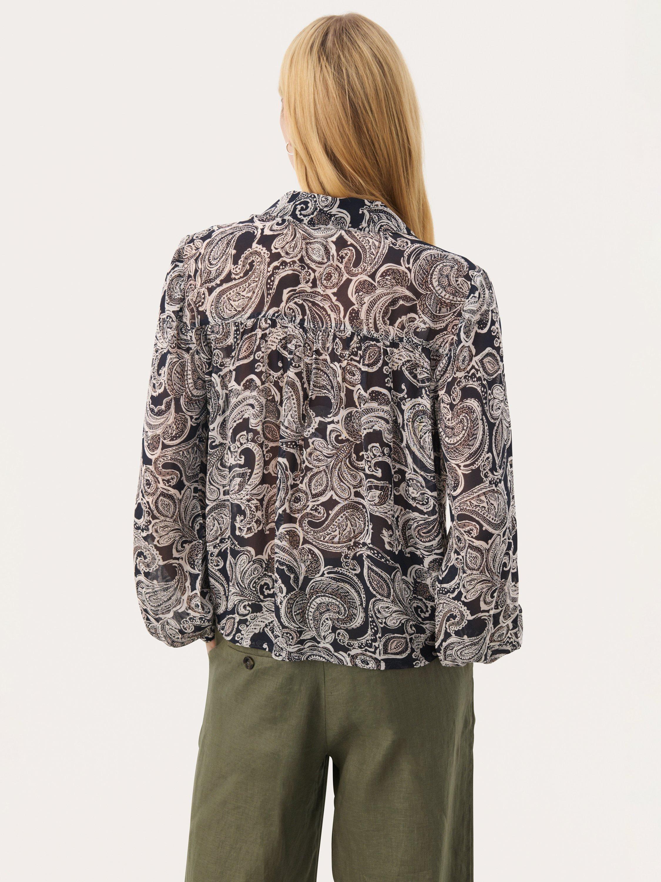 This Nicholina blouse offers a feminine and relaxed look. Designed with a V-neck, classic collar, and long sleeves, it's perfect for both everyday wear and special occasions. Style with jeans or a skirt for an elegant touch.