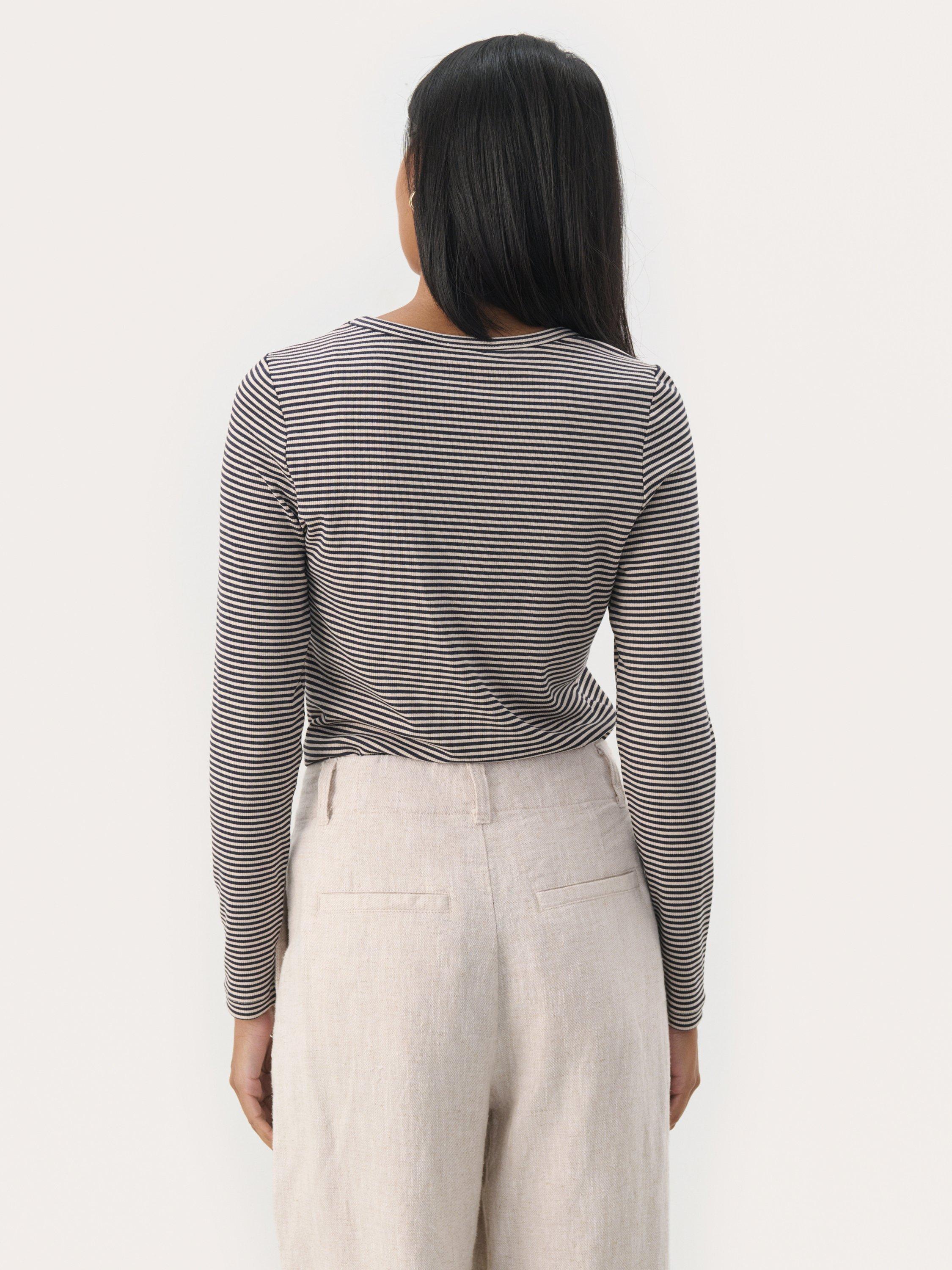 This Nikou long-sleeve top with a subtle neckline cut-out is perfect for both everyday wear and relaxed days. The fitted shape and soft fabric make it ideal for layering or wearing on its own with your favourite jeans for a timeless look.