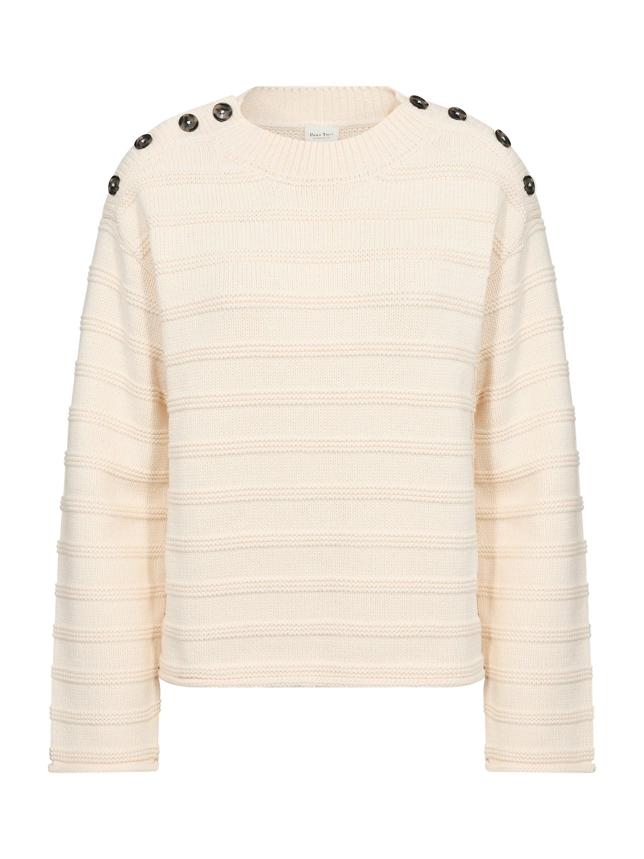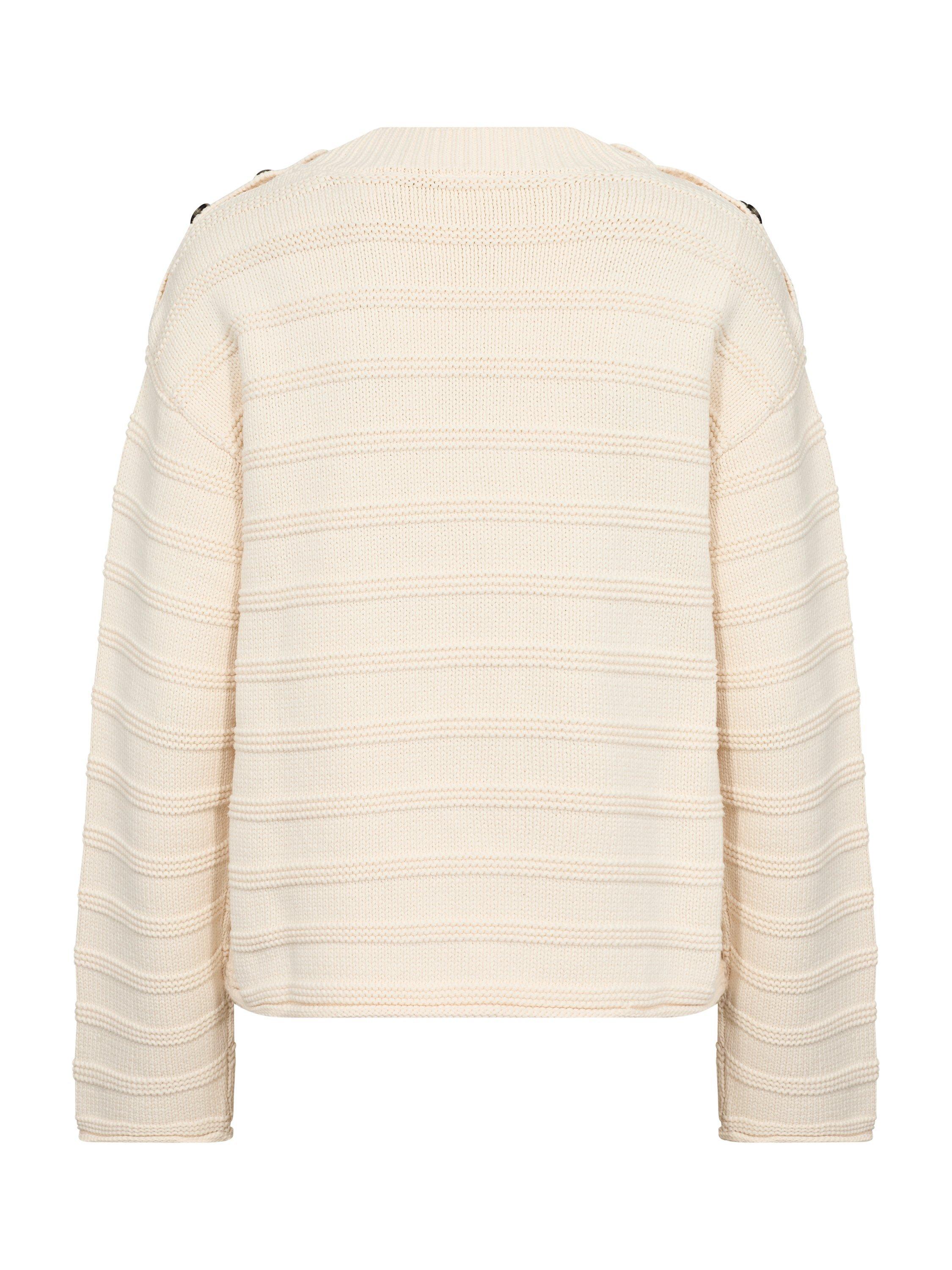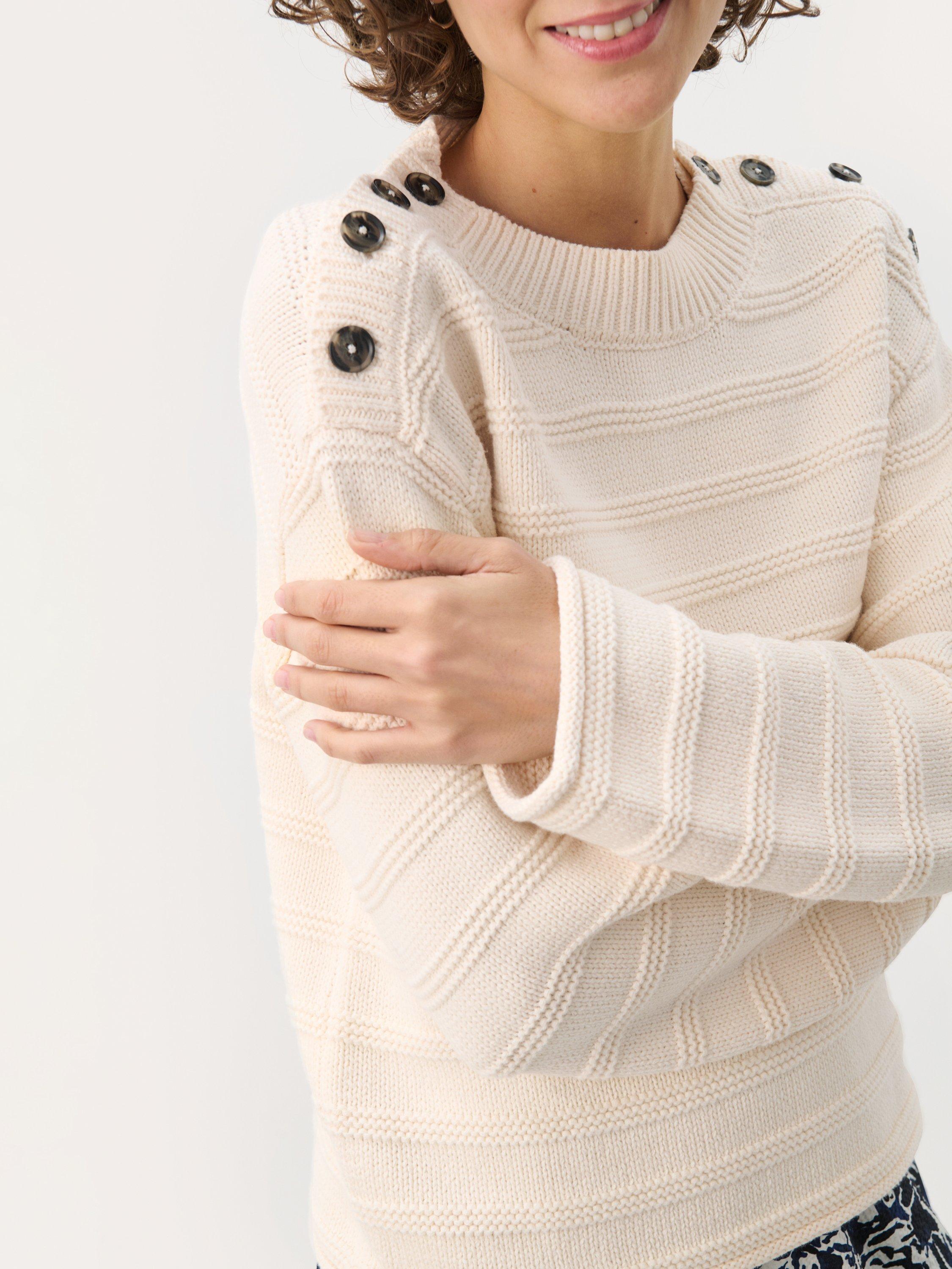 This Noell sweater with button details on the shoulders adds a unique touch to your outfit. Designed with a relaxed fit and subtle horizontal stripes, it provides a stylish yet casual look. Perfect with jeans or skirts for a modern style.