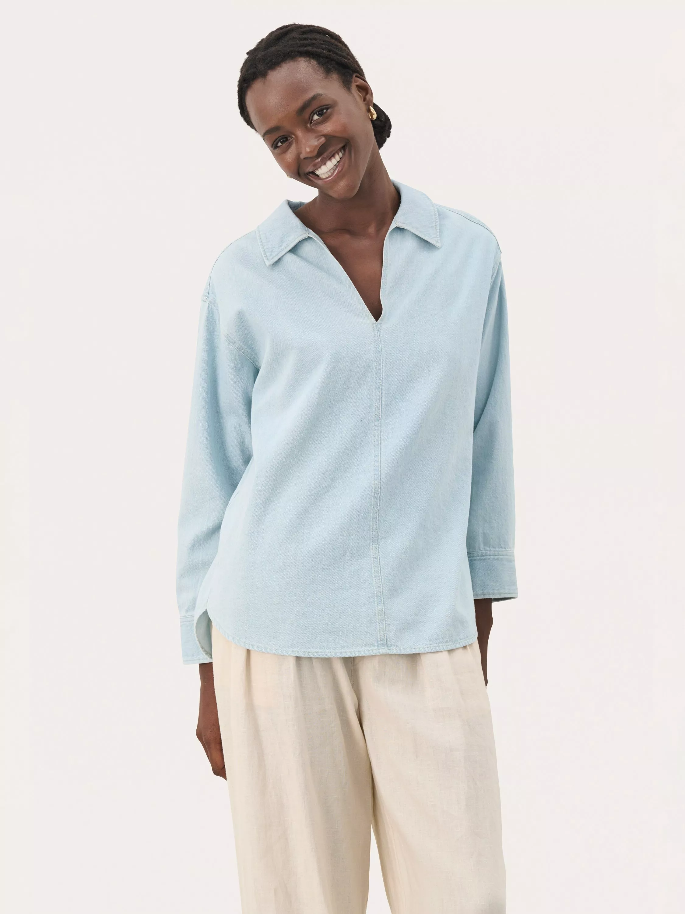 This Norly shirt features a minimalist and relaxed design, perfect for everyday wear. With its loose fit, open collar, and soft fabric, it's both comfortable and stylish. Ideal to pair with jeans or trousers for an effortless, elegant look.