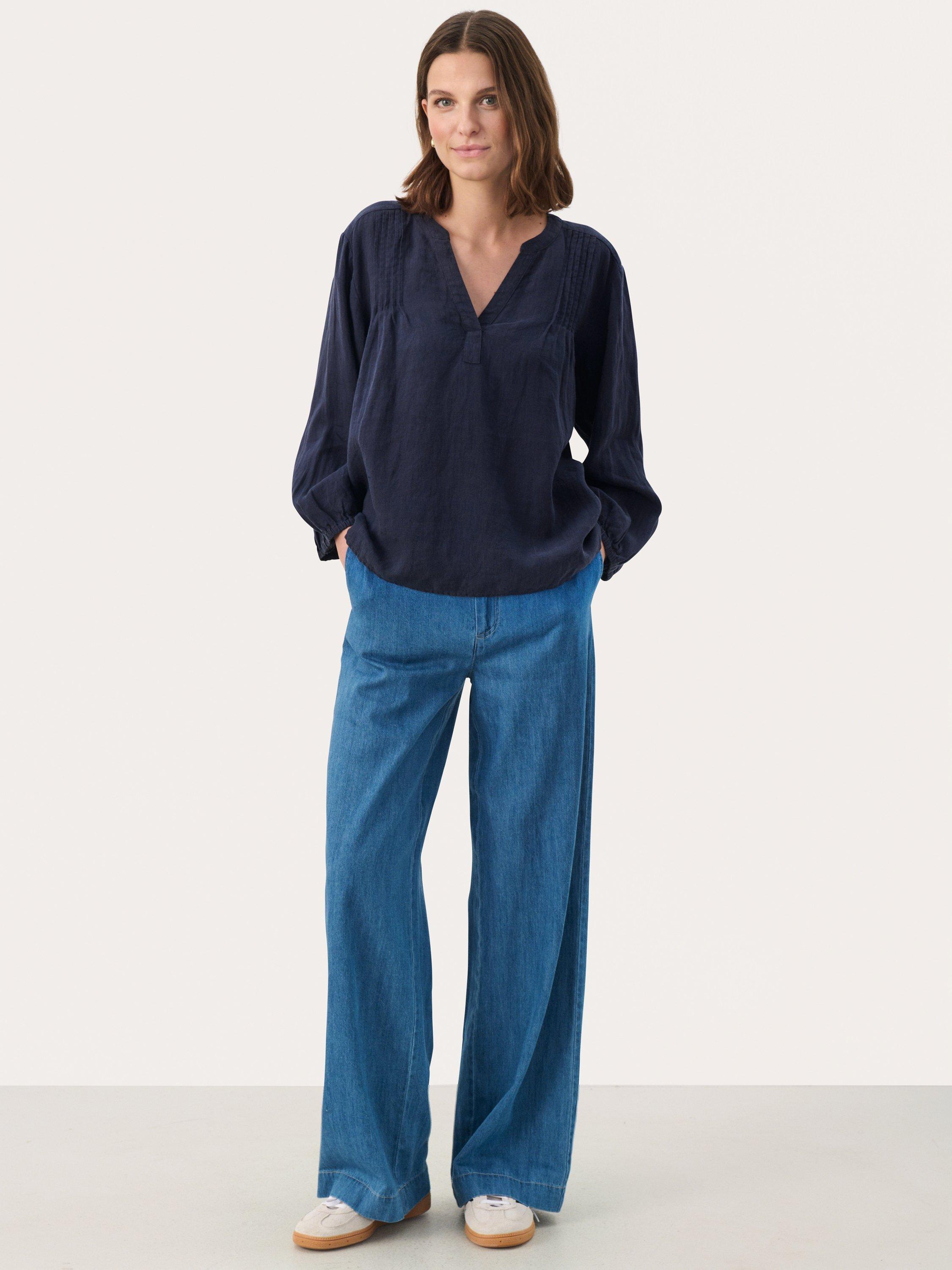 Part TwoNyara Pure Linen V-Neck Blouse, After Midnight