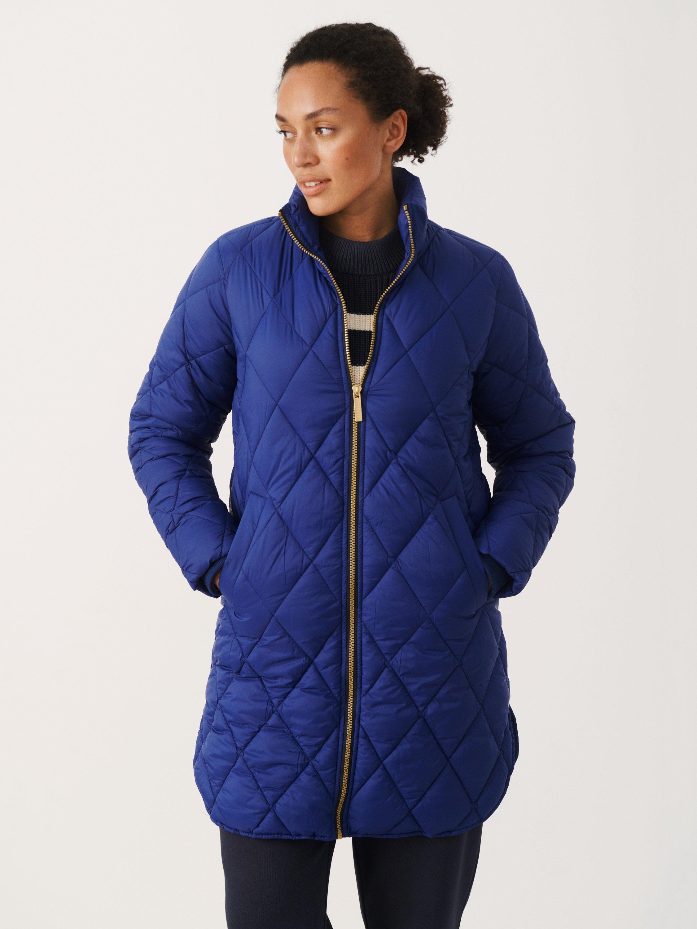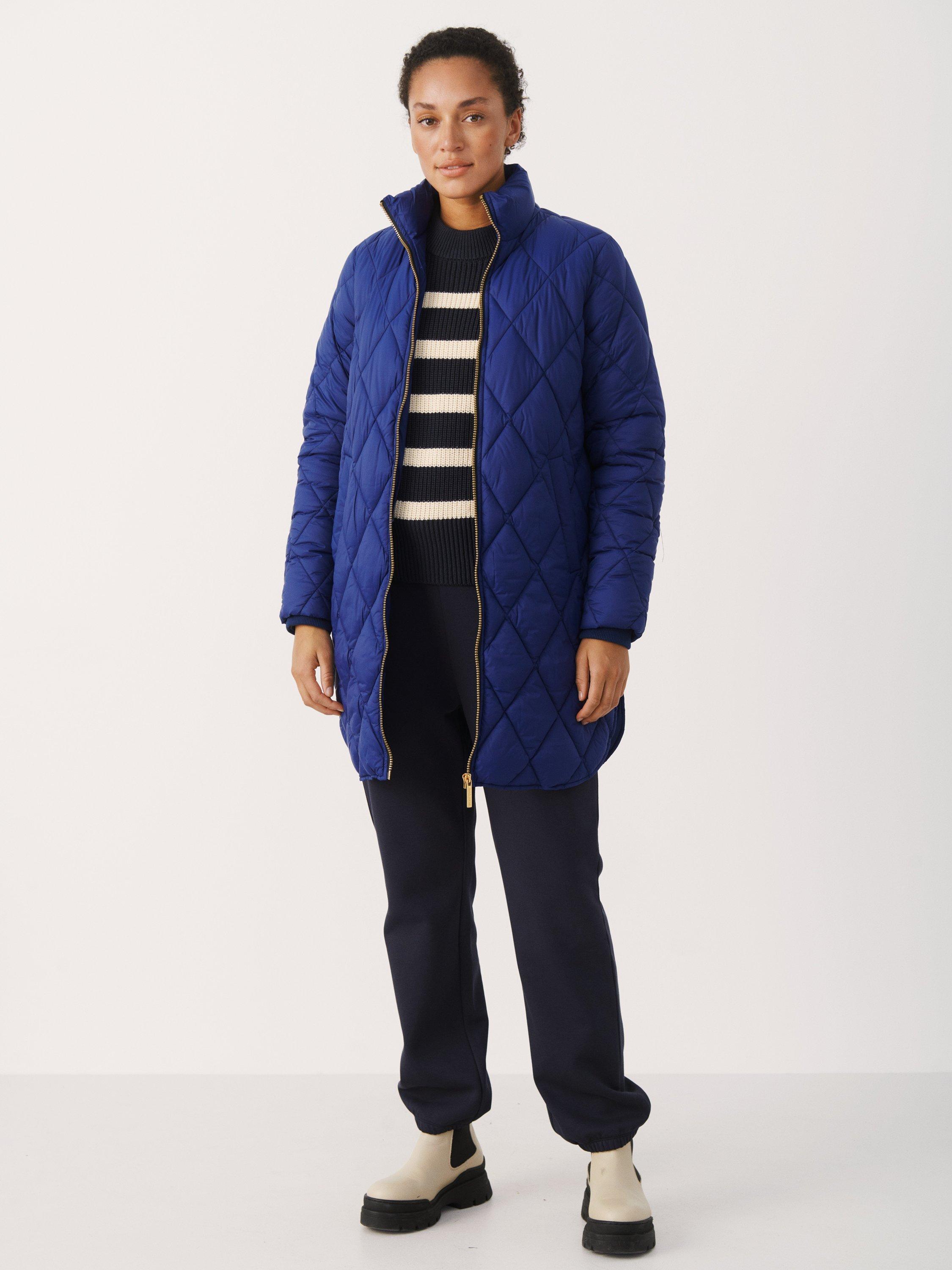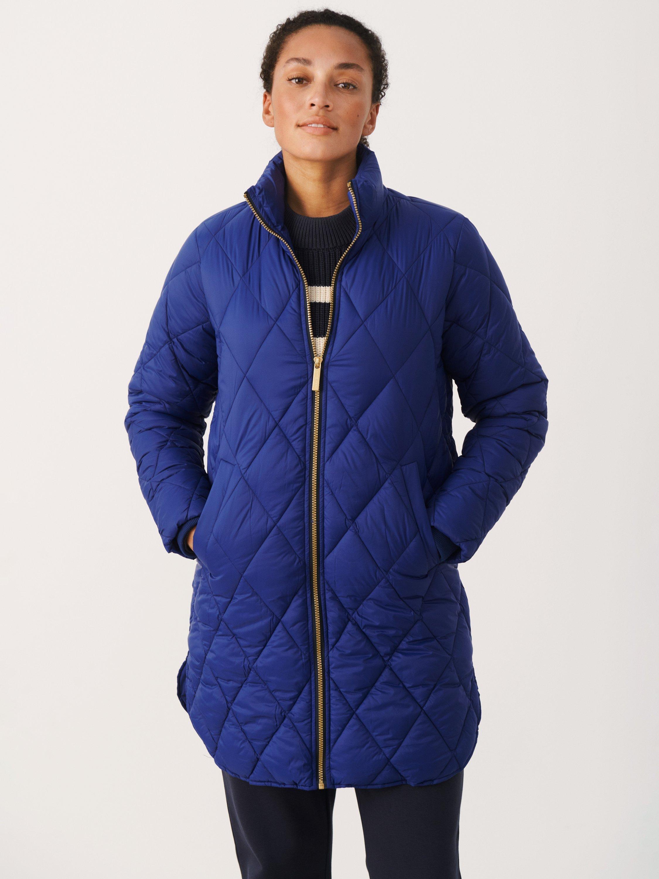 This Olilas quilted coat is the perfect blend of warmth and style. The diamond stitching adds texture, while the high collar and full-length zip provide extra protection against chilly days. Its long silhouette makes it ideal for layering over sweaters or dresses, offering a chic and cosy look for your everyday wardrobe.