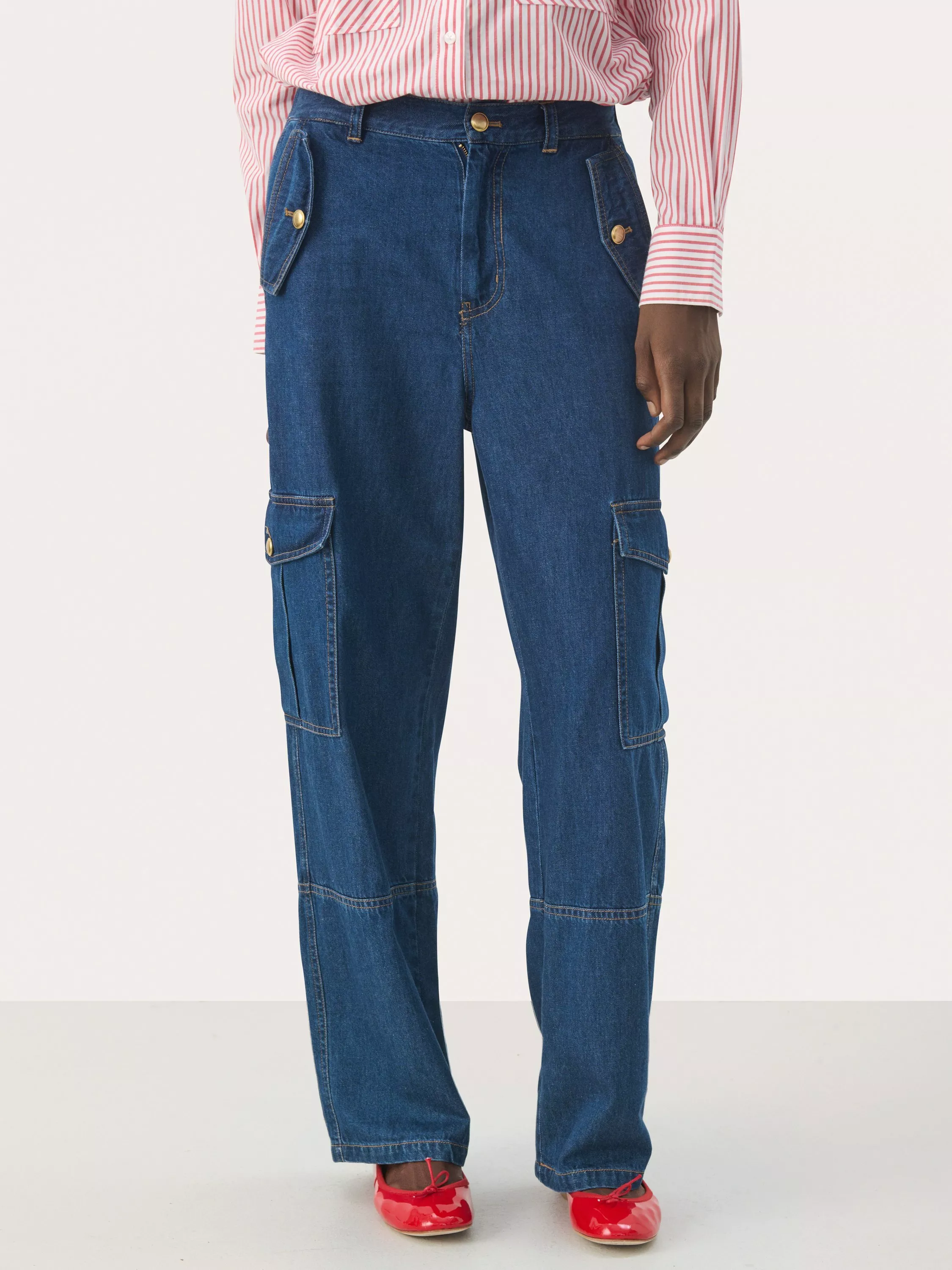 These Petruska wide-leg denim trousers offer a modern twist on a classic design. Featuring utility-inspired pockets and a relaxed fit, they combine comfort with contemporary style. The deep wash makes them versatile for casual wear or dressing up with a sleek blouse and heels for a more polished look.