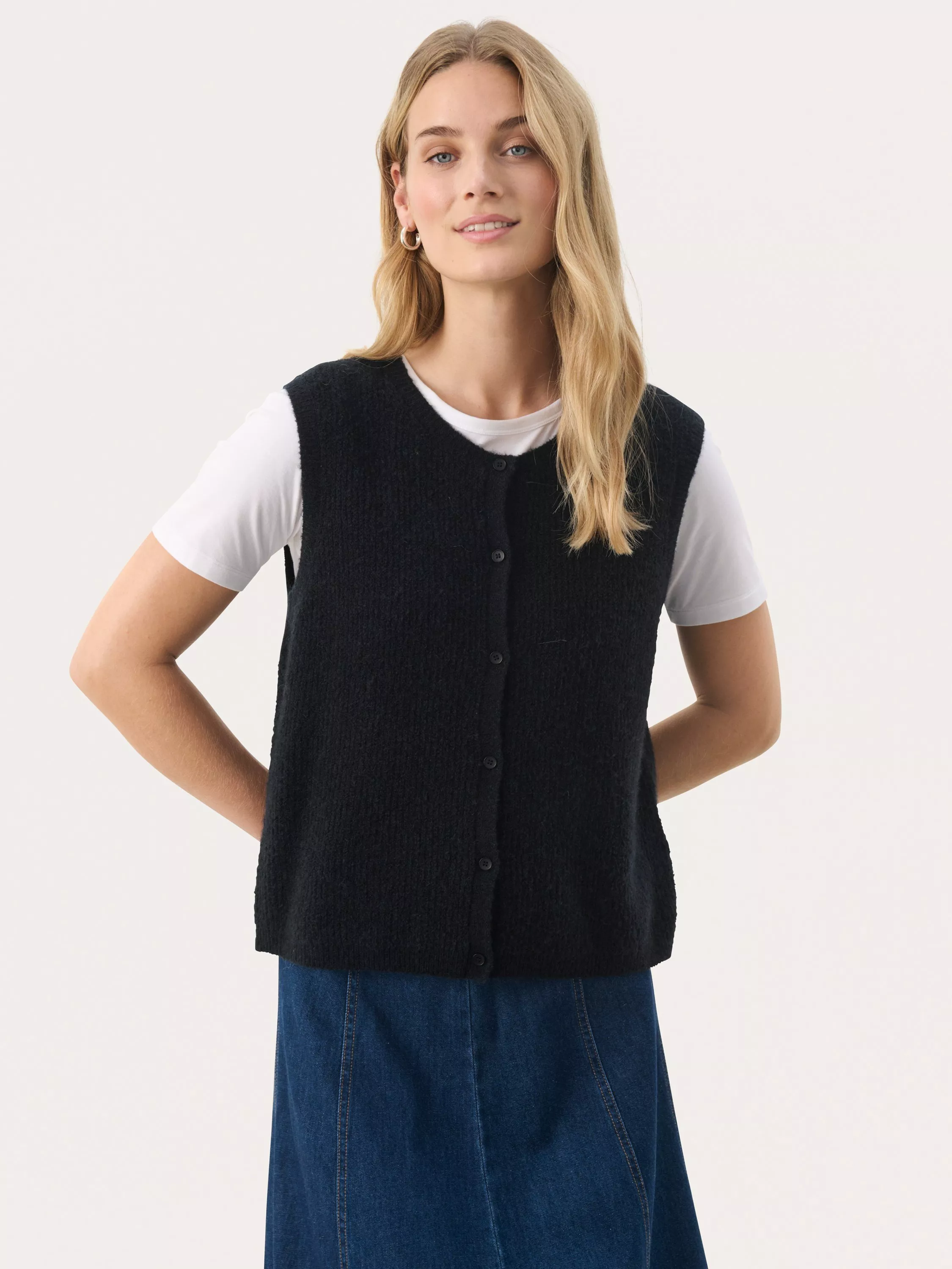 This Pimira sleeveless knit top offers a relaxed and soft feel, perfect for layering during cooler days. Made from a high-quality fabric blend, its tone makes it easy to pair with jeans, skirts, or trousers. A versatile piece for year-round styling.