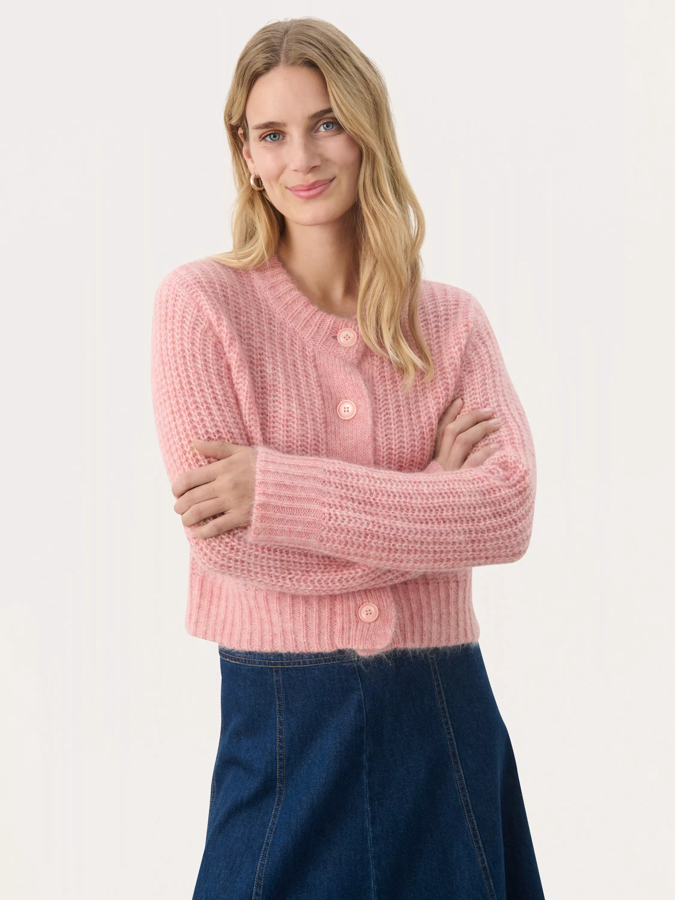 This Pirette cardigan is a cosy essential, featuring a textured knit and button-down front. The cropped length adds a modern touch to its classic design, making it perfect for layering over dresses or pairing with high-waisted trousers. Ideal for staying warm while maintaining a chic, refined look.