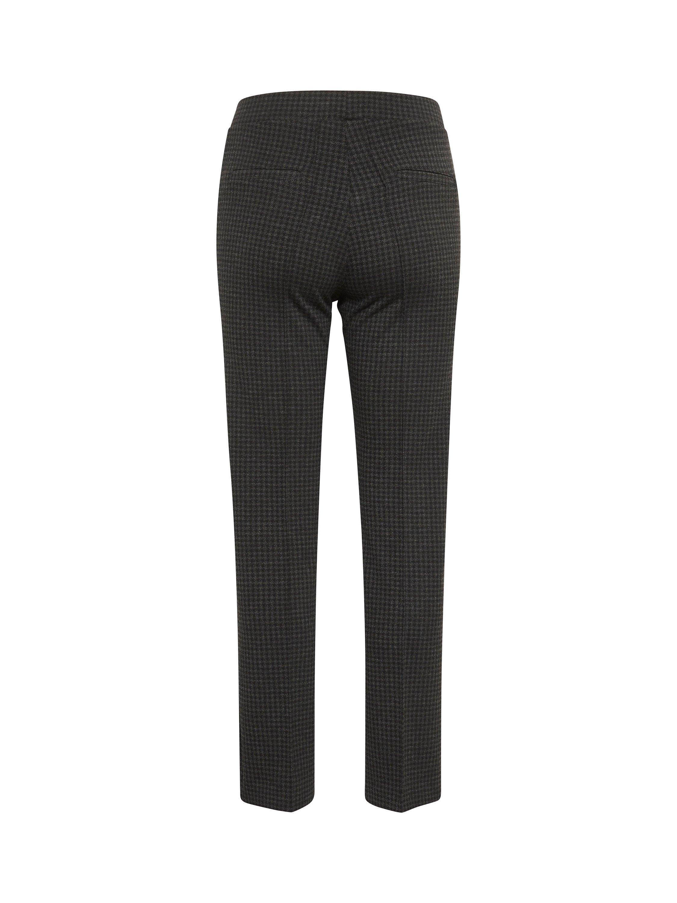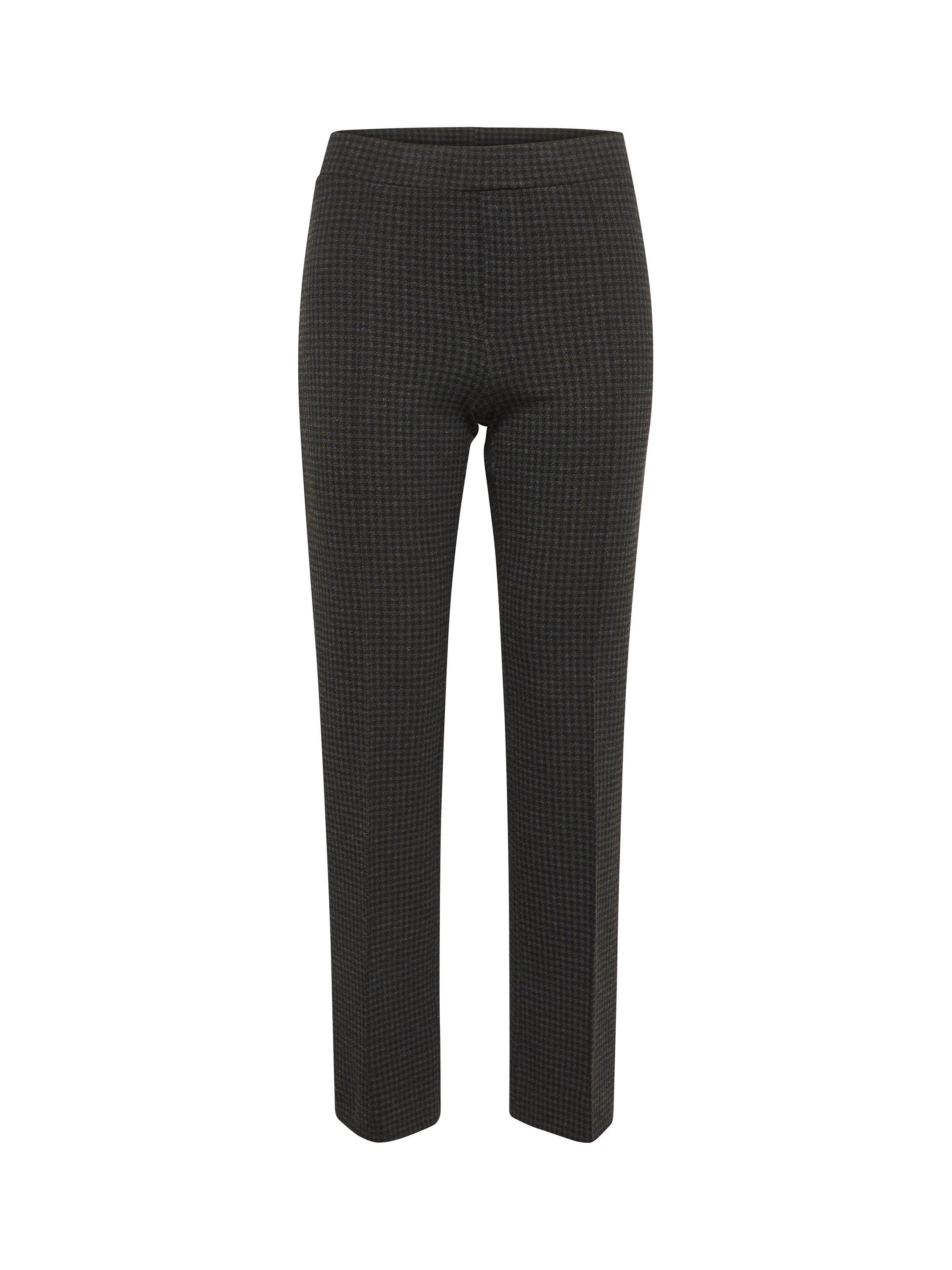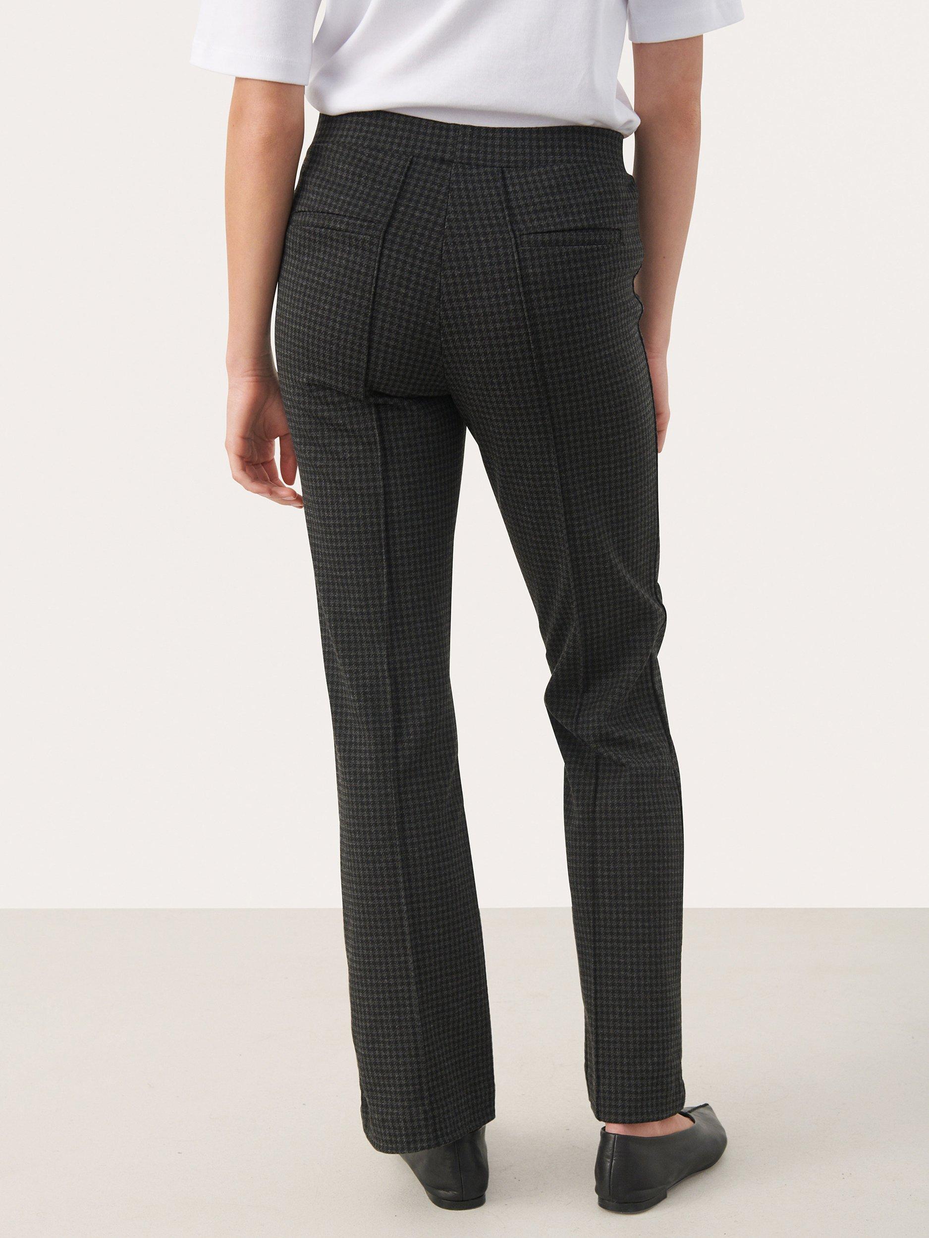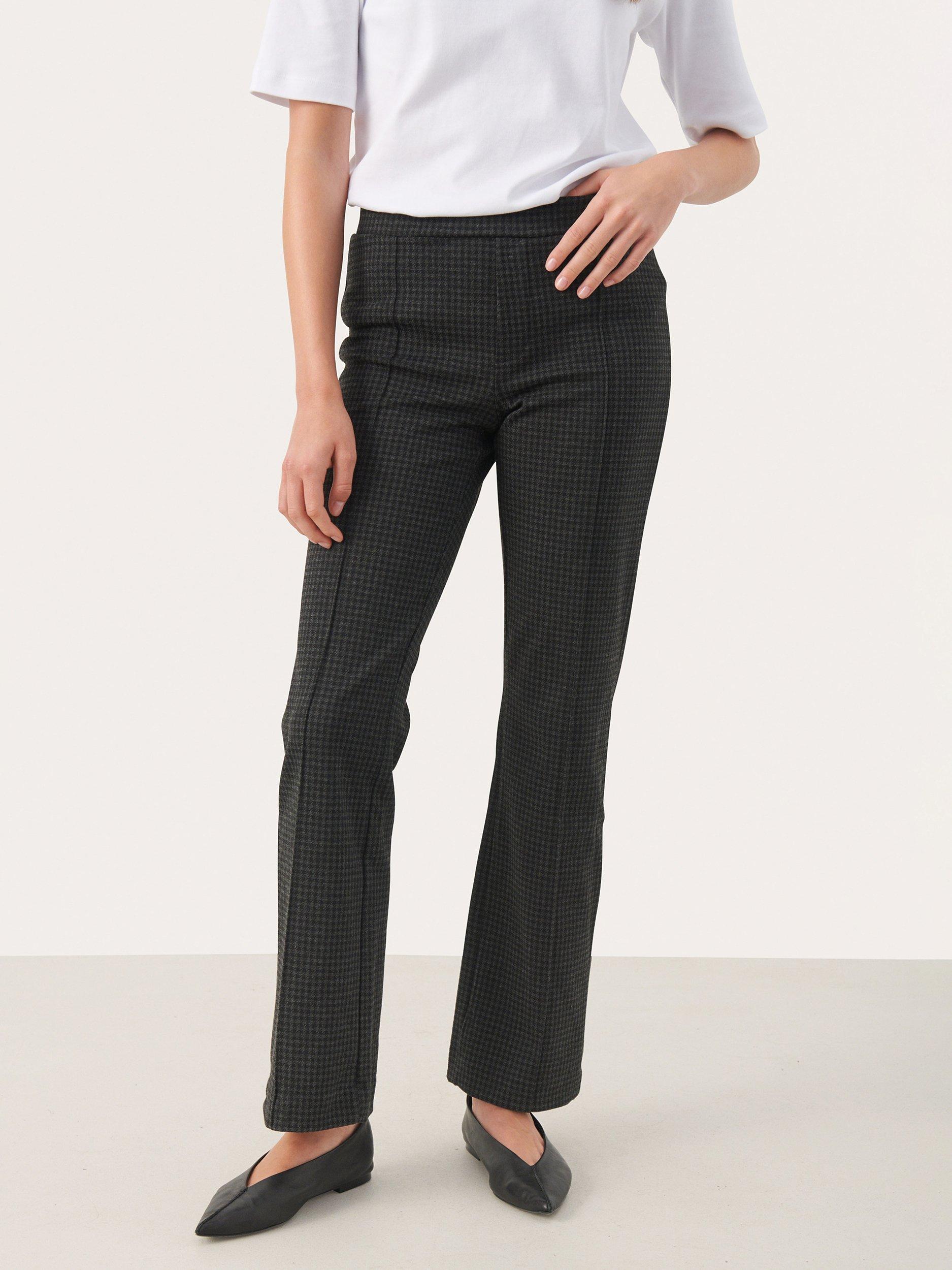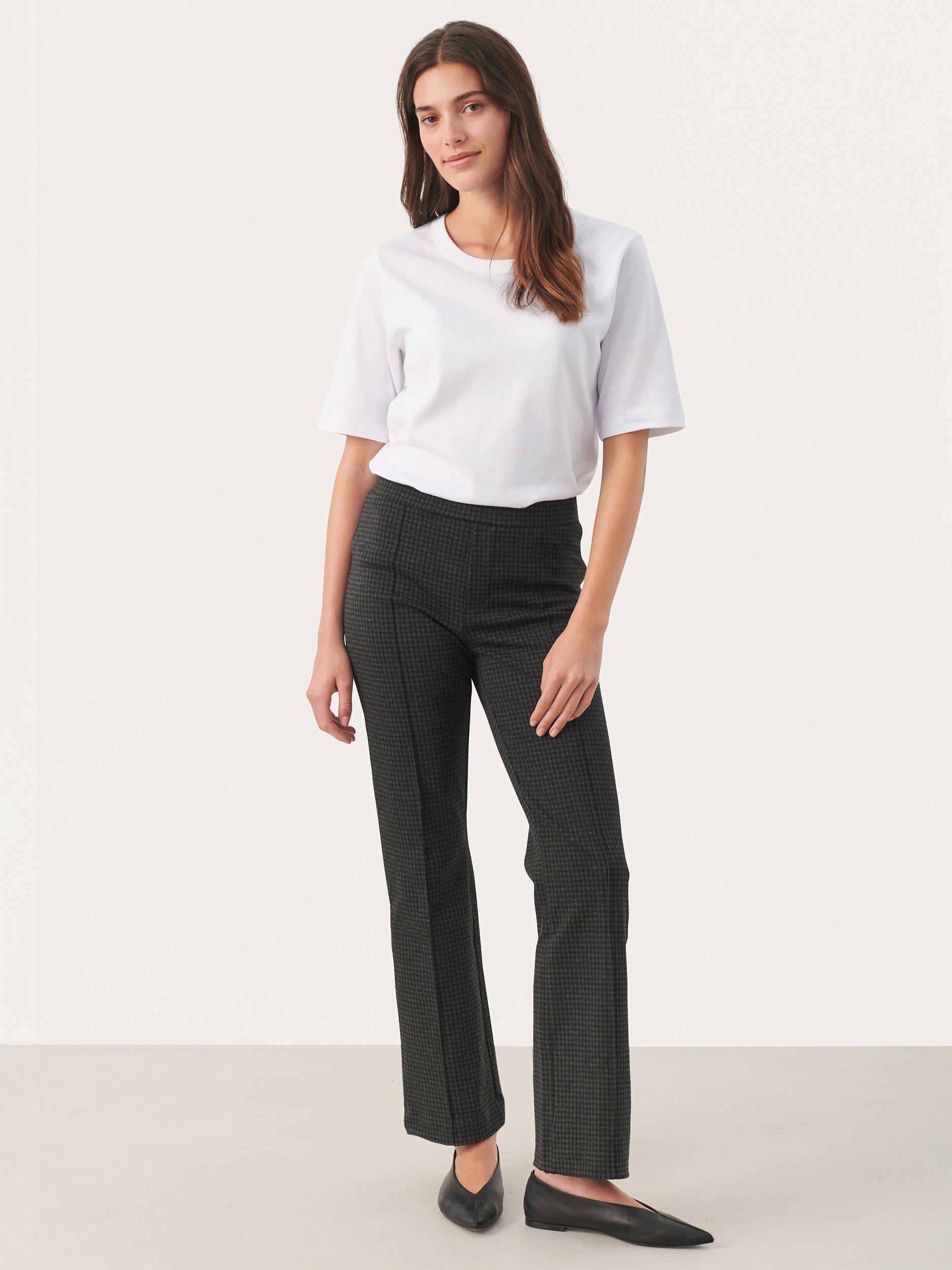 The Pontas trousers are a cool pair of trousers in a checked fabric. They are ankle length and have a slim fit with flared legs. The trousers are high-waisted with an elasticated straight waistband. At the back they have jetted pockets.