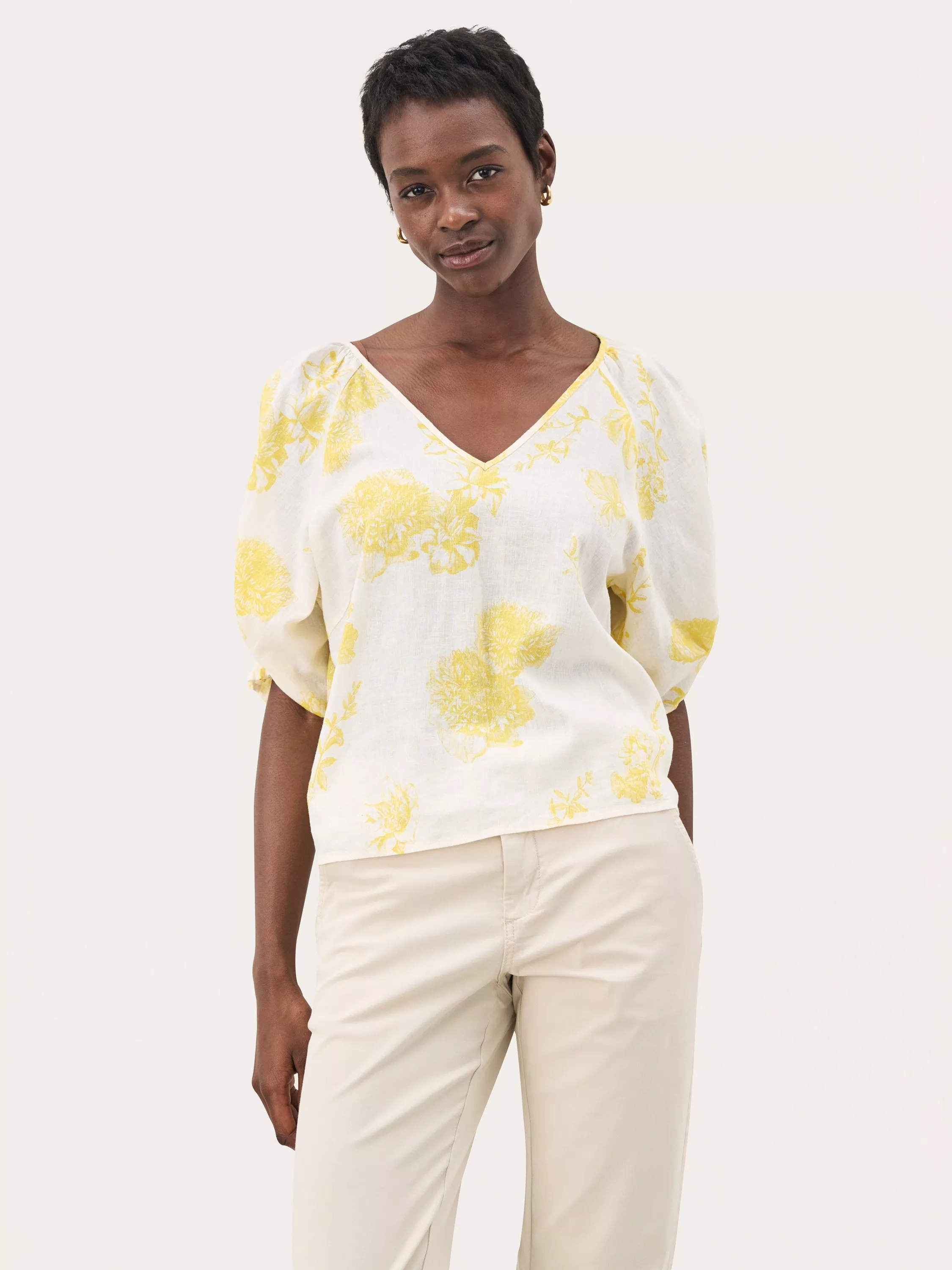 This Rosalyn blouse with a airy three-quarter-length sleeves exudes summer elegance. The loose fit and V-neckline with a tie detail at the back make it both comfortable and stylish, perfect for everyday wear or casual occasions.