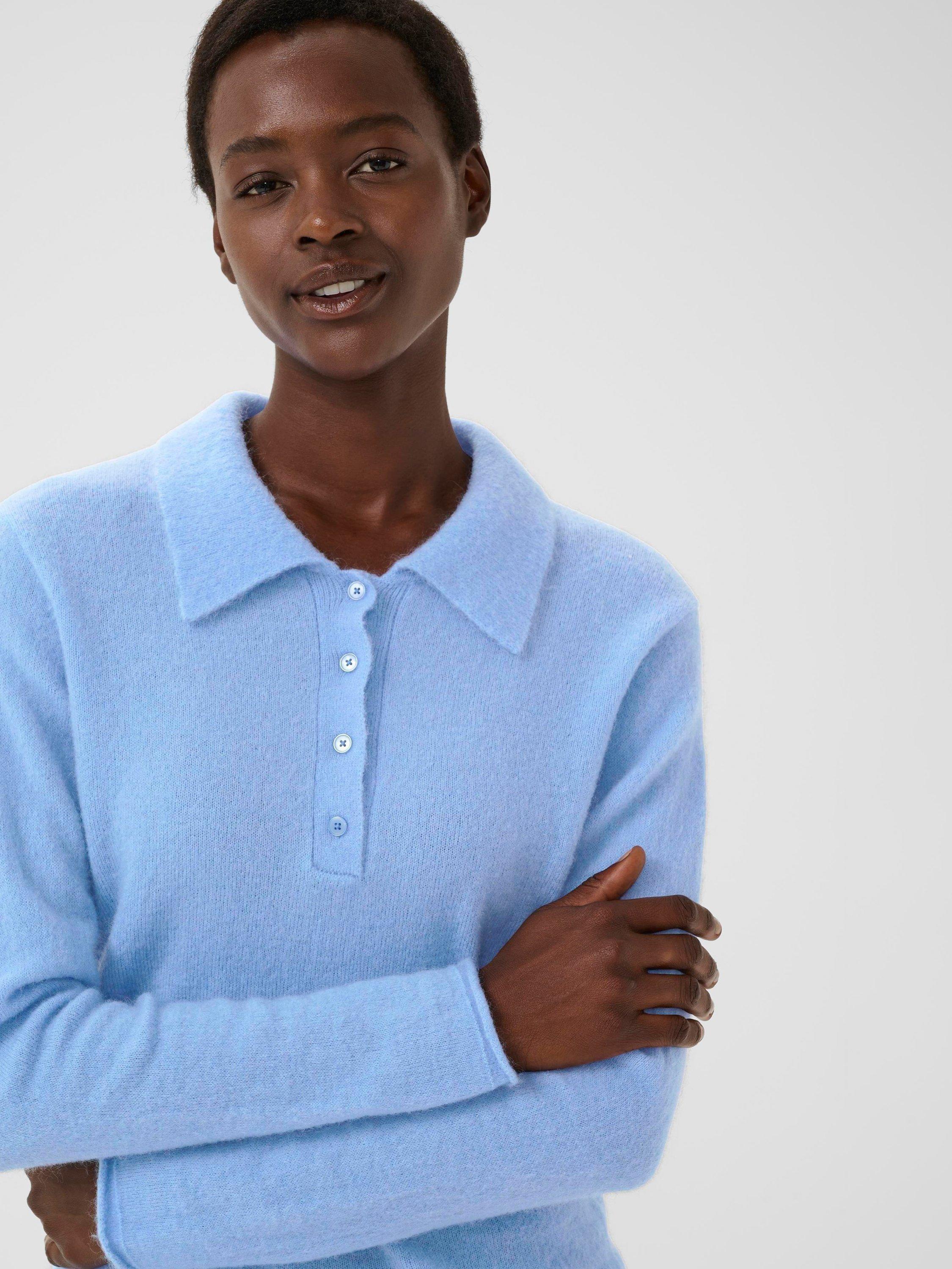 This knitted polo top from Part Two is woven from a premium wool mix, framed with a button-up collar neckline and long sleeves.