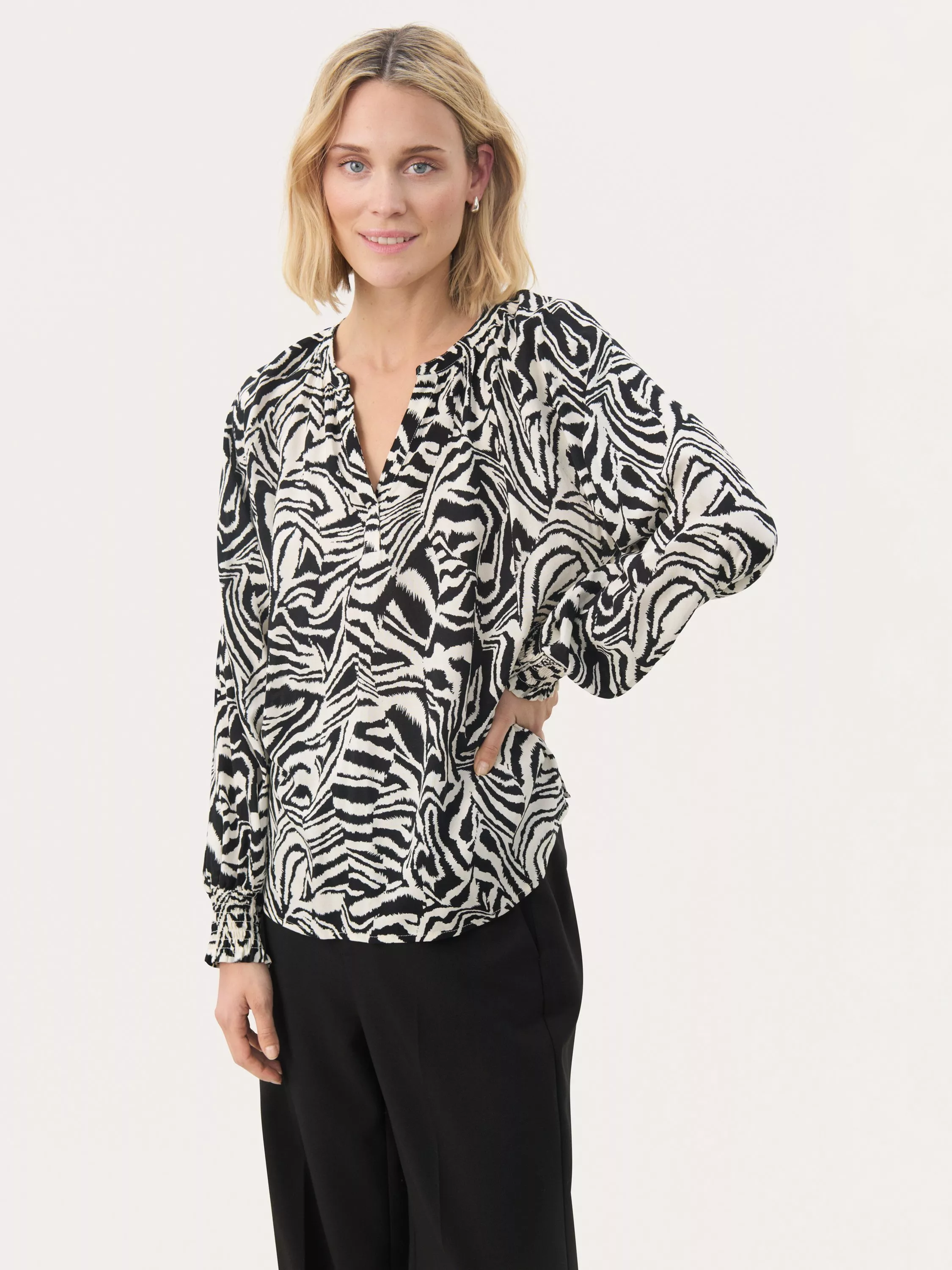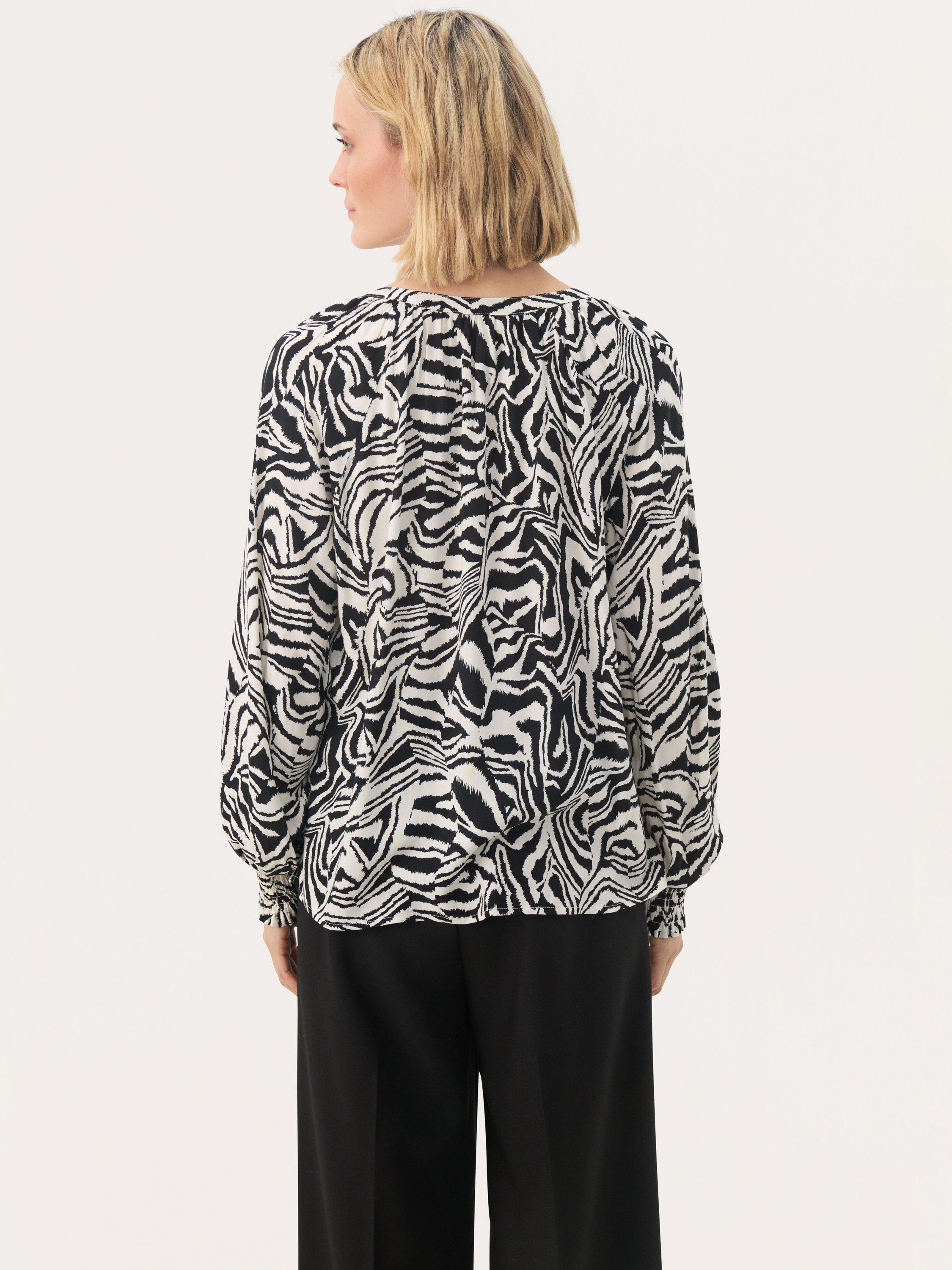 Elevate your style with the Tennie Blouse, featuring a striking animal print and relaxed fit for ultimate elegance and comfort.