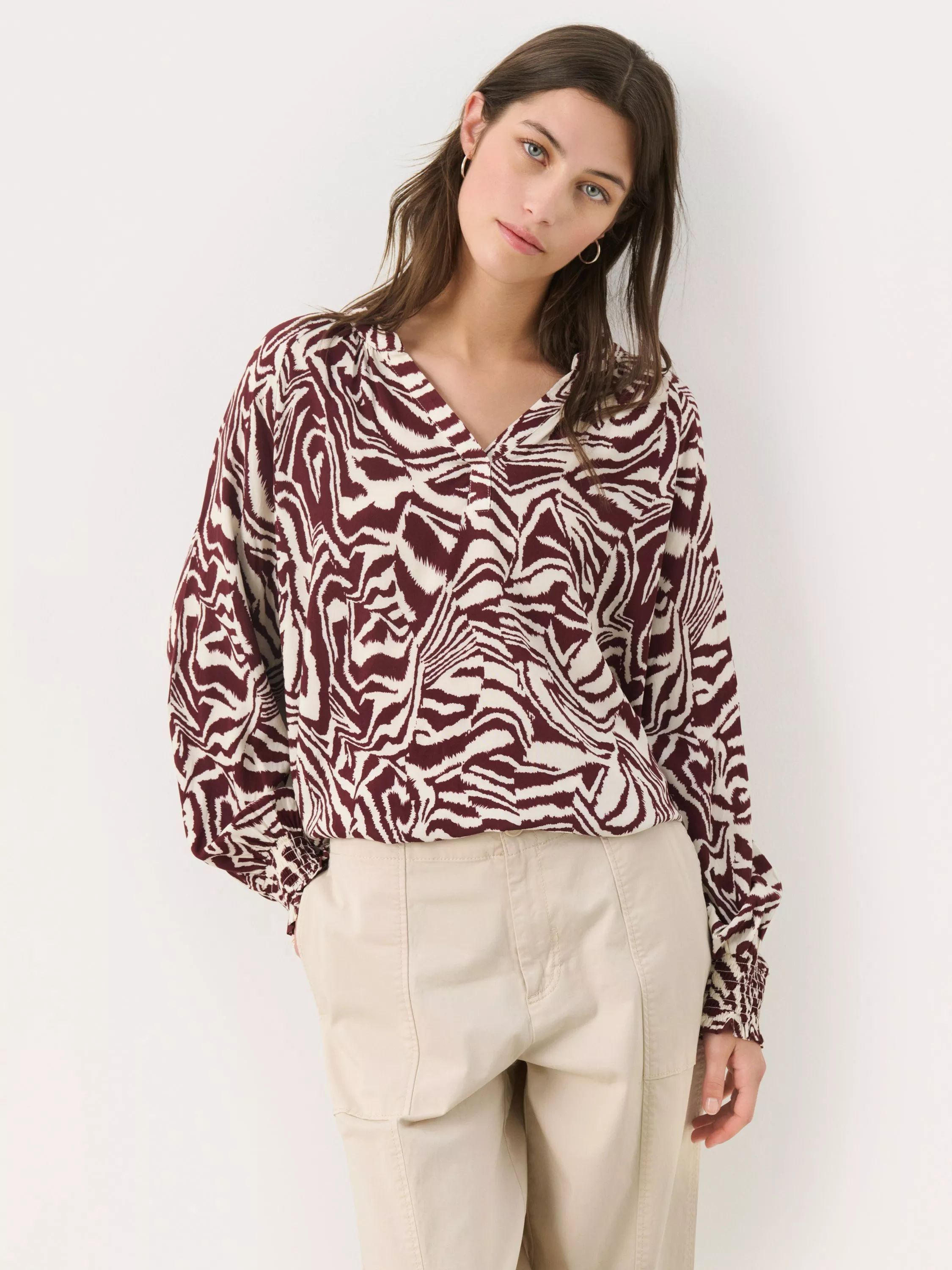 Elevate your style with the Tennie Blouse, featuring a striking animal print and relaxed fit for ultimate elegance and comfort.