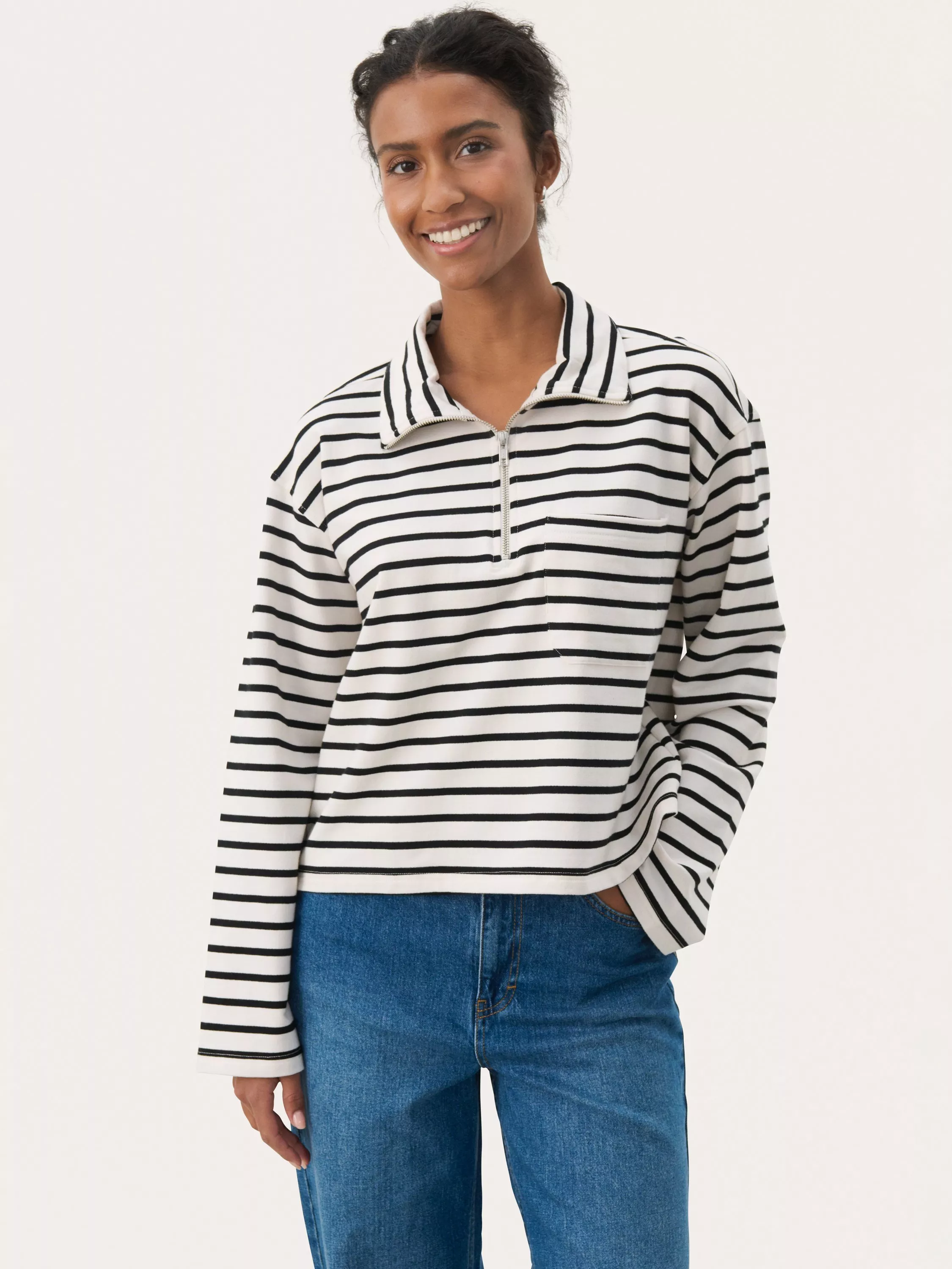 Embrace comfort and style in this versatile black stripe sweatshirt, perfect for casual outings and cosy evenings.