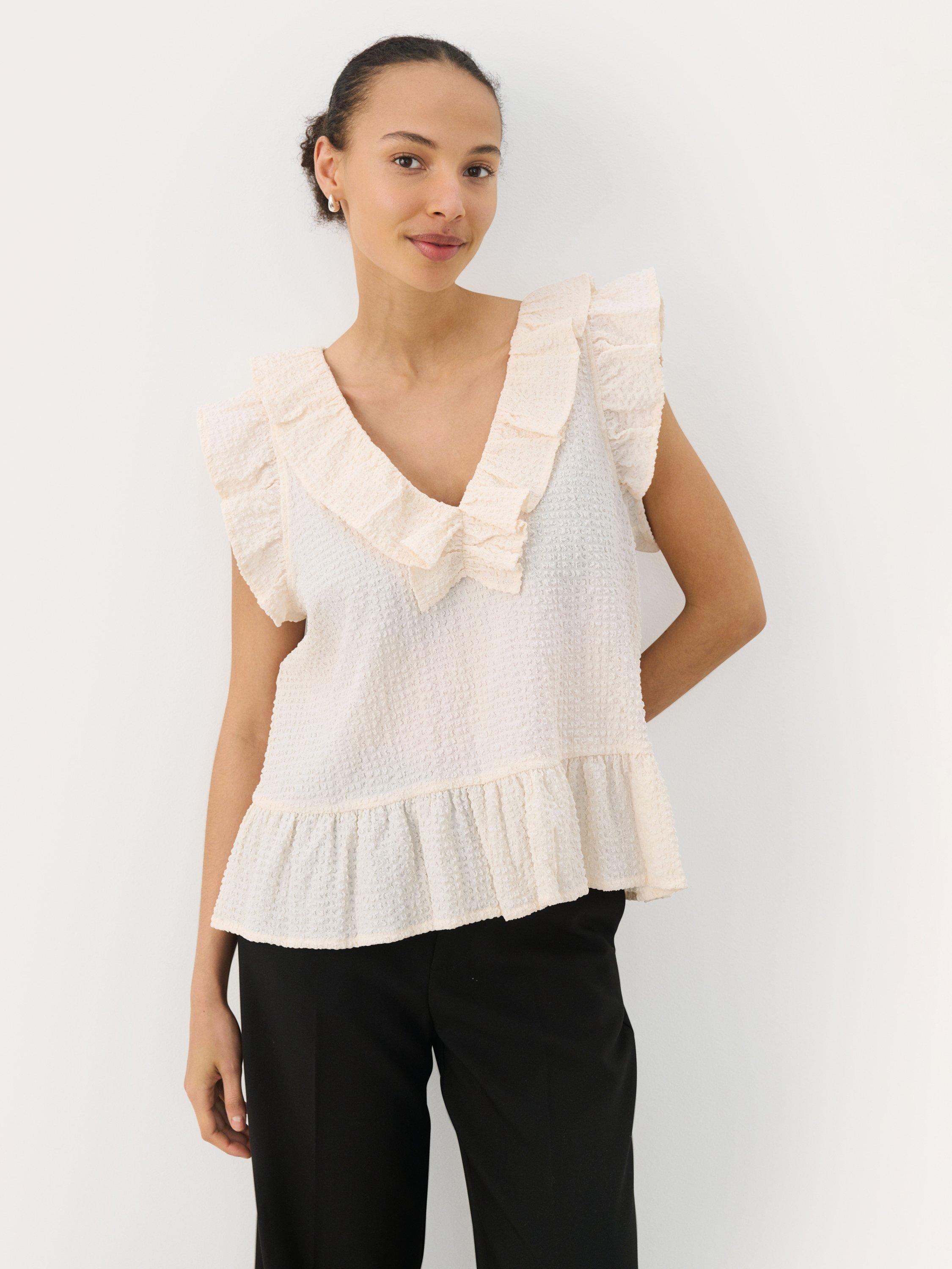 Elevate your wardrobe with the Troja Top featuring a delicate V Neckline and Regular fit. Perfect for casual outings or a polished work look.