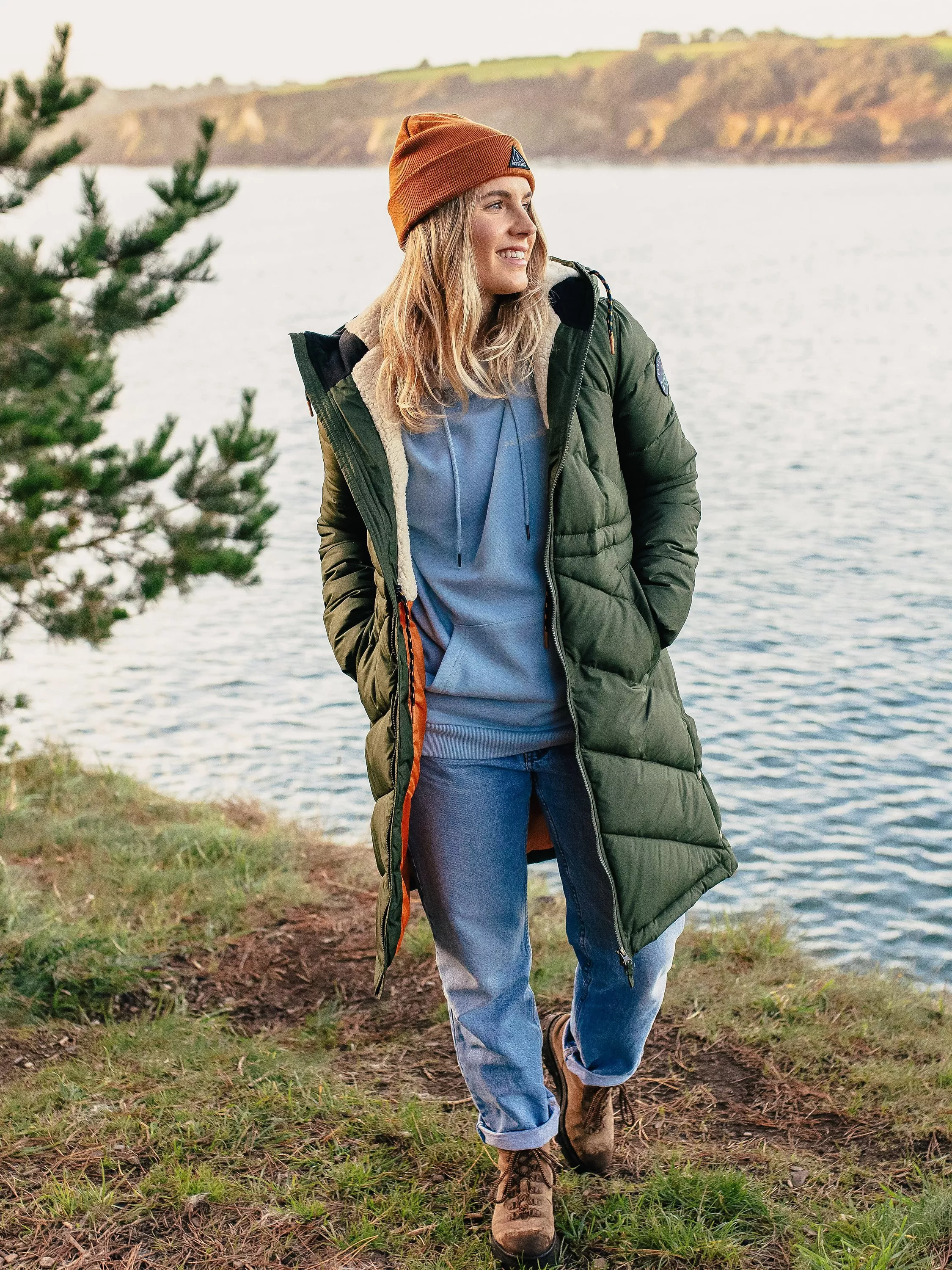 When you need to bring the heat The Kinsey Jacket has your back. It's half Sherpa lined, along with Recycled polyester insulation for ultimate winter warmth. The water repellant outer is made with 100% Recycled Polyester Ripstop and the knee length design ensures extra winter protection. When you're out in the cold, you'll always stay warm.