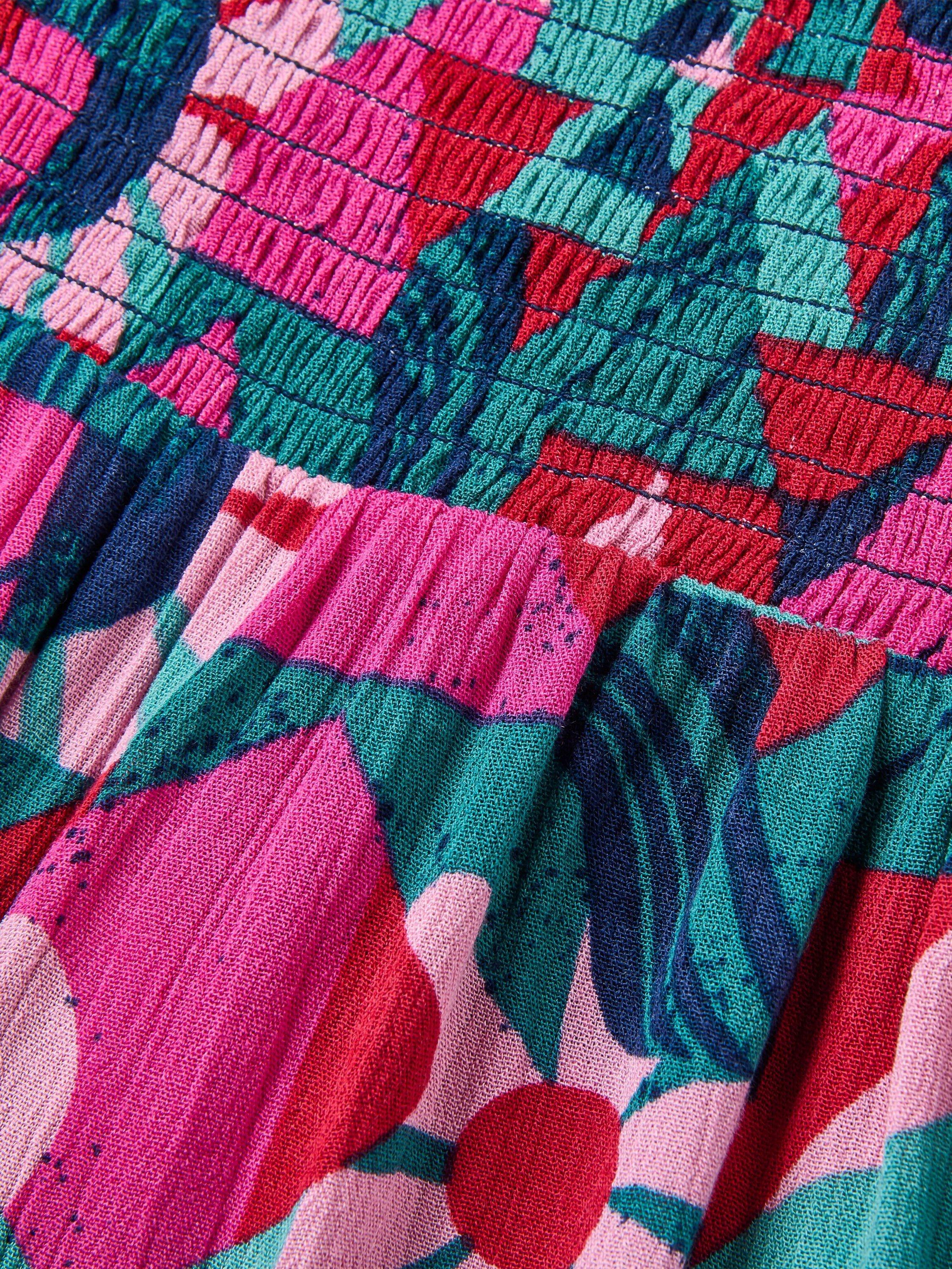 The Soleis Woven Cami features an in-house designed print on LENZING™ ECOVERO™ viscose. With an easy fit, adjustable button straps and an elasticated smocked top section, for ultimate comfort and style.