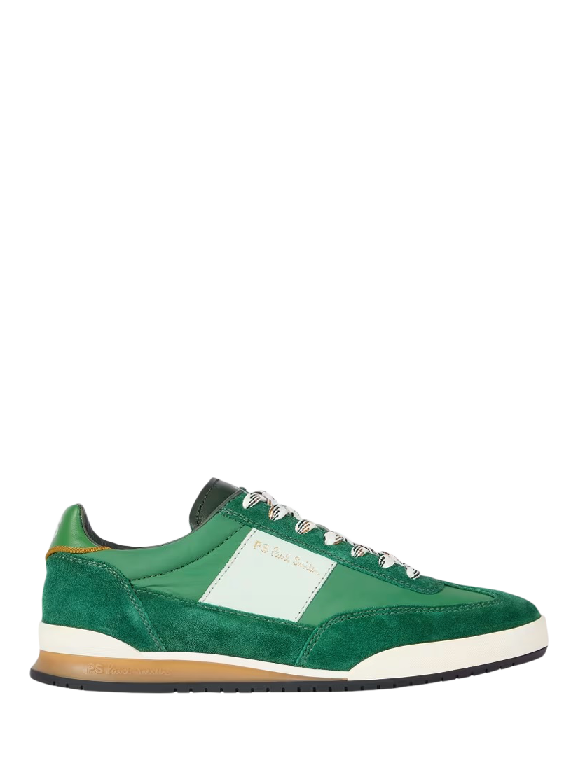 Made in Portugal from a mix of nylon and suede, these green 'Dover' trainers feature a classic design with white leather side stripe and embossed logo. Ideal for everyday wear, these trainers are finished with flecked laces.