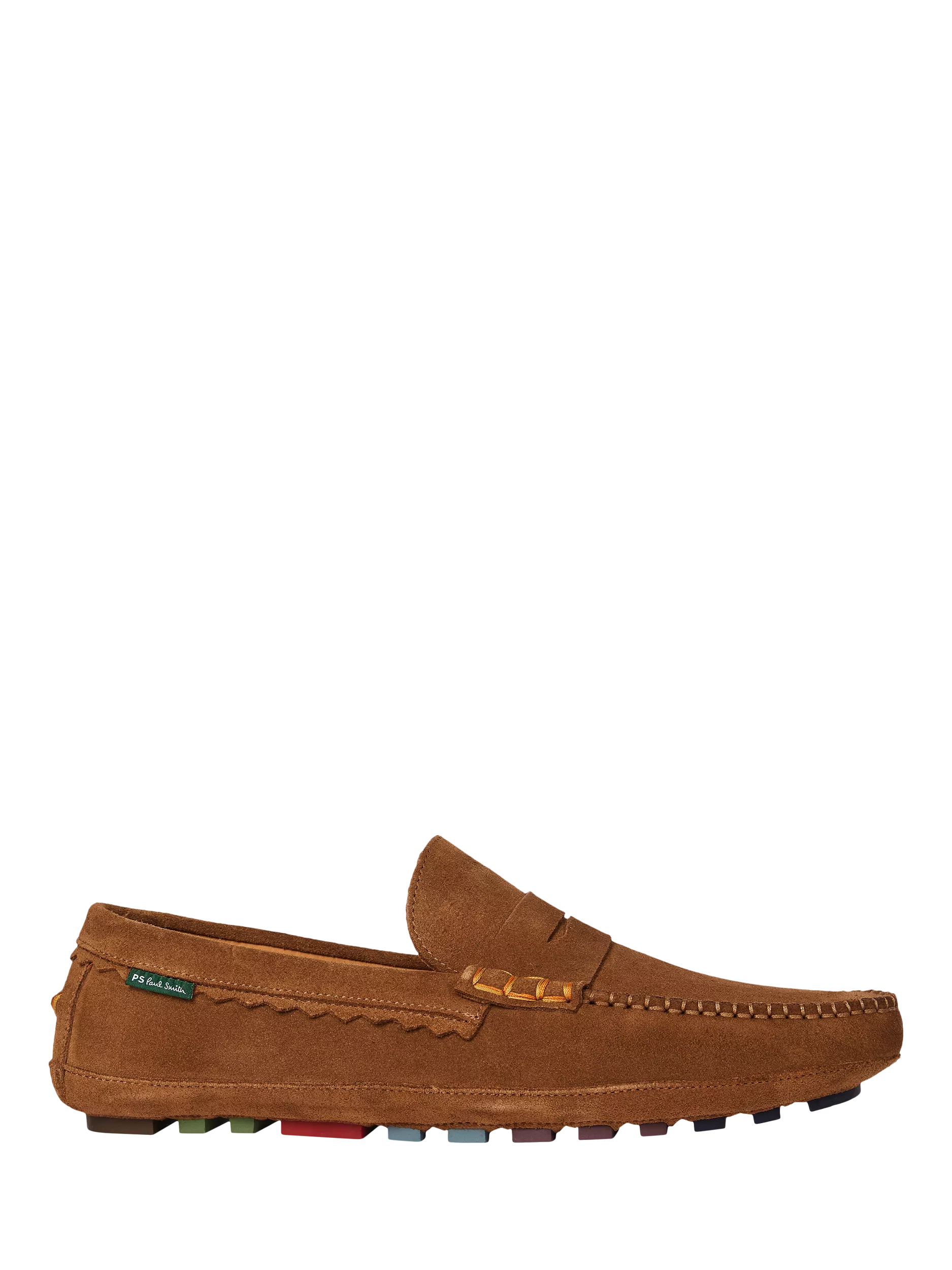 Slip-on loafers by Paul Smith, crafted from smooth leather and set on sturdy rubber soles. The almond toe adds a refined touch, making them ideal for everyday wear and effortless style.