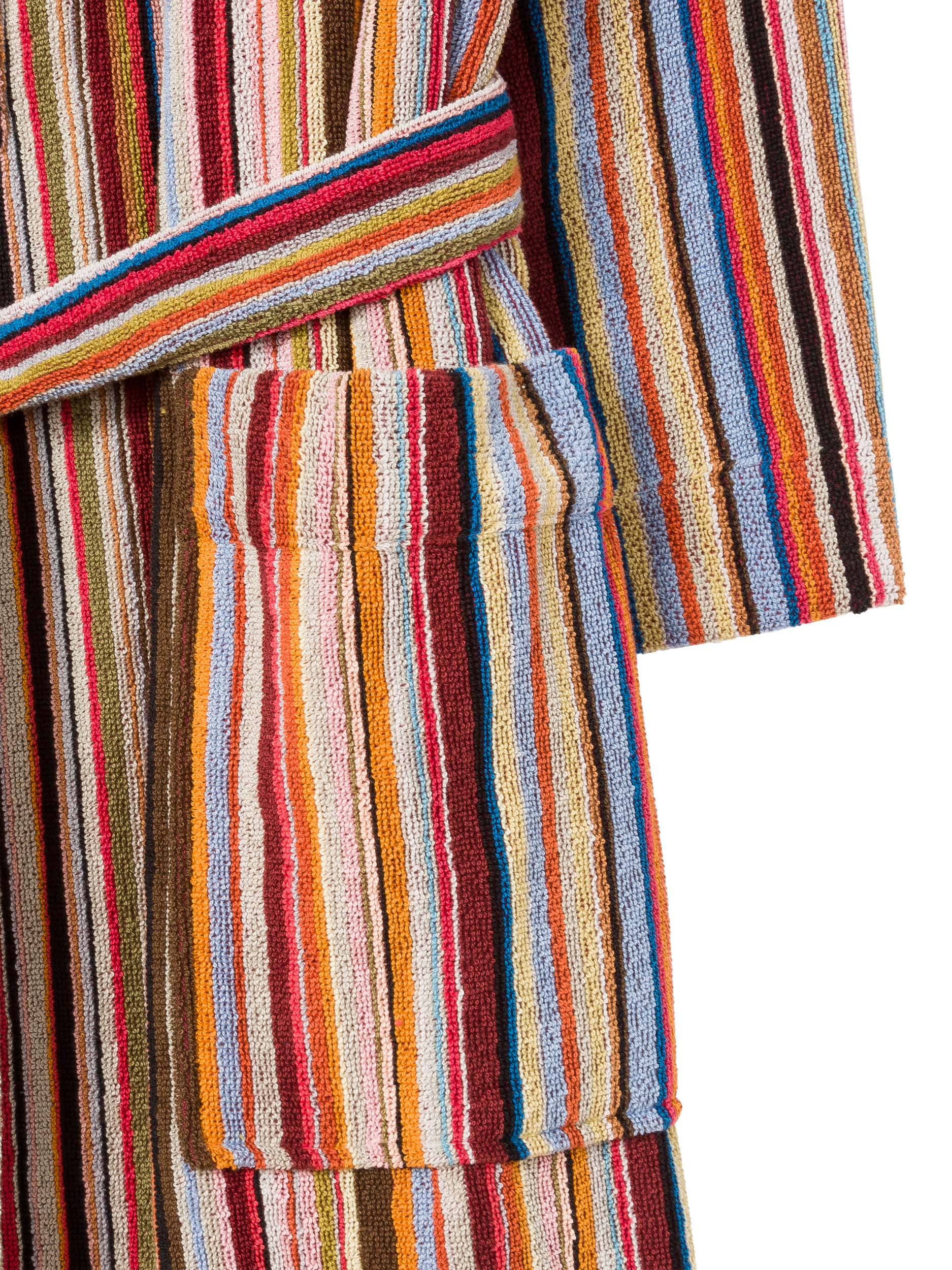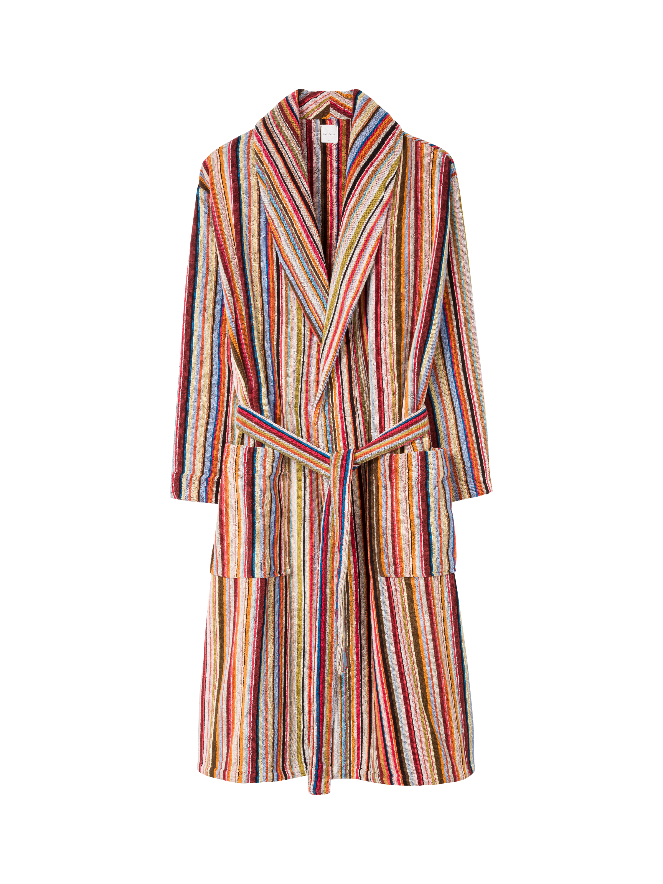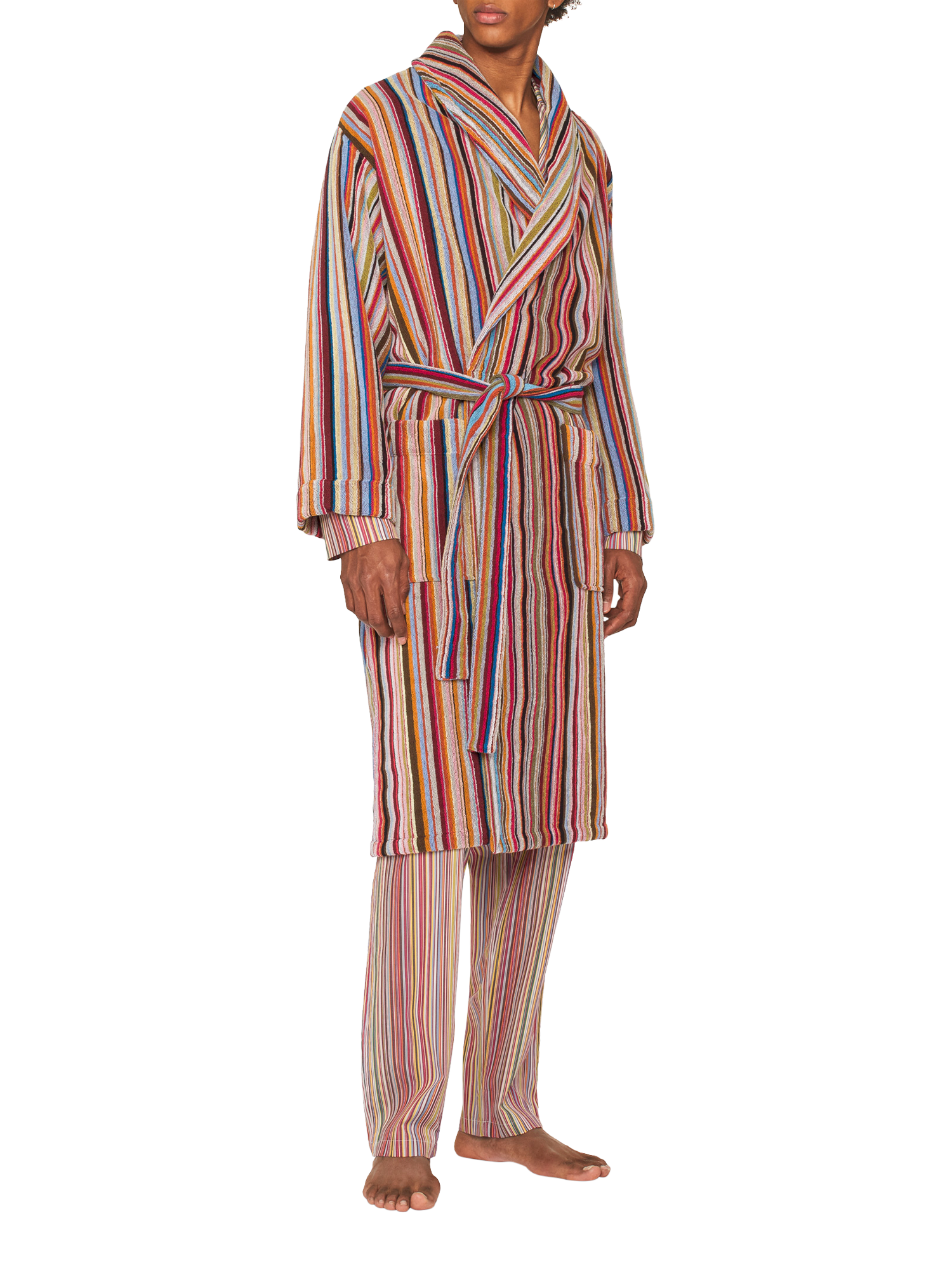 Cut a handsome dash, even when lounging at home. This endlessly comfortable robe from Paul Smith is crafted from pure cotton for a soft, luxurious feel, and boasts the brand's signature striped design. It's finished with a tie waist-band, and generous pockets.