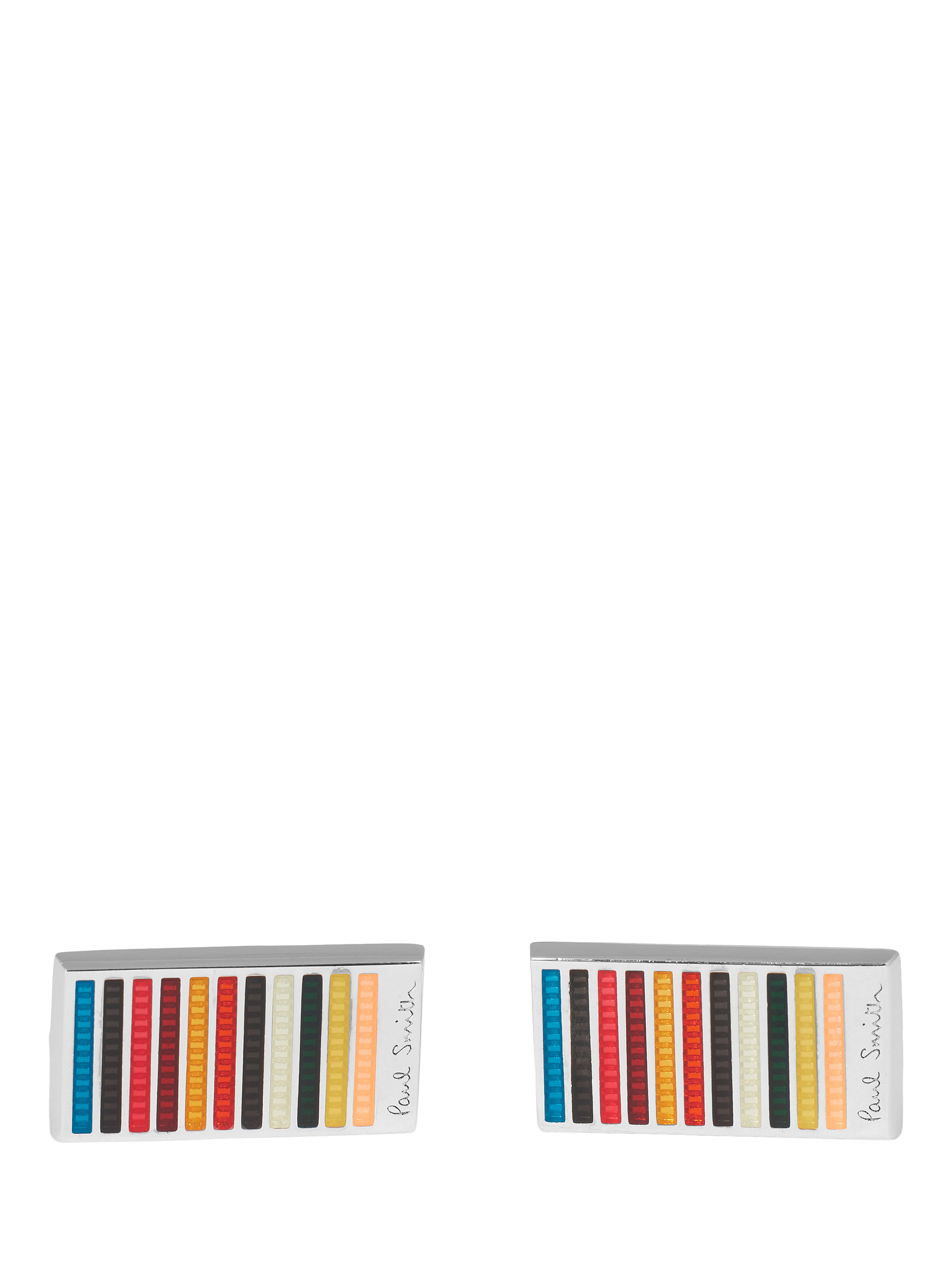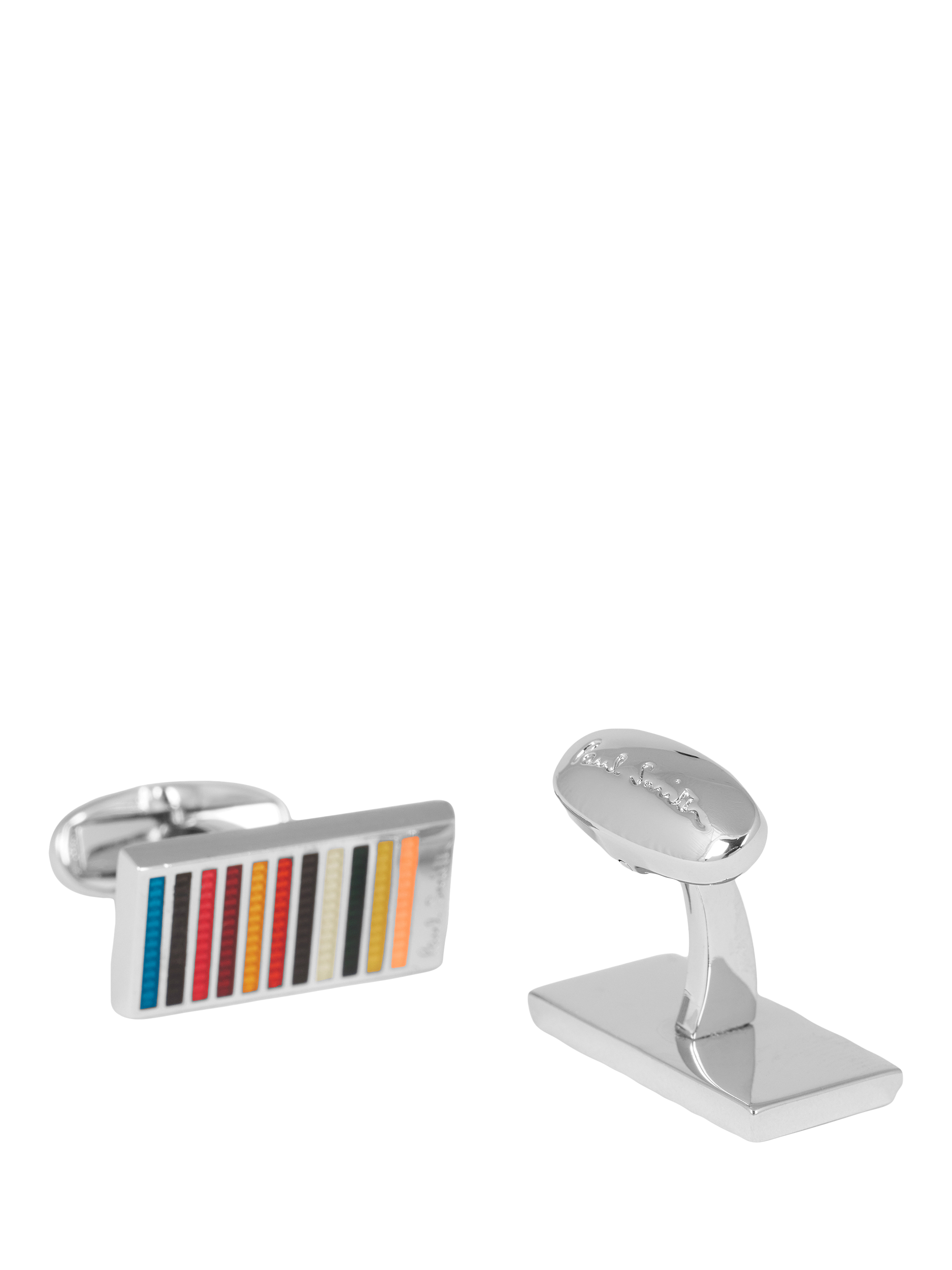 Add the finishing touch to your outfit with these cufflinks. Complete with a polished silver finish, Paul Smith signature embossed T-bar fastenings, and are presented in a black gift box.