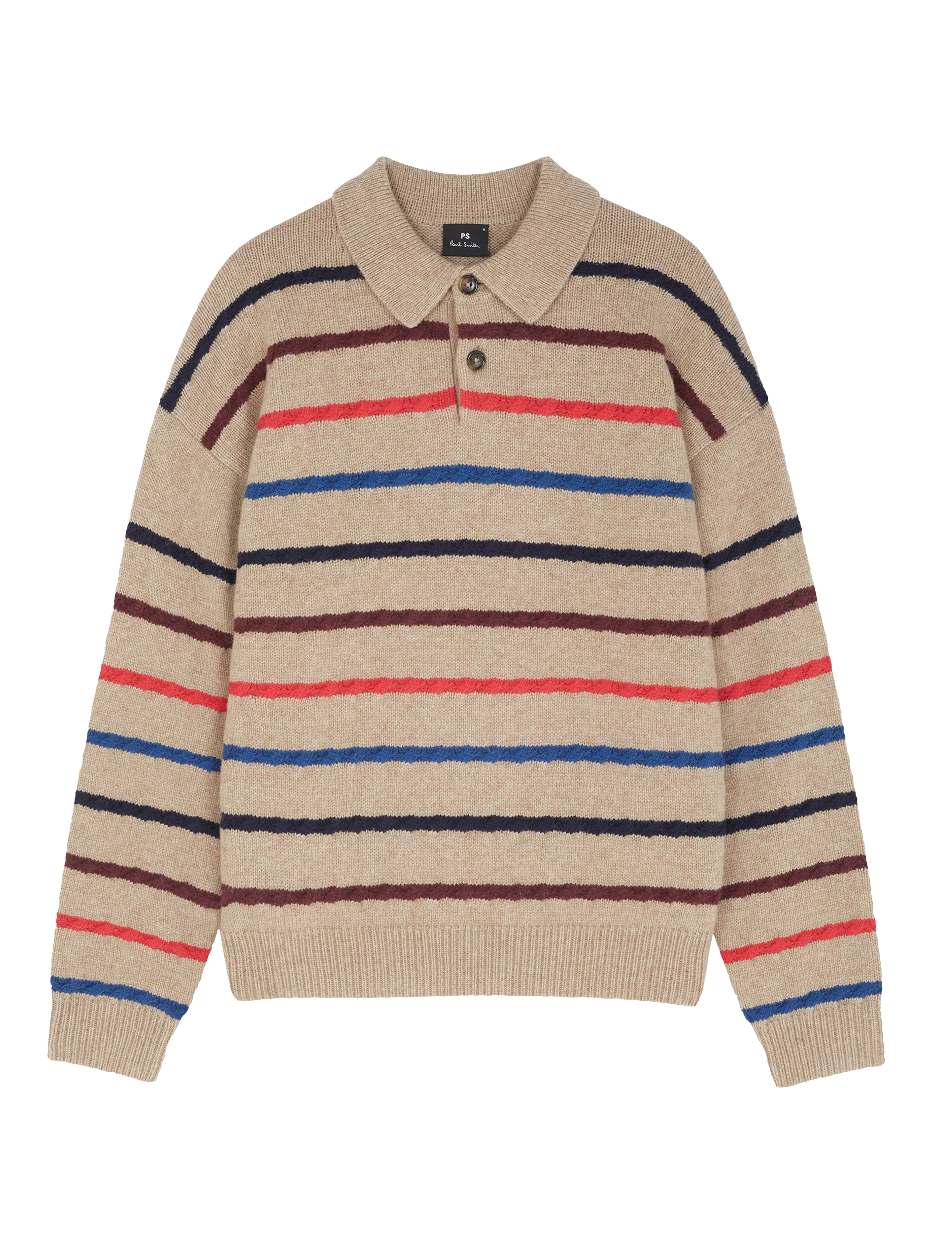 A striped wool blend polo jumper from Paul Smith offering warmth and comfort with a sharp collar and regular fit.