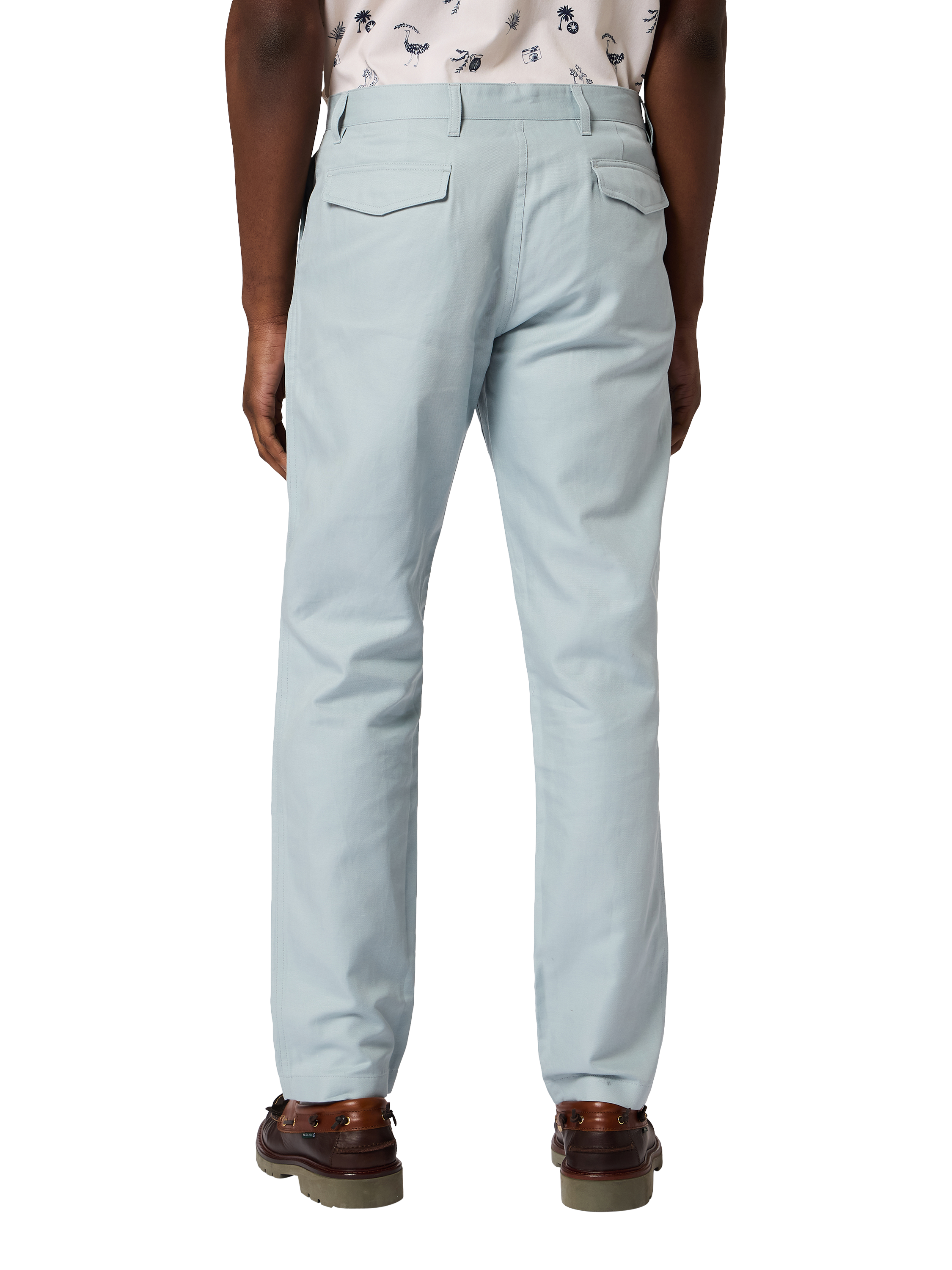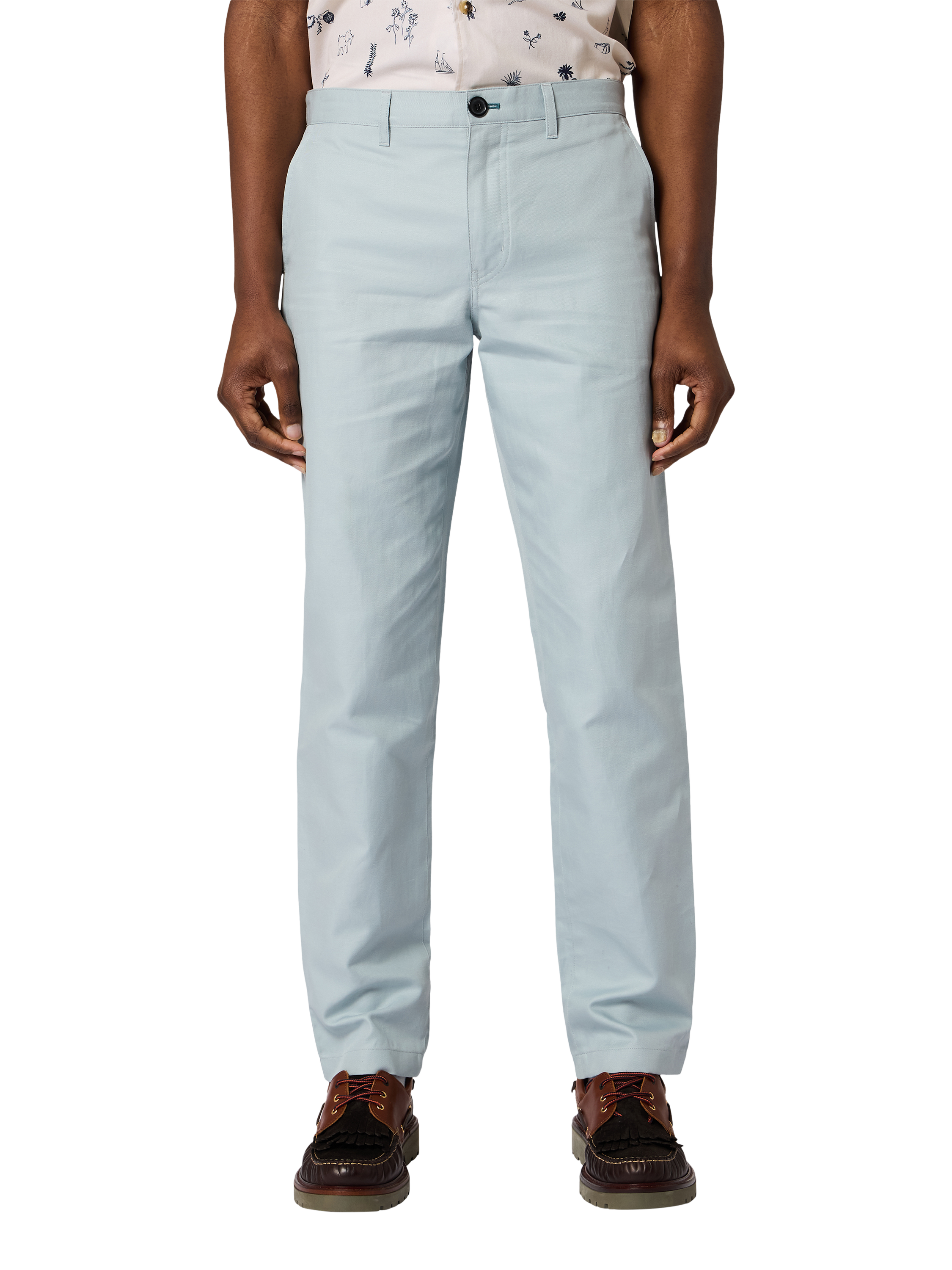Straight leg chinos by Paul Smith in a breathable cotton and linen blend. They offer everyday comfort and versatility, letting you move easily from a coffee catch-up to an unexpected new adventure.
