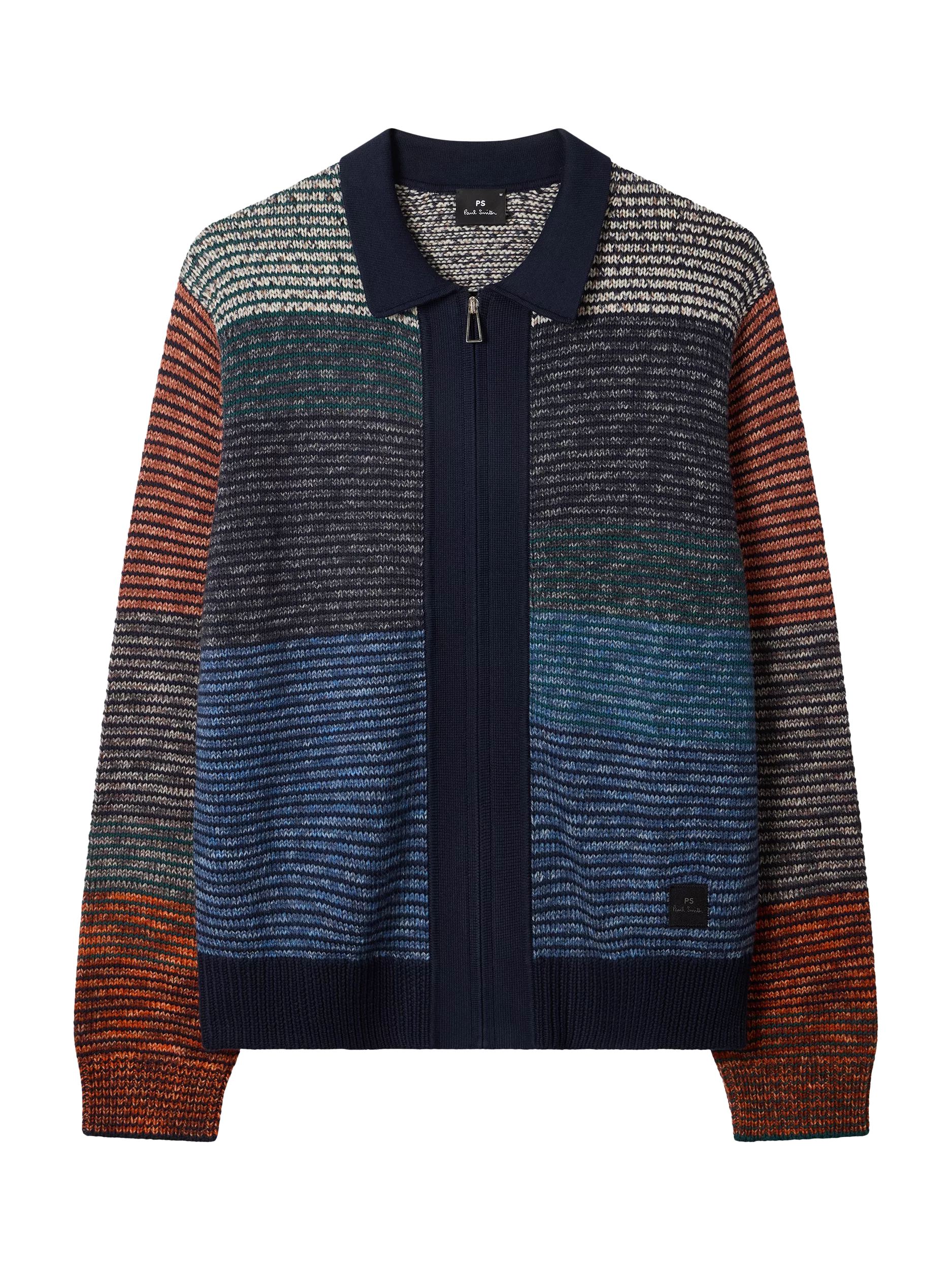 This fine wool blend cardigan keeps you comfortable through every day, with a regular fit and colour block design that adds interest to your look. The smart collar and long sleeves offer versatility.