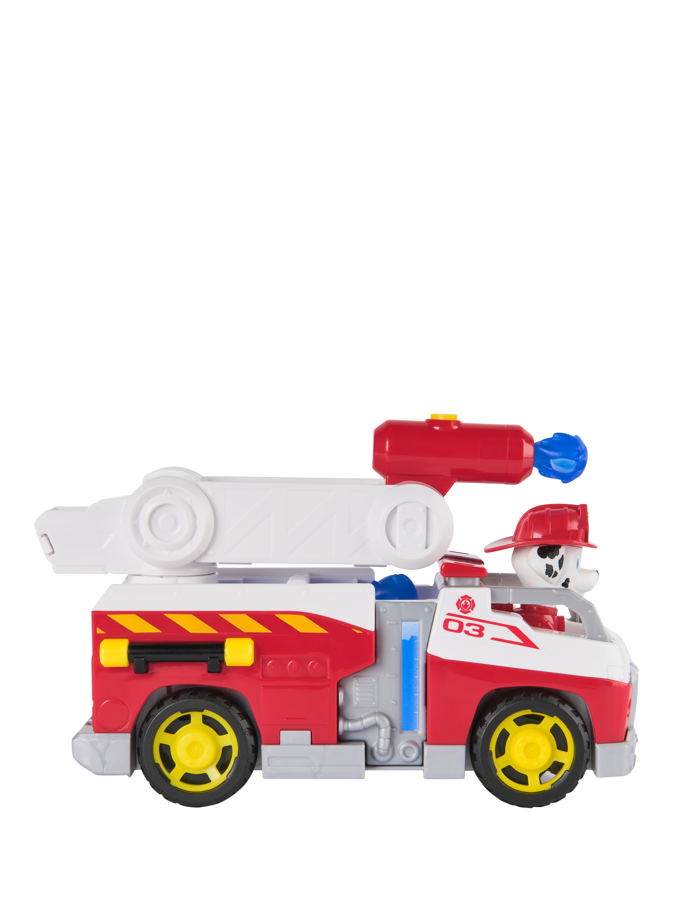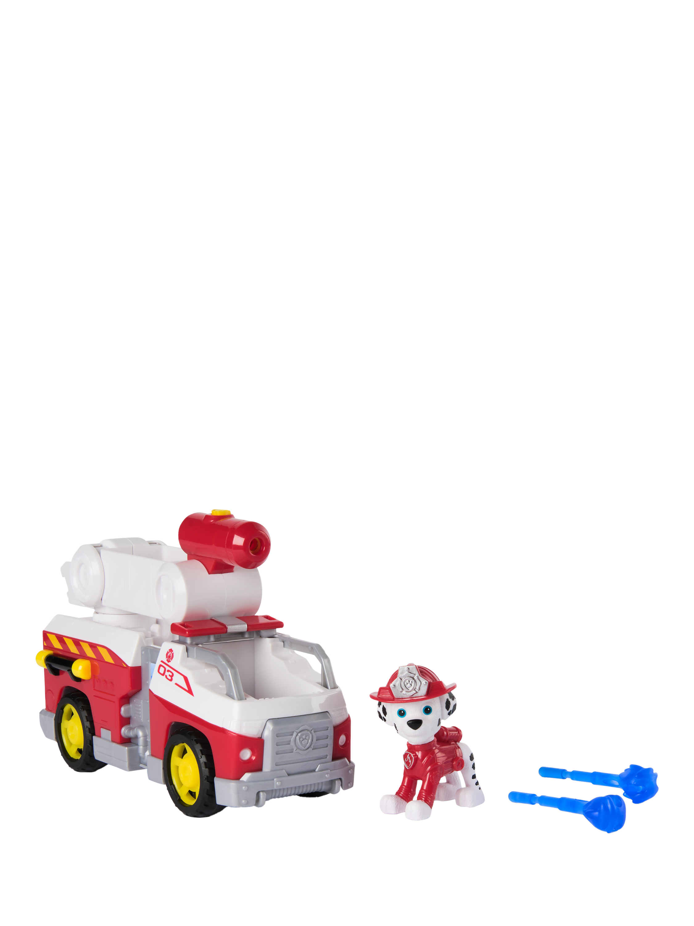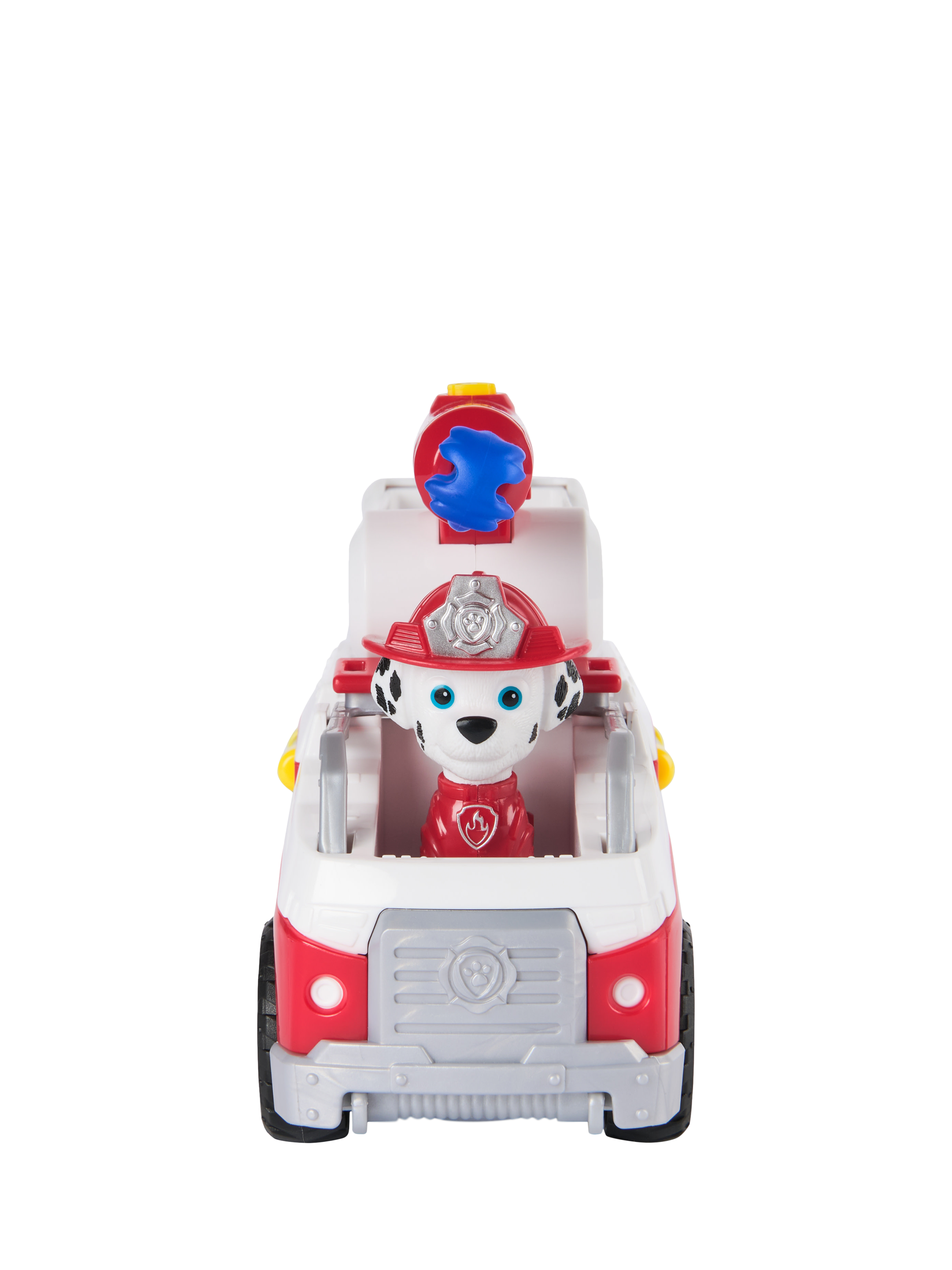 Join the PAW Patrol Fire Rescue team with Marshall and his action-packed Rescue Fire Engine! This PAW Patrol toy truck measures eight inches (20cm) long and five inches (13cm) tall, ready to race to the rescue in any pretend play adventure. Marshall, standing over two inches (5cm) tall in his fire rescue gear, is all set to save the day.