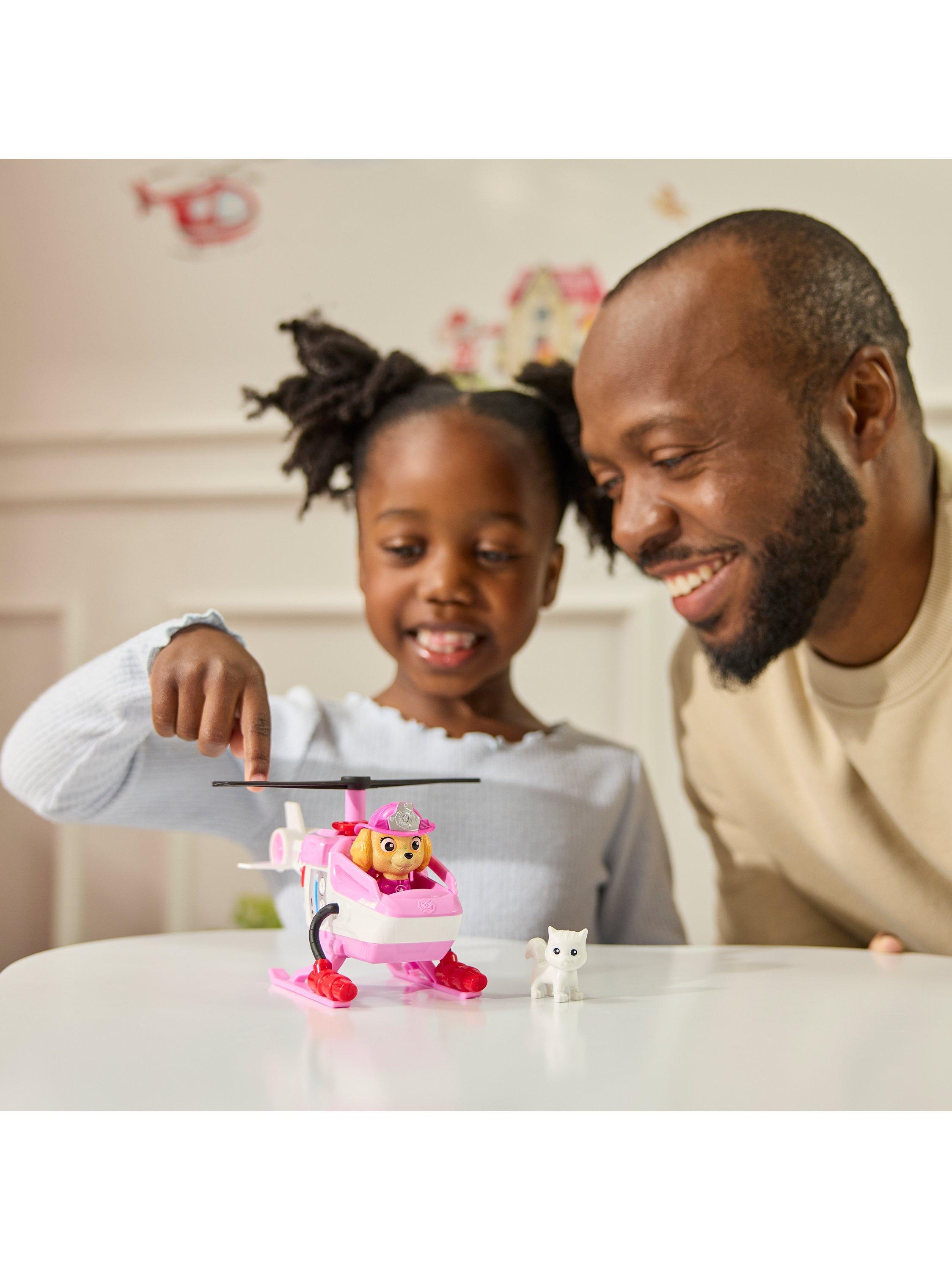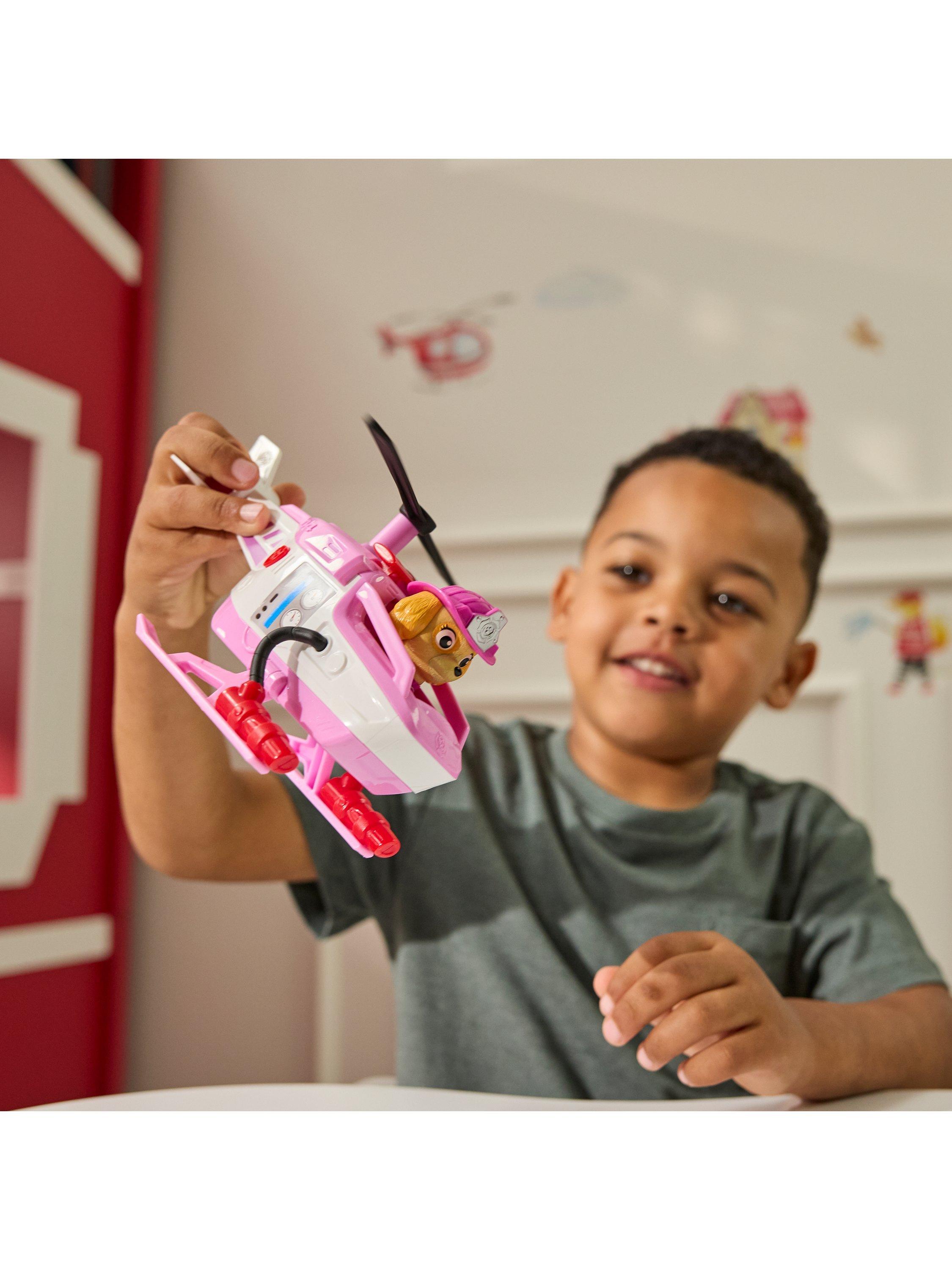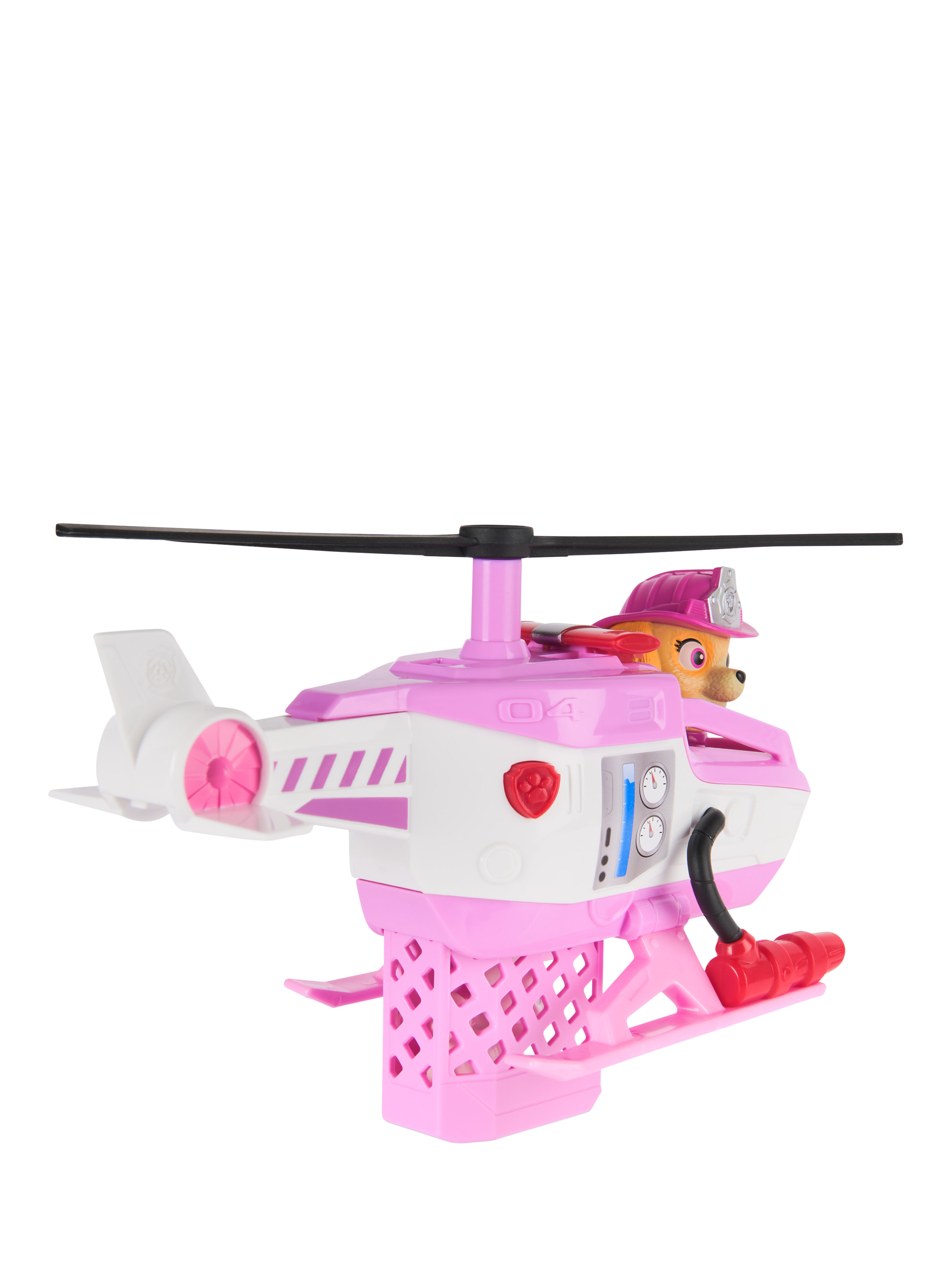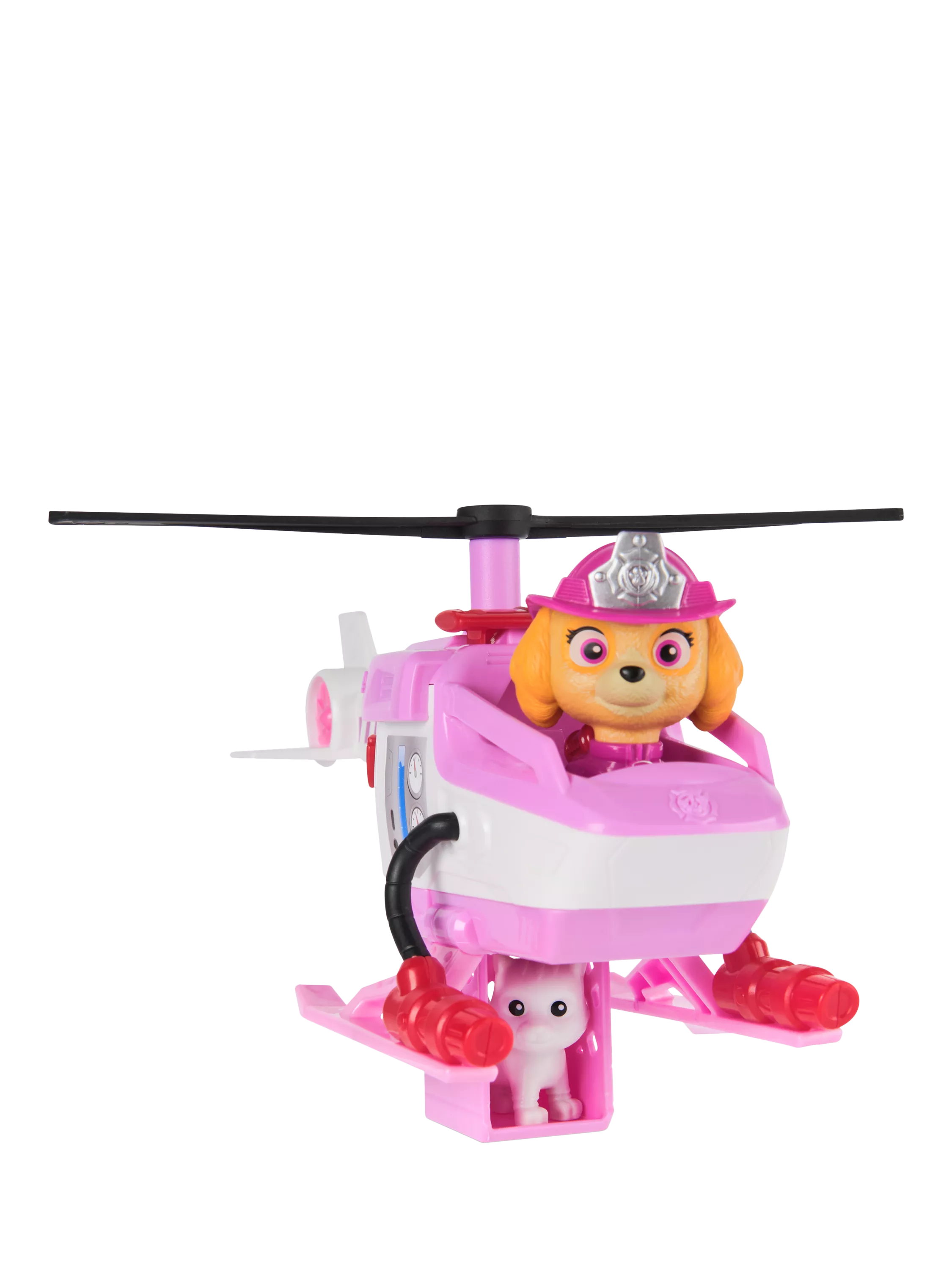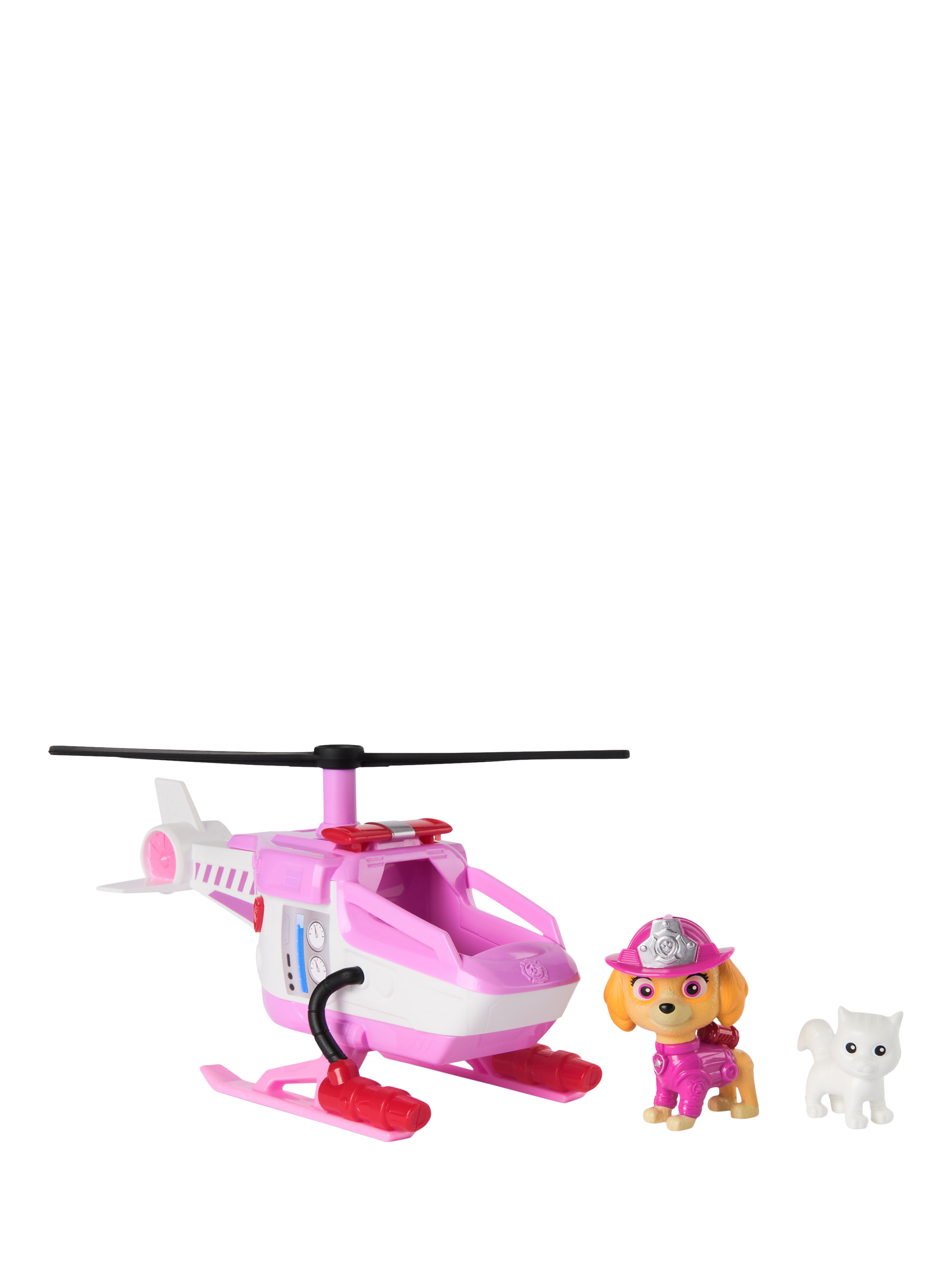 The chopper features a built-in rescue basket and a rotatable propeller, adding excitement to every rescue operation. With a push of a button, activate the rescue basket and save the day alongside Skye's kitty friend. Genuine PAW Patrol styling ensures it looks just like it does in the show.