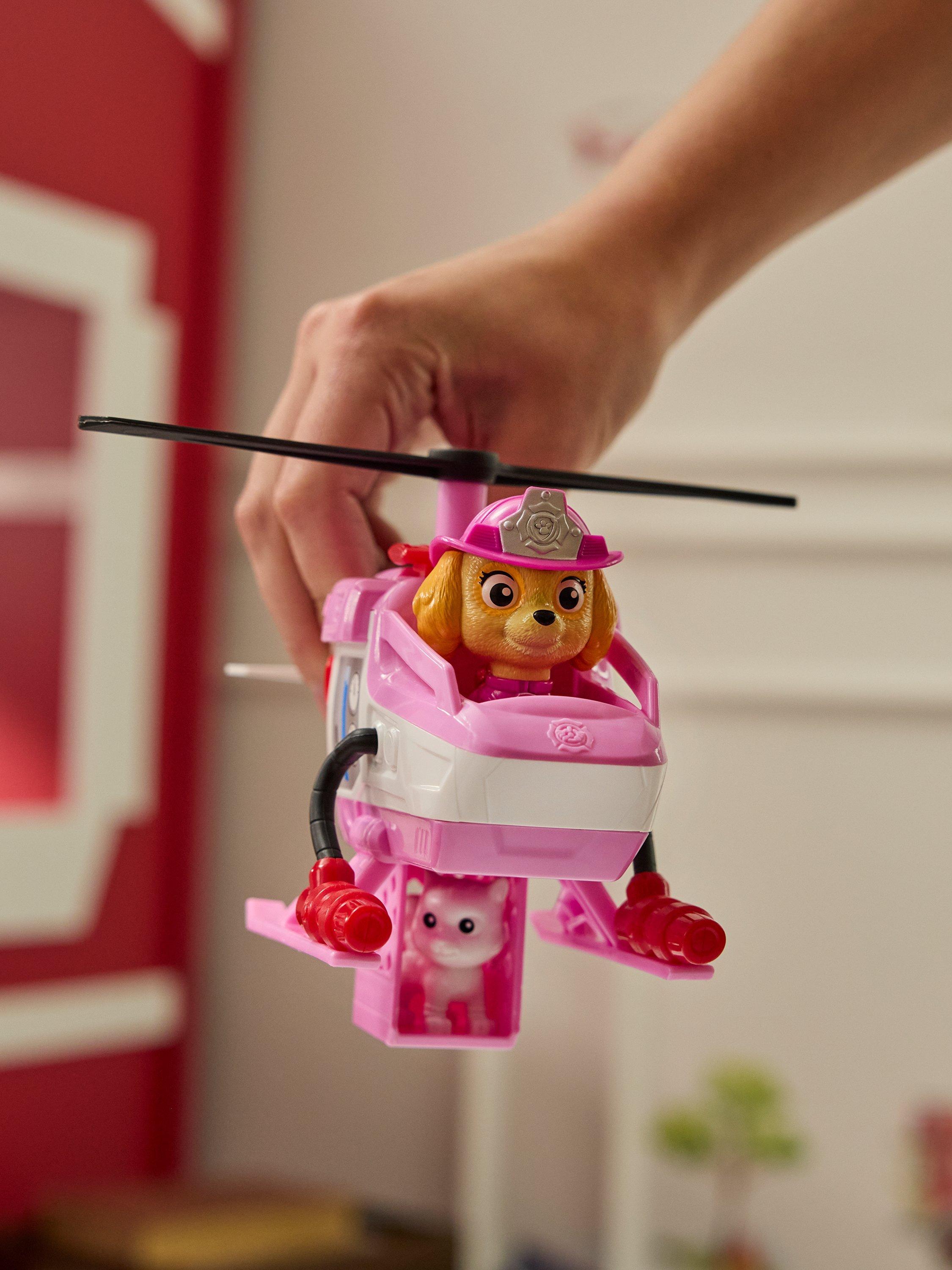 Join Skye in the thrilling world of PAW Patrol with the Skye Rescue Fire Chopper. This helicopter toy is over 7 inches (18cm) long and 4 inches (10cm) tall, making it the PAWfect size for dynamic pretend play. Skye stands over two inches (5cm) tall in her fire rescue gear, ready to embark on heroic missions.