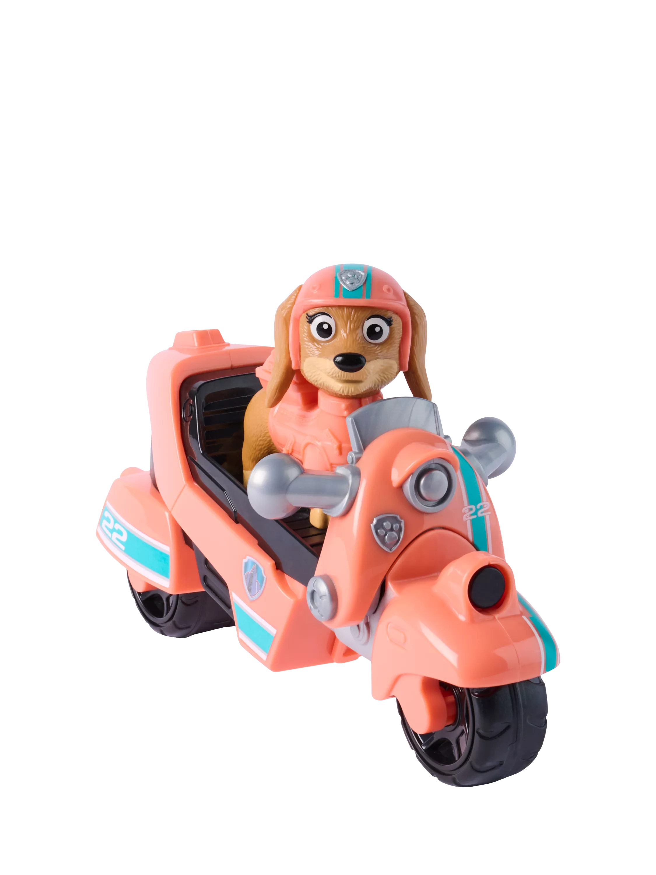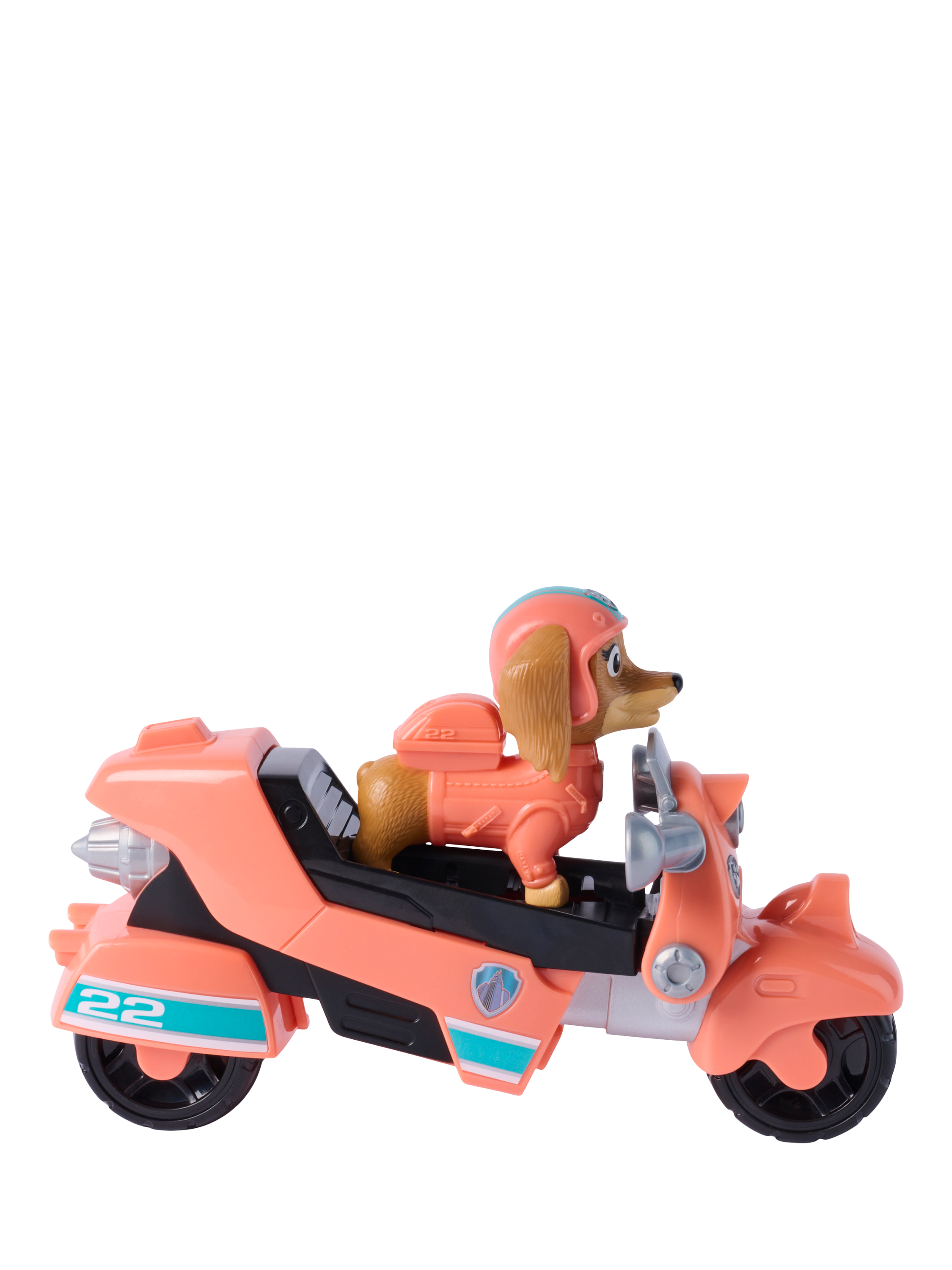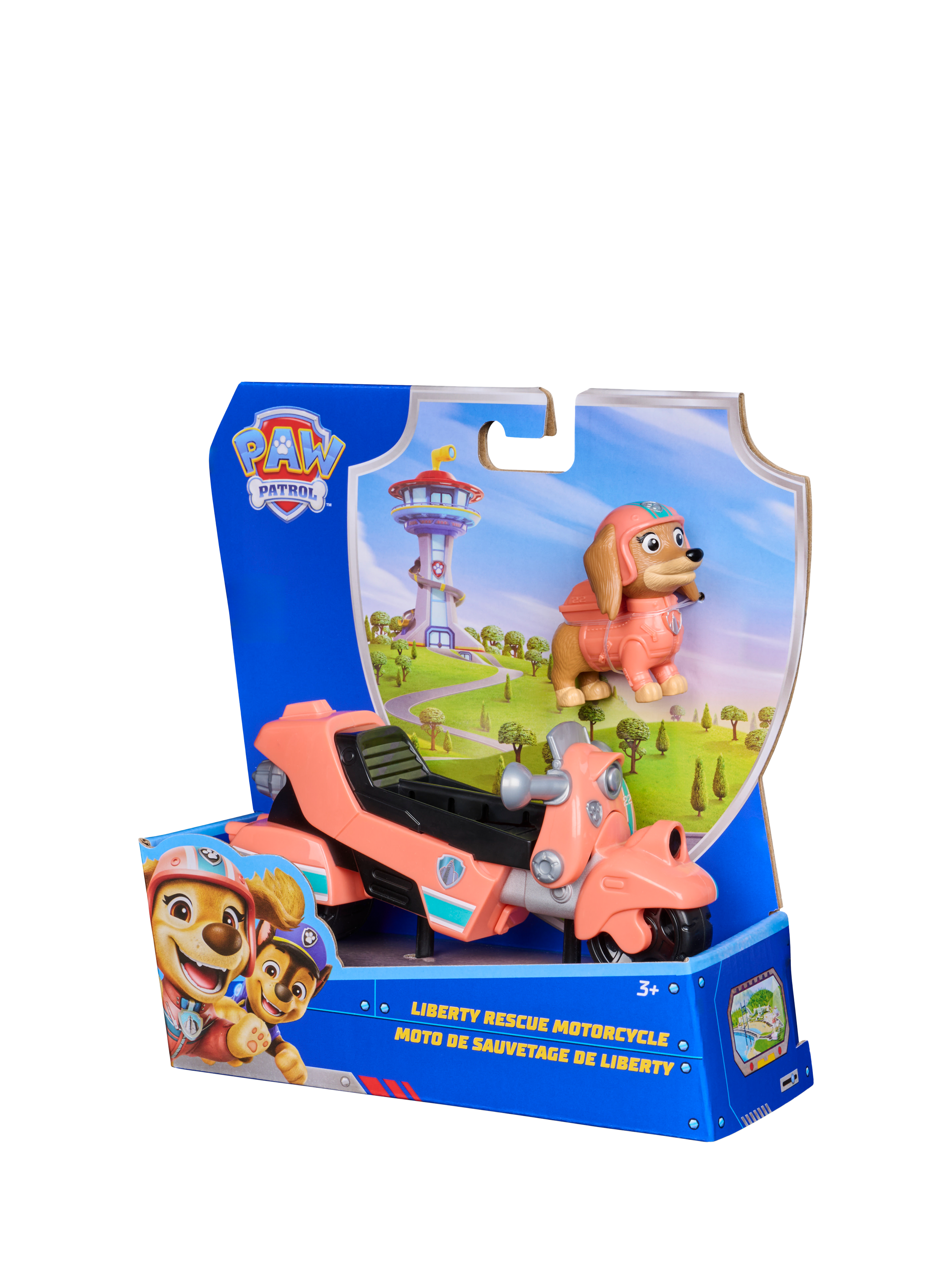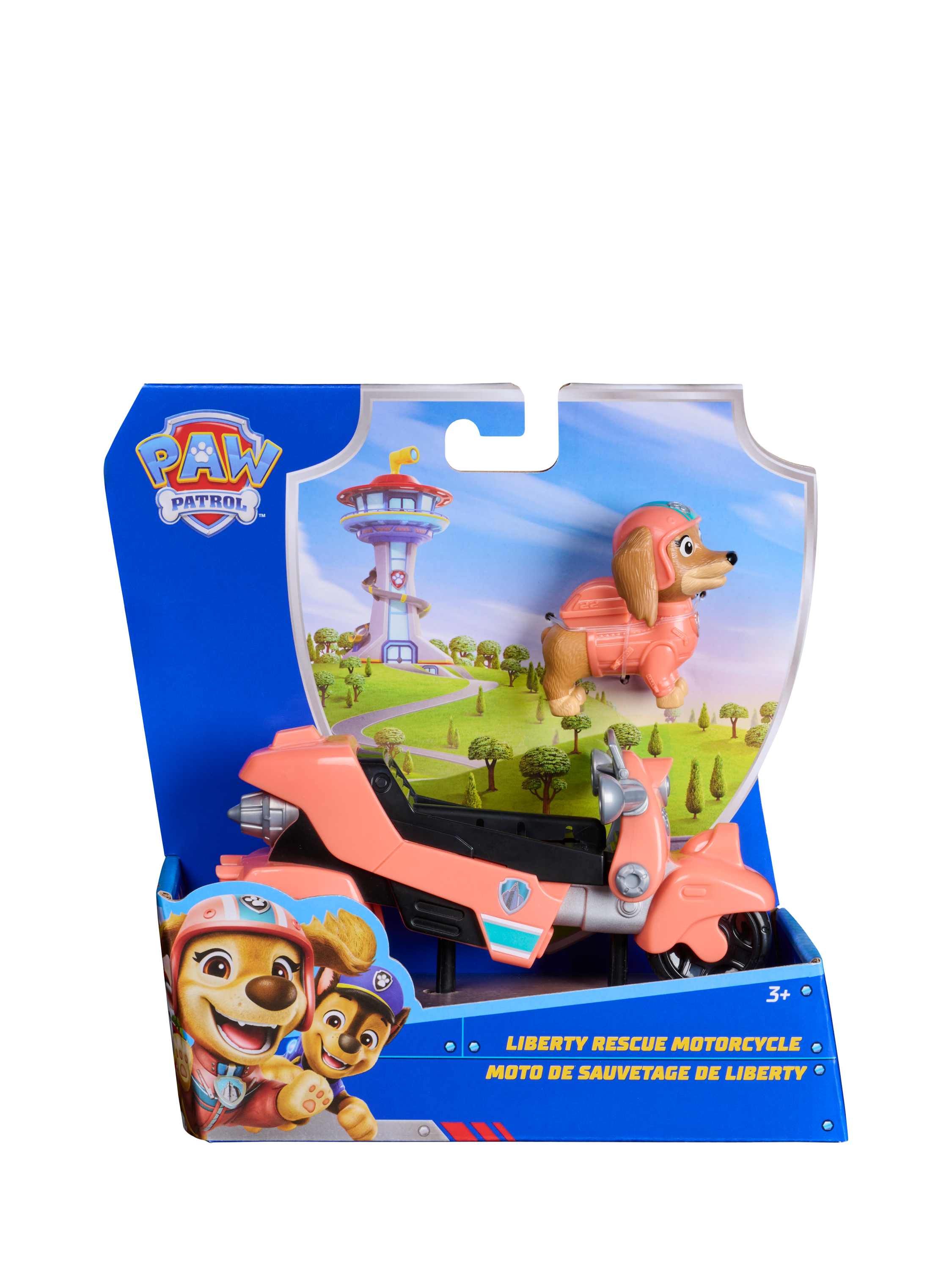 The PAW Patrol are on a roll in their rescue vehicles! Join Liberty on action-packed missions with her Rescue Motorcycle! When trouble strikes, clip Liberty's feet in the driver's seat and roll to the rescue with real working wheels.