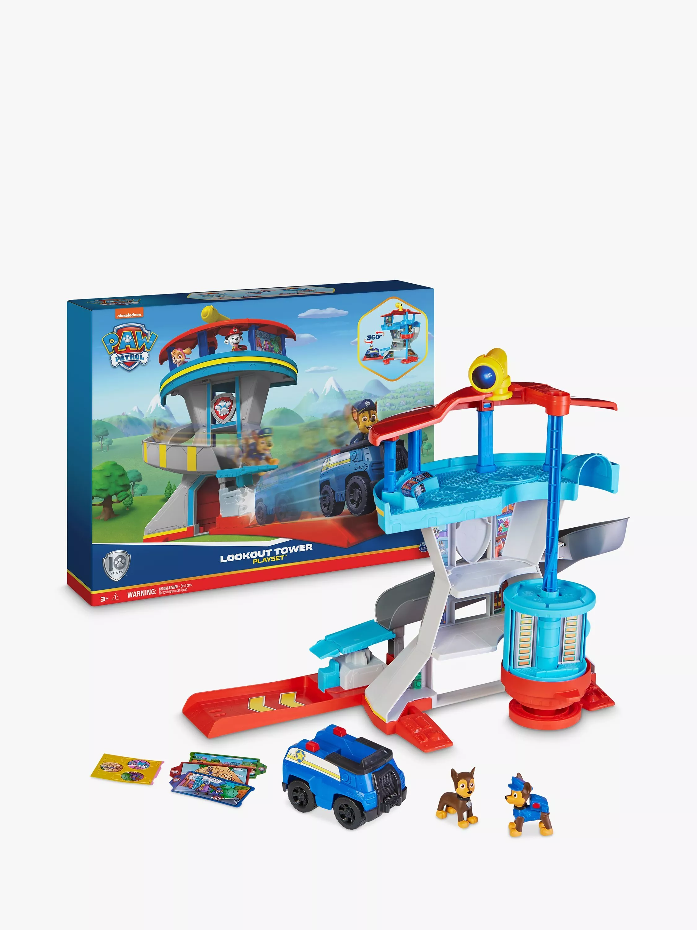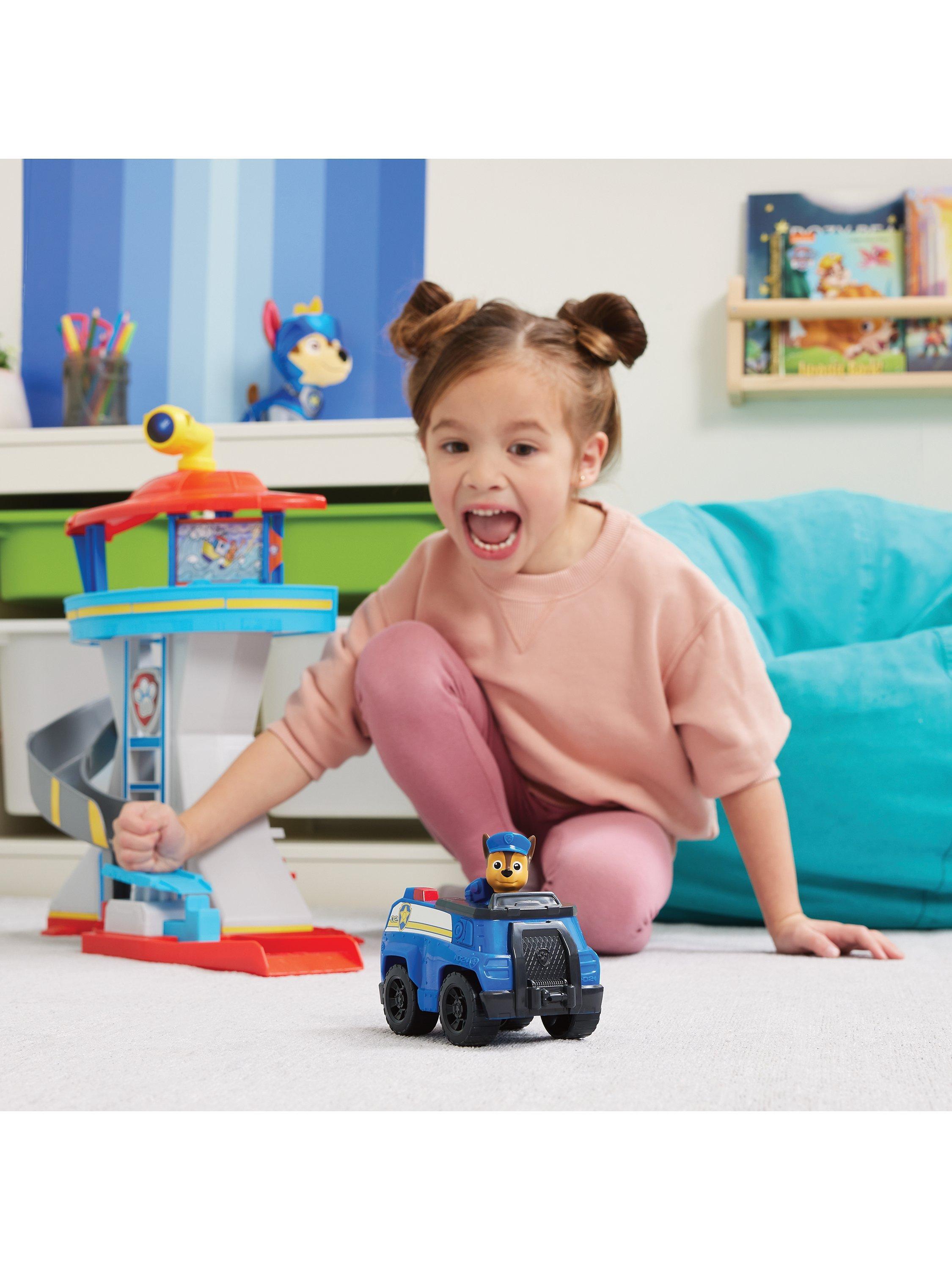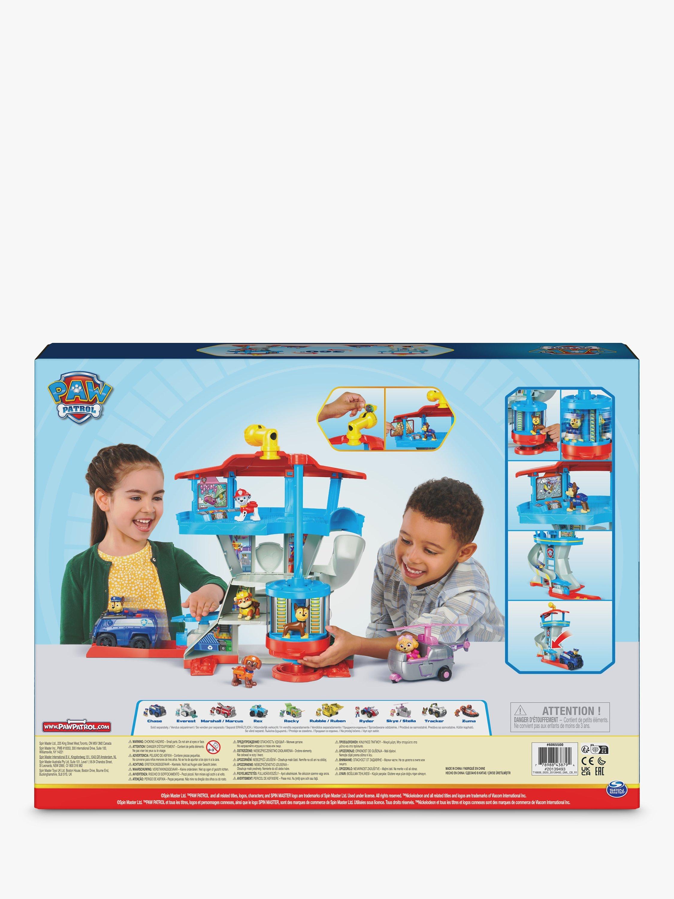 After selecting your mission card pick from one of 3 double-sided periscope cards, to view through the tower periscope so you know where to go. When it’s time for a super-charged rescue, slide Chase down the tower slide to hop directly into Chase’s police cruiser, before slamming down on the vehicle launcher to burst into action. For even more ways to play, collect the rest of the PAWsome pups, like Marshall, Skye and Rubble, along with their core vehicles, for more exciting playtime adventures.