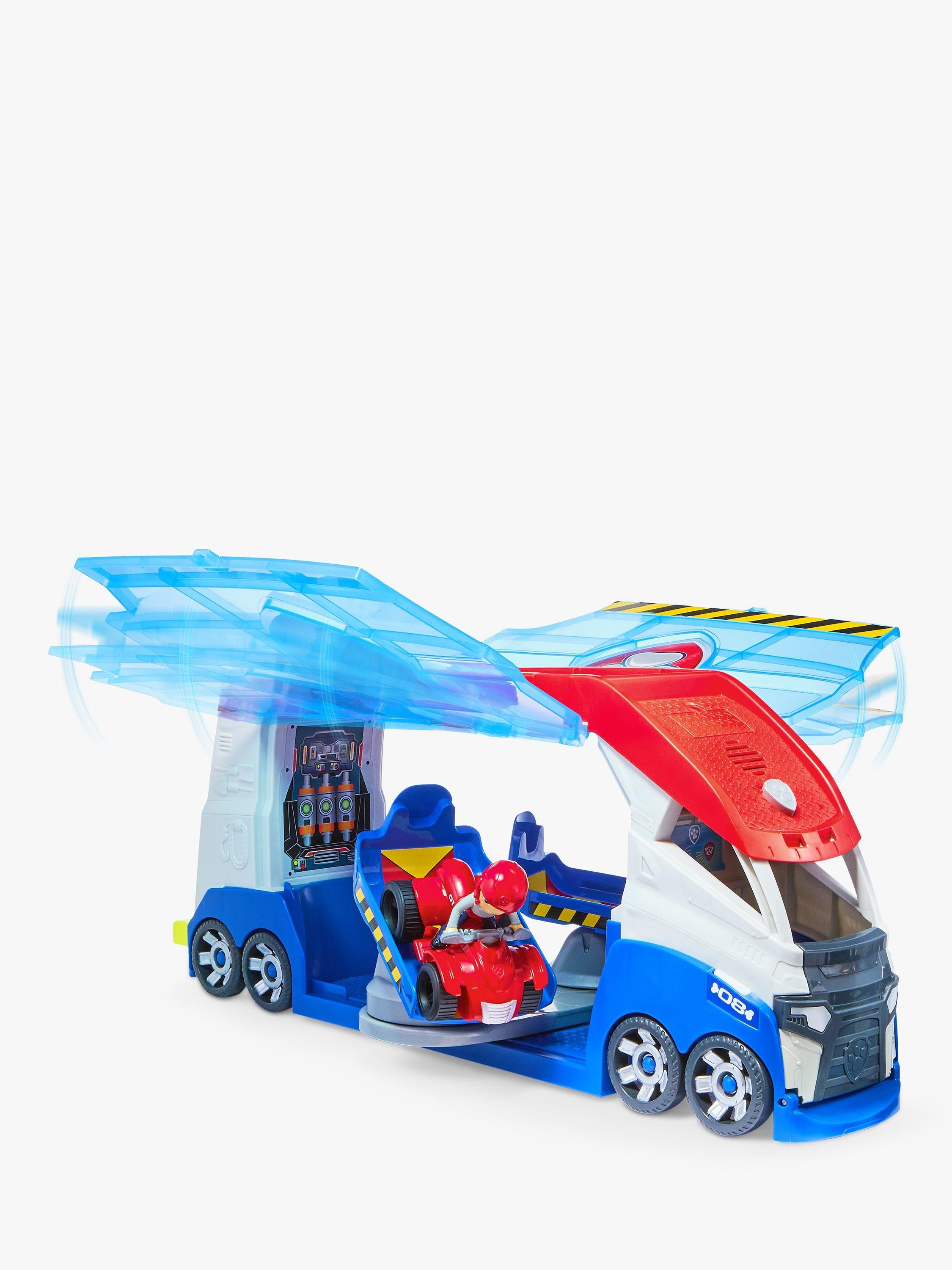 Load Ryder into the launcher, then pull the lever at the back to raise the doors and activate the launch feature. Press the button on the roof to activate the sound effects from the show, adding to the excitement of the adventure. Get your PAW Patrol fan this ultimate rescue vehicle for hours of imaginative play. PAW Patrol toys for boys & girls are great gifts for kids who are fans of the show, to foster imaginative pretend play and enhance fine motor skills. Relive cherished moments from PAW Patrol seasons, such as the Mighty Pups and PAW Patrol the Movie or create entirely new adventures with individual PAW Patrol pups and their respective toy cars (each sold separately). Elevate the excitement with the complete Rescue Wheels team, including PAW Patrol vehicles, action figures and the all-new PAW Patrol Tower HQ for endless hours of turbo-charged adventures inspired by the series.
