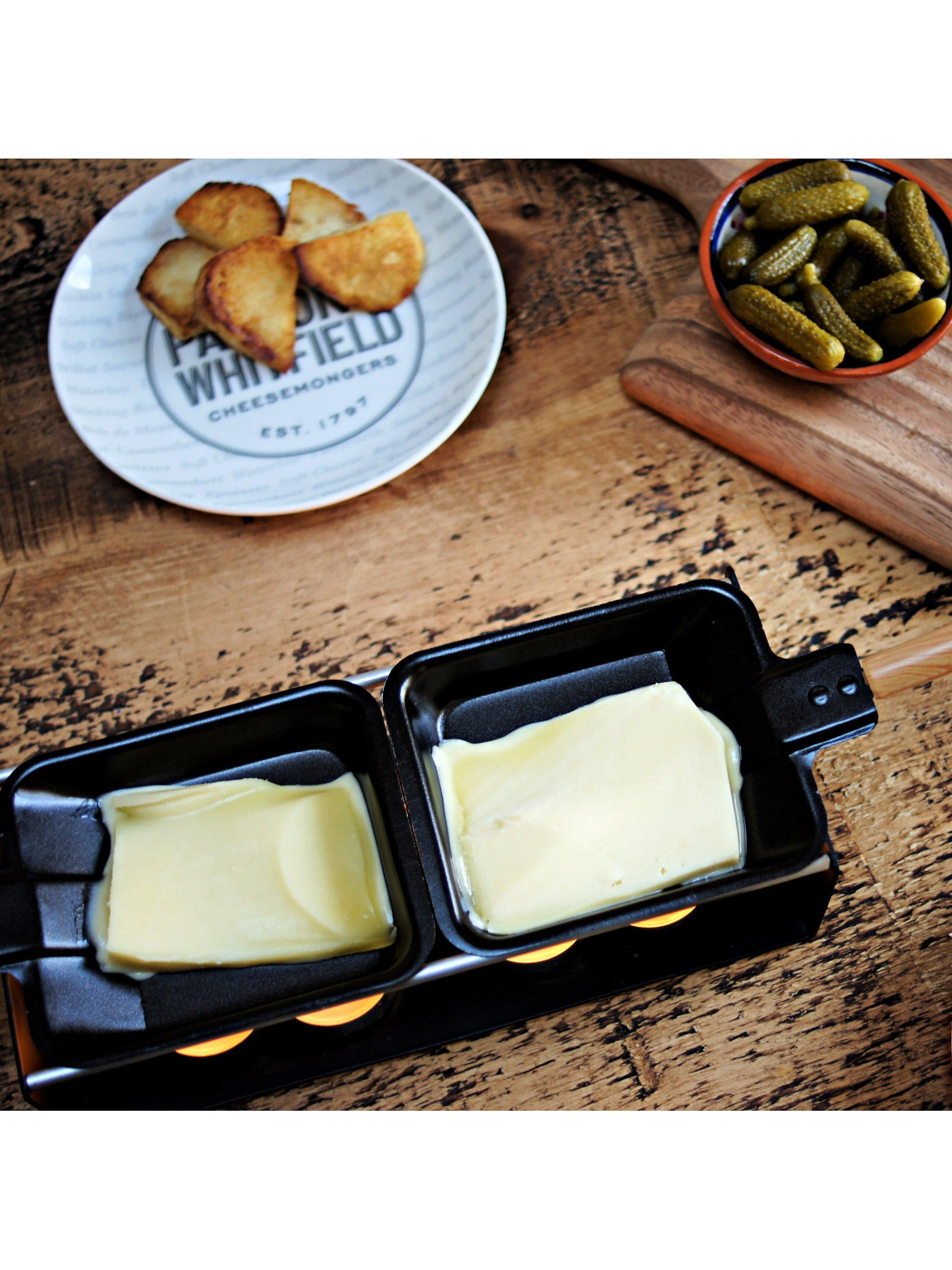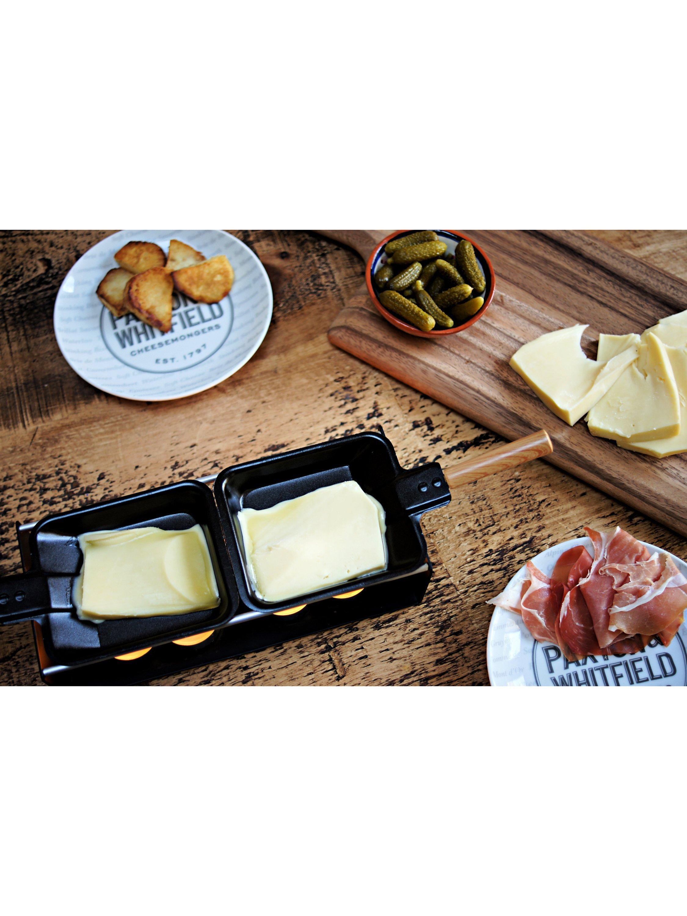 Made in Switzerland, the raclette set takes its name from the French verb 'racler', meaning to scrape. Melting and cascading cheese is scraped onto potatoes, charcuterie and vegetables adding a touch of ceremony and visual fun to a meal in traditional alpine style.