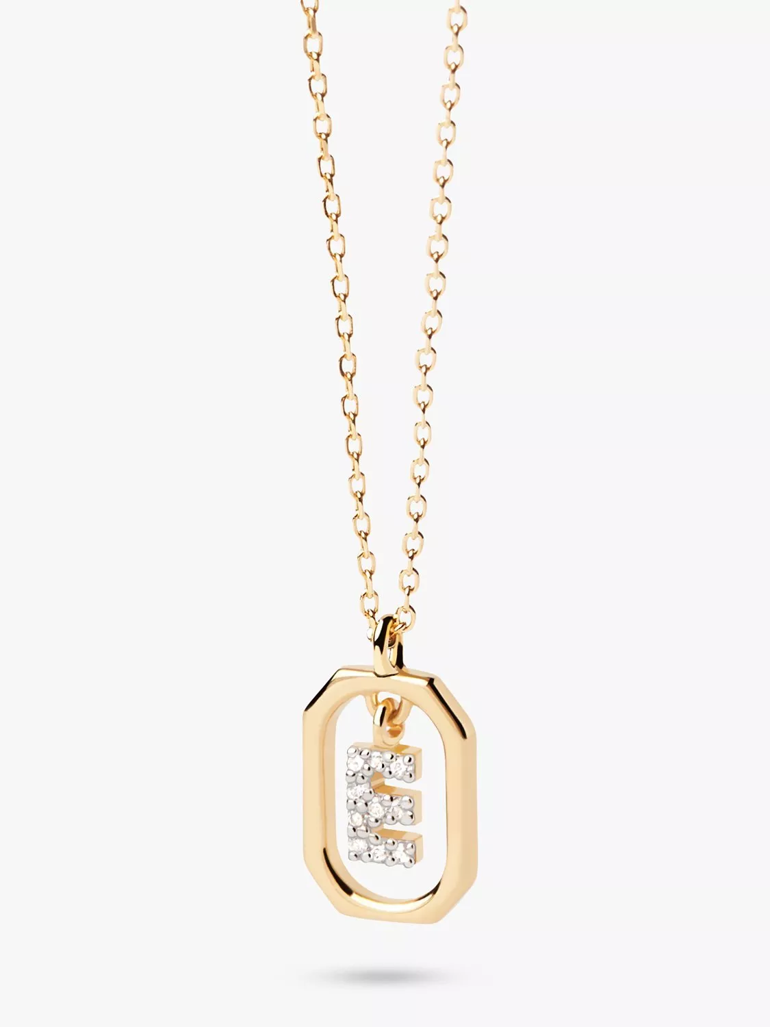 A sparkling cubic zirconia covered letter hangs in the middle of a polished octagonal shape in this pendant necklace from PDPAOLA. Perfect for everyday wear, you can personalise your style by simply choosing the letter that means the most to you.