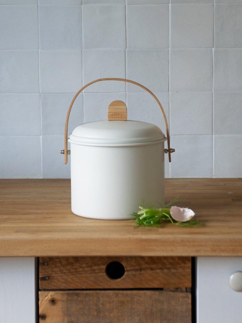 PebblyIndoor Steel Compost Bin, 3.5L, Cream