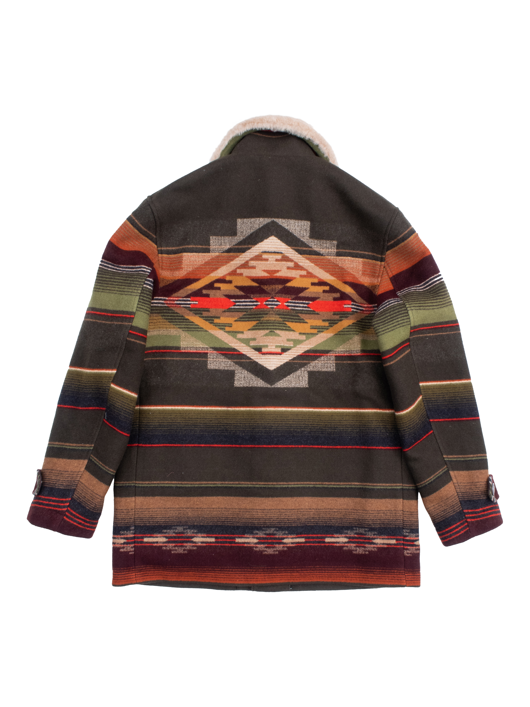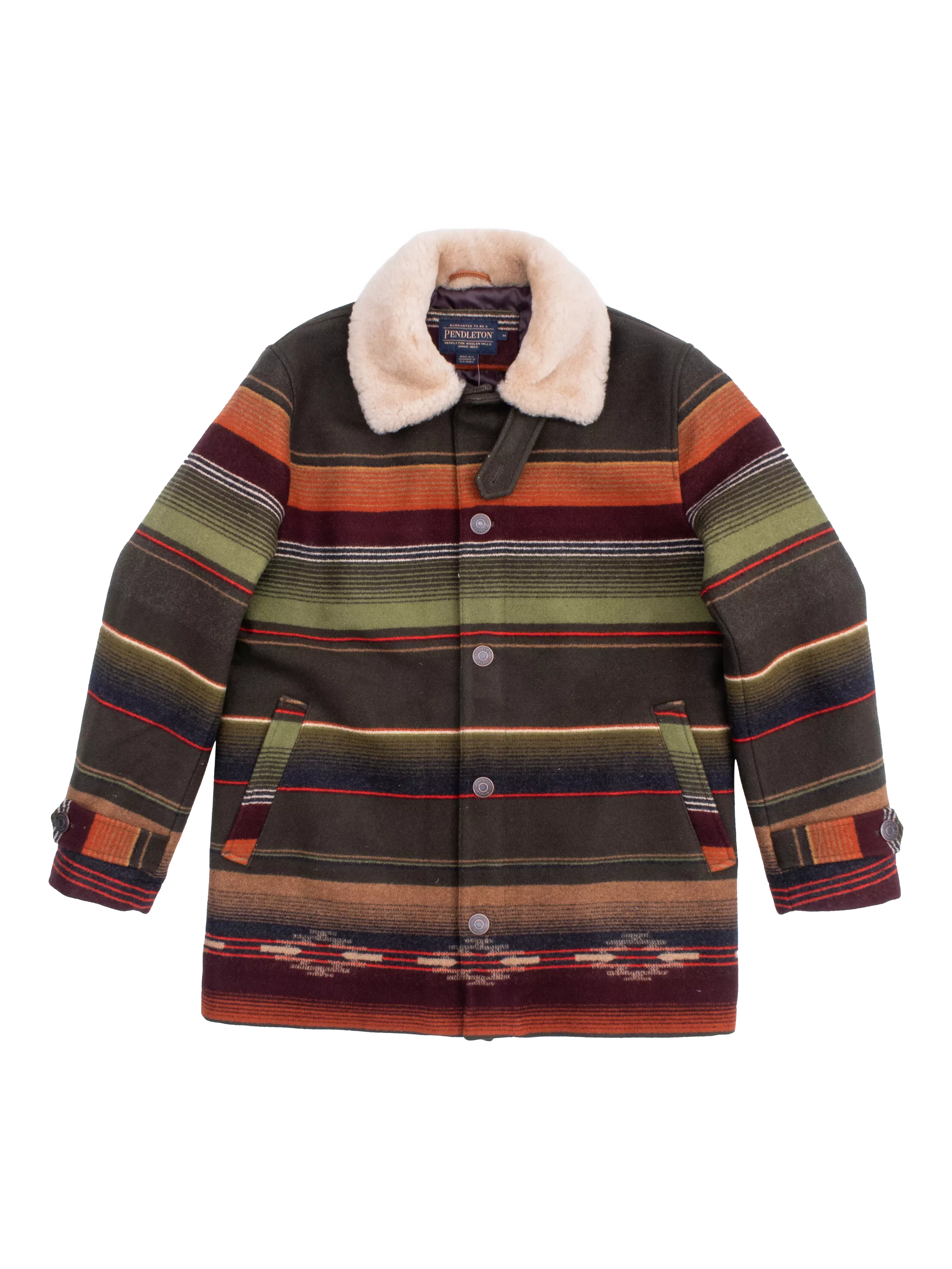 A statement-worthy coat cut from a blend of hard-wearing wool and cotton. Other notable features include a genuine shearling collar, adjustable cuffs and branded buttons.